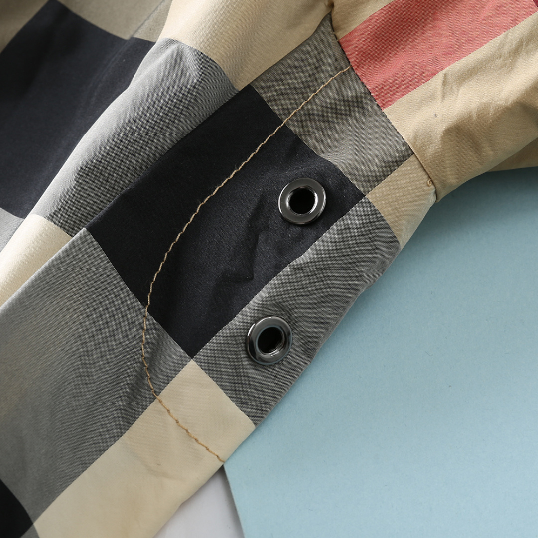 这款衣服是AAAAA 1:1 质量 (非常棒). 使用了和原版一模一样的材料. 商标部分也保持了和巴宝莉/Burberry一样. 图片拍摄是实物衣服拍摄, 您所收到的实物保证和我们图片一模一样.