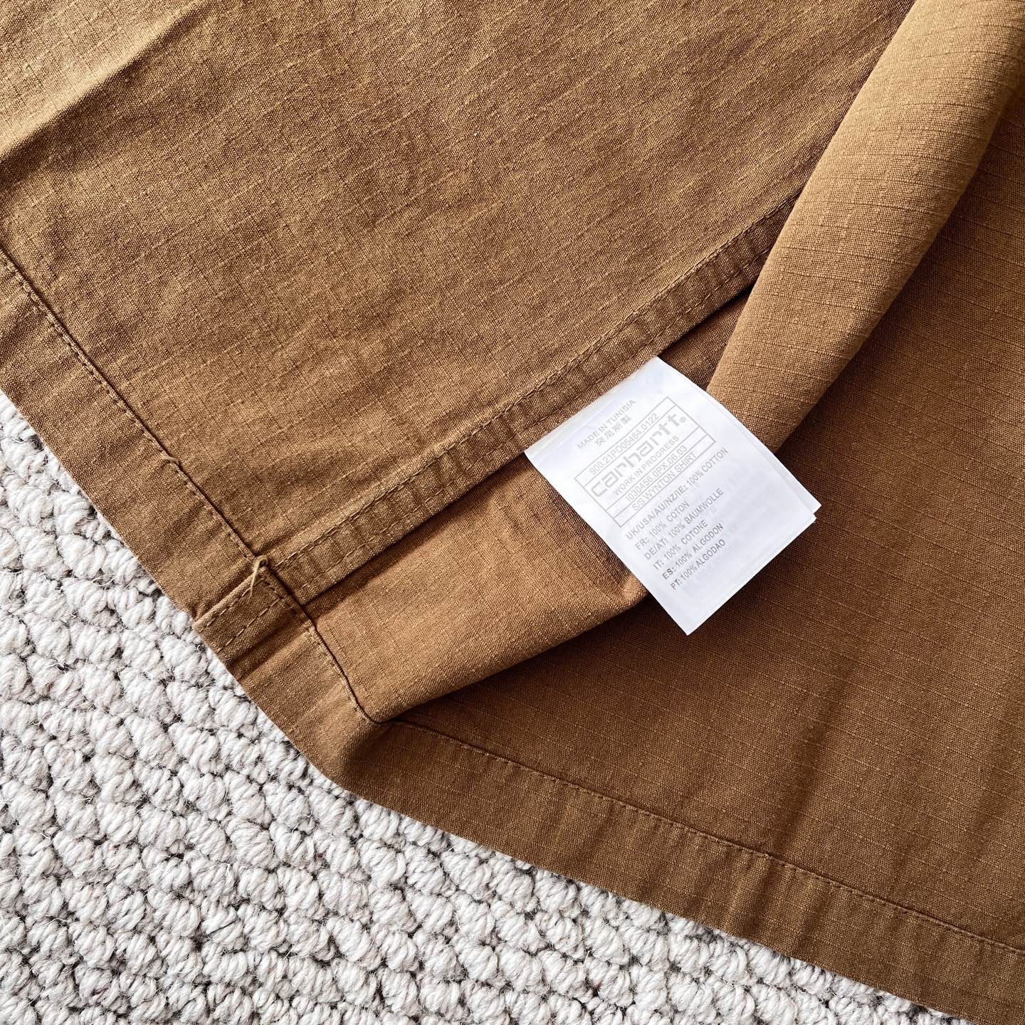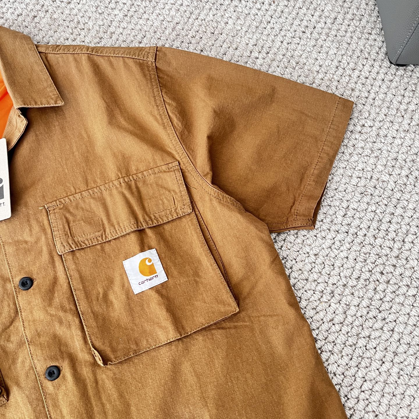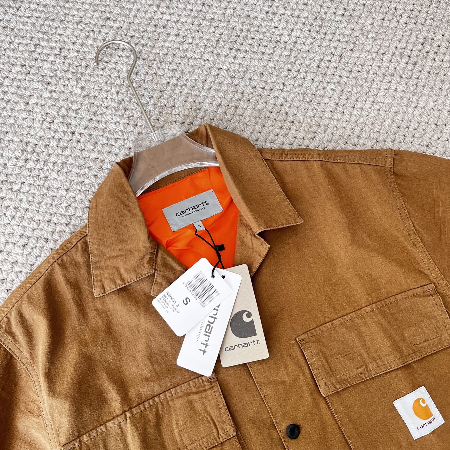 这款衣服是AAAAA 1:1 质量 (非常棒). 使用了和原版一模一样的材料. 商标部分也保持了和Carhartt一样. 图片拍摄是实物衣服拍摄, 您所收到的实物保证和我们图片一模一样.