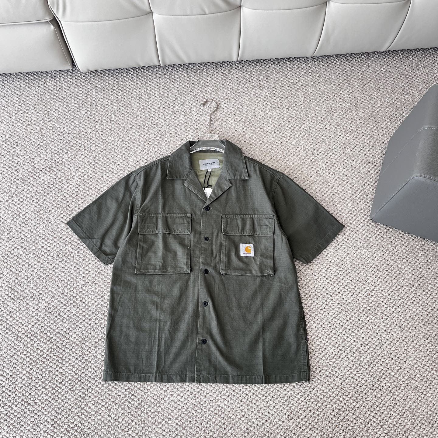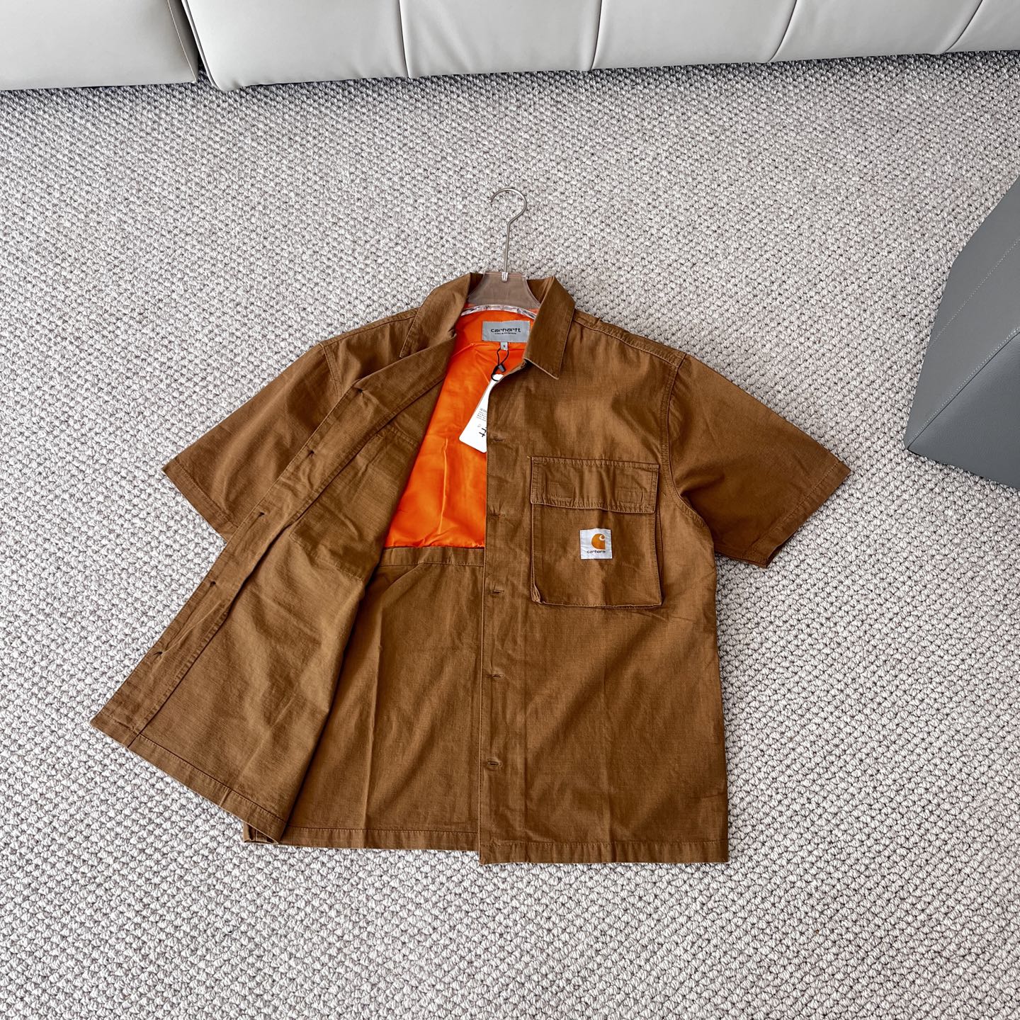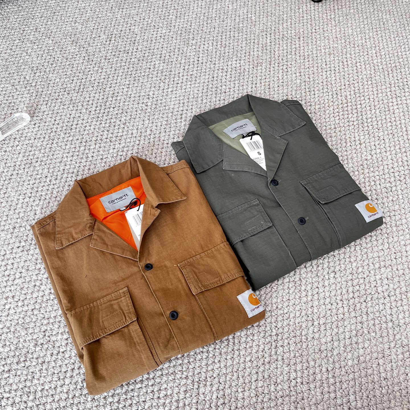 这款衣服是AAAAA 1:1 质量 (非常棒). 使用了和原版一模一样的材料. 商标部分也保持了和Carhartt一样. 图片拍摄是实物衣服拍摄, 您所收到的实物保证和我们图片一模一样.
