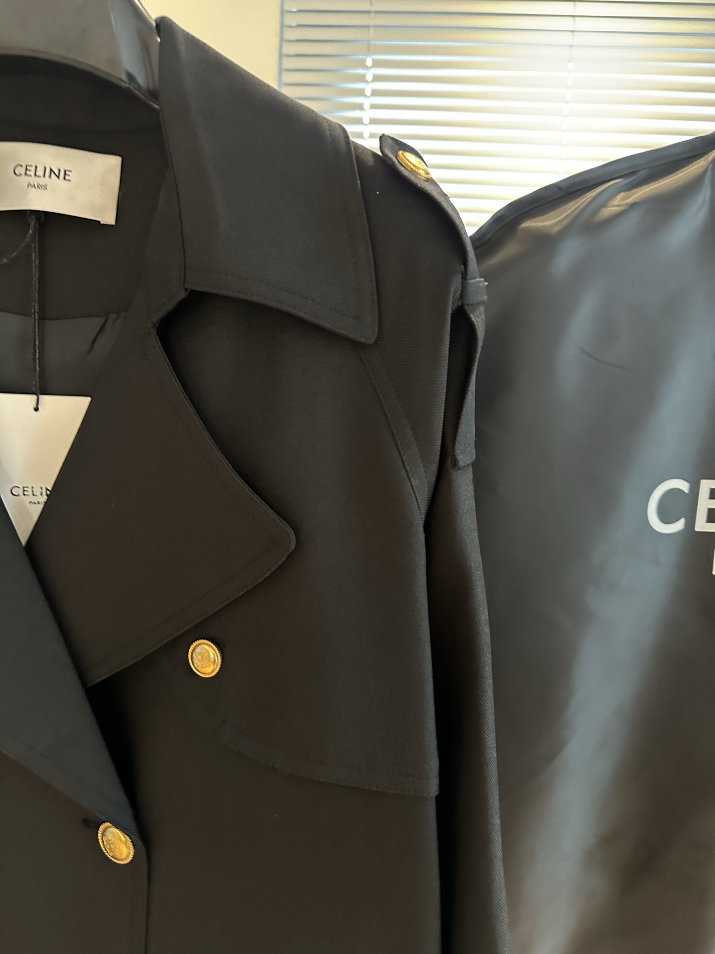 这款衣服是AAAAA 1:1 质量 (非常棒). 使用了和原版一模一样的材料. 商标部分也保持了和思琳/Celine一样. 图片拍摄是实物衣服拍摄, 您所收到的实物保证和我们图片一模一样.