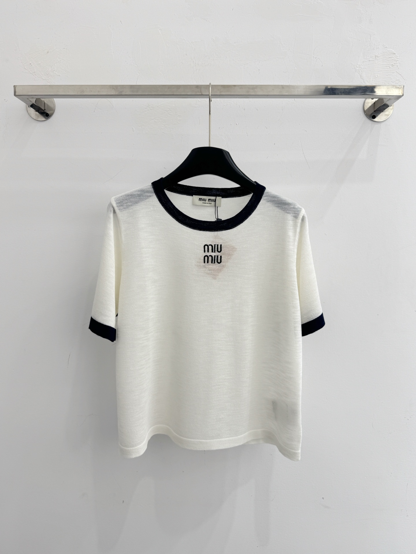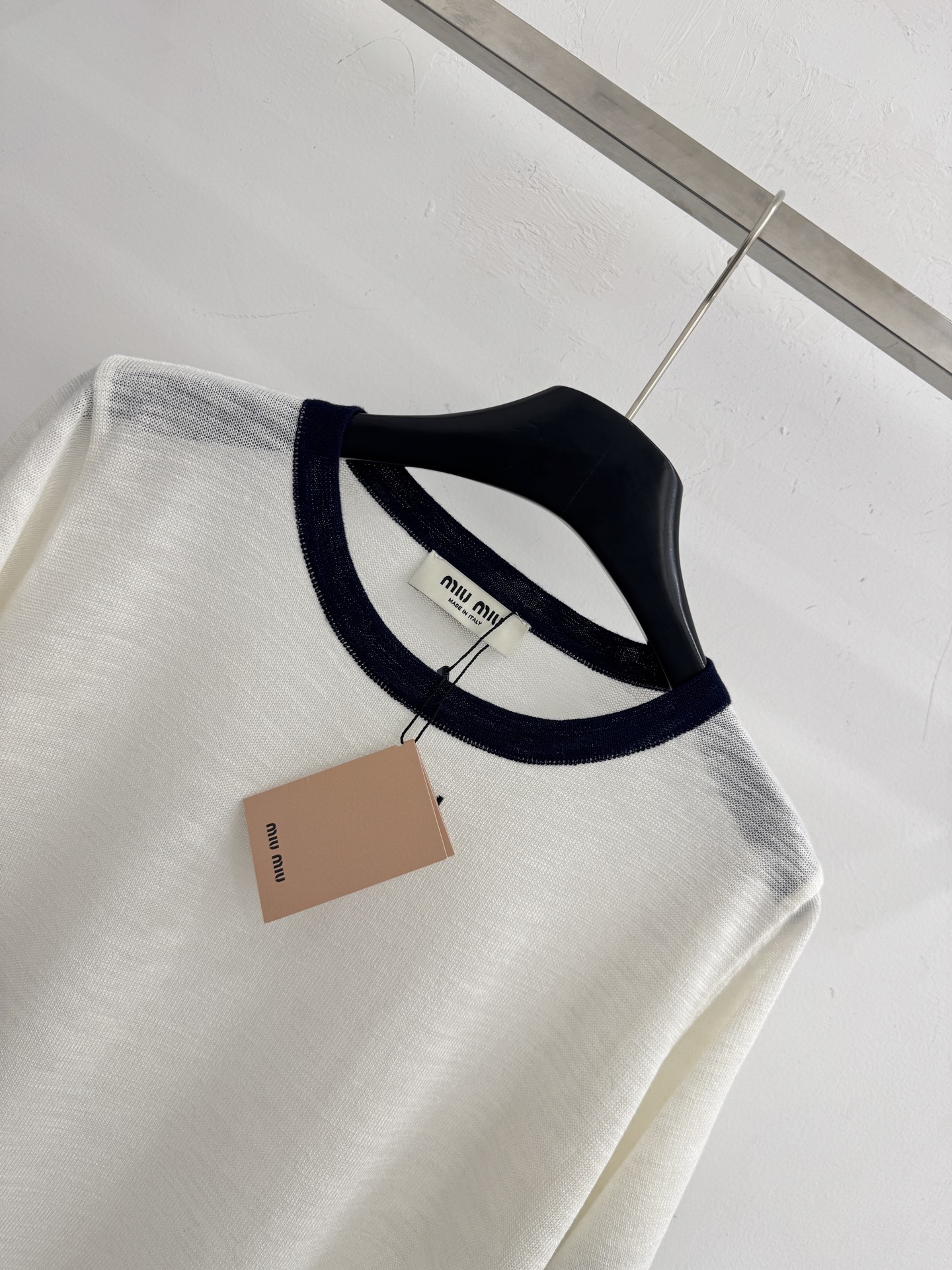这款衣服是AAAAA 1:1 质量 (非常棒). 使用了和原版一模一样的材料. 商标部分也保持了和缪缪/Miu Miu一样. 图片拍摄是实物衣服拍摄, 您所收到的实物保证和我们图片一模一样.