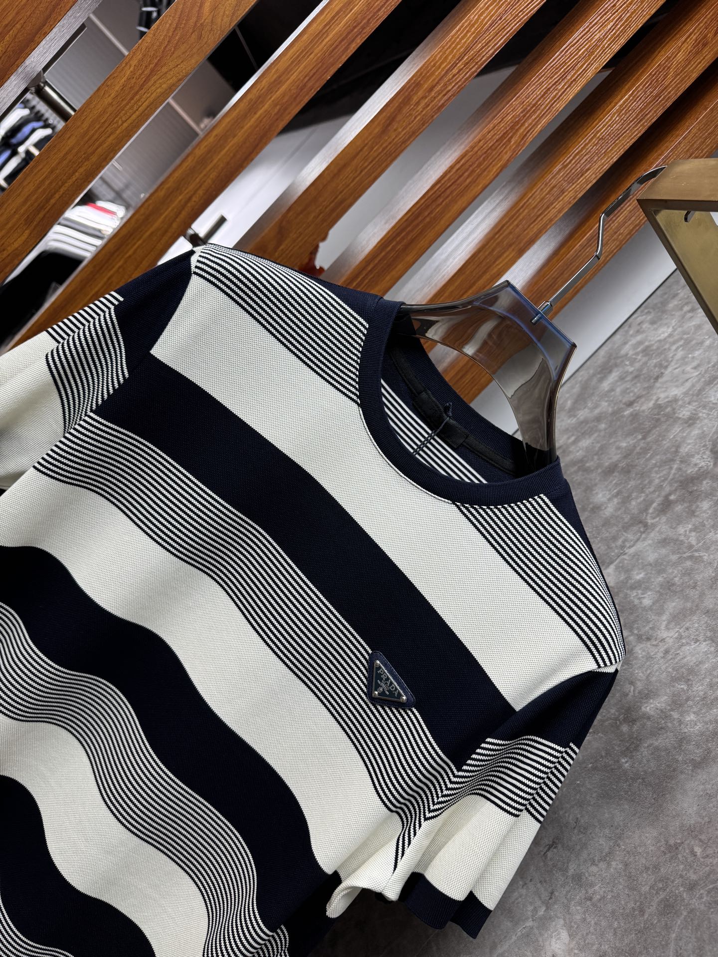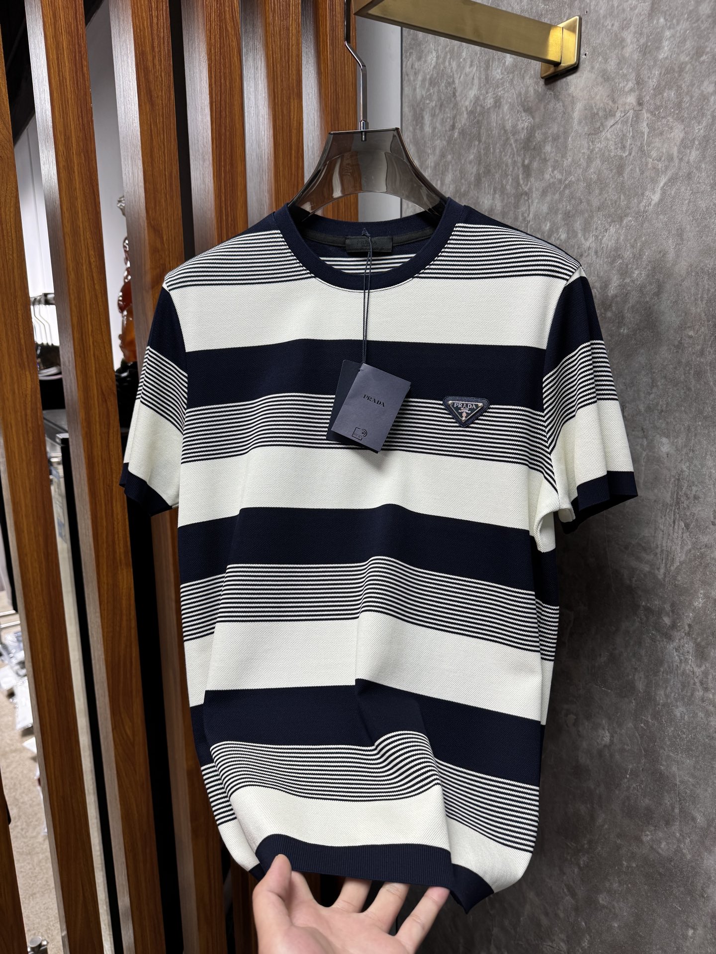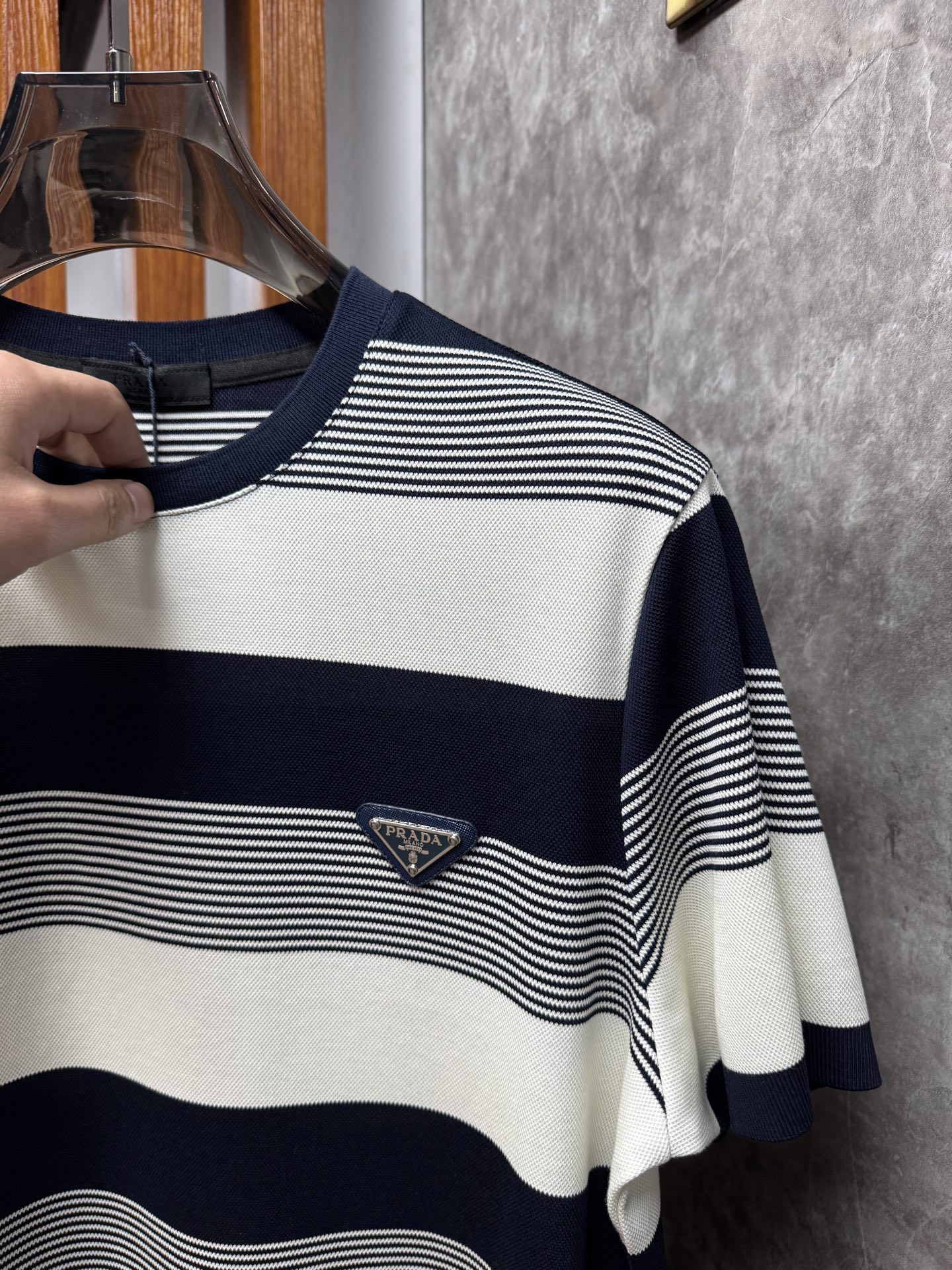 这款衣服是AAAAA 1:1 质量 (非常棒). 使用了和原版一模一样的材料. 商标部分也保持了和普拉达/Prada一样. 图片拍摄是实物衣服拍摄, 您所收到的实物保证和我们图片一模一样.