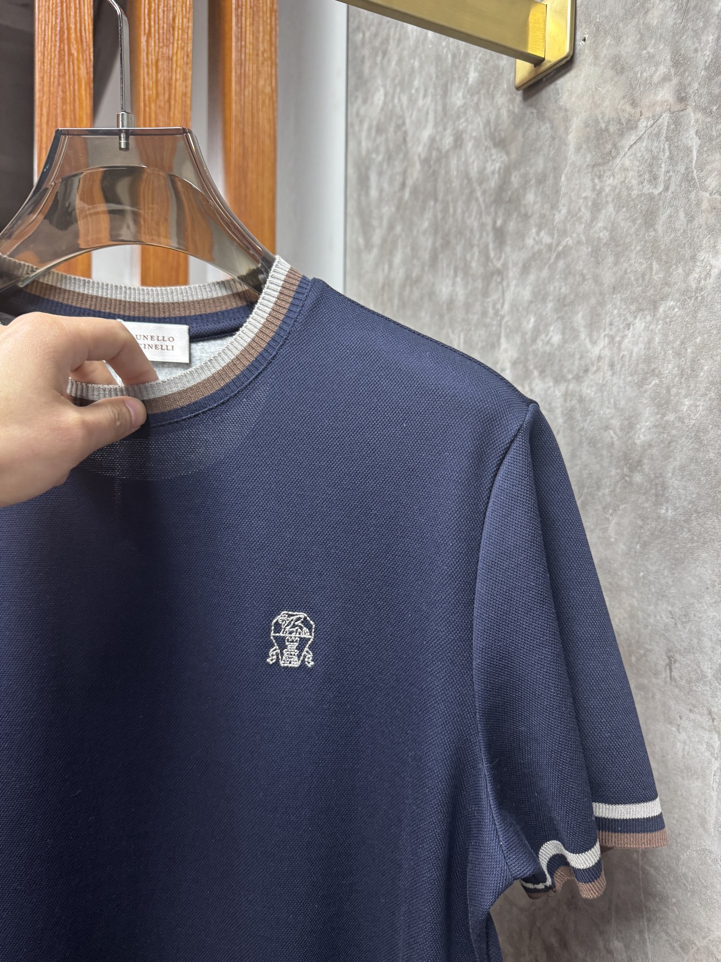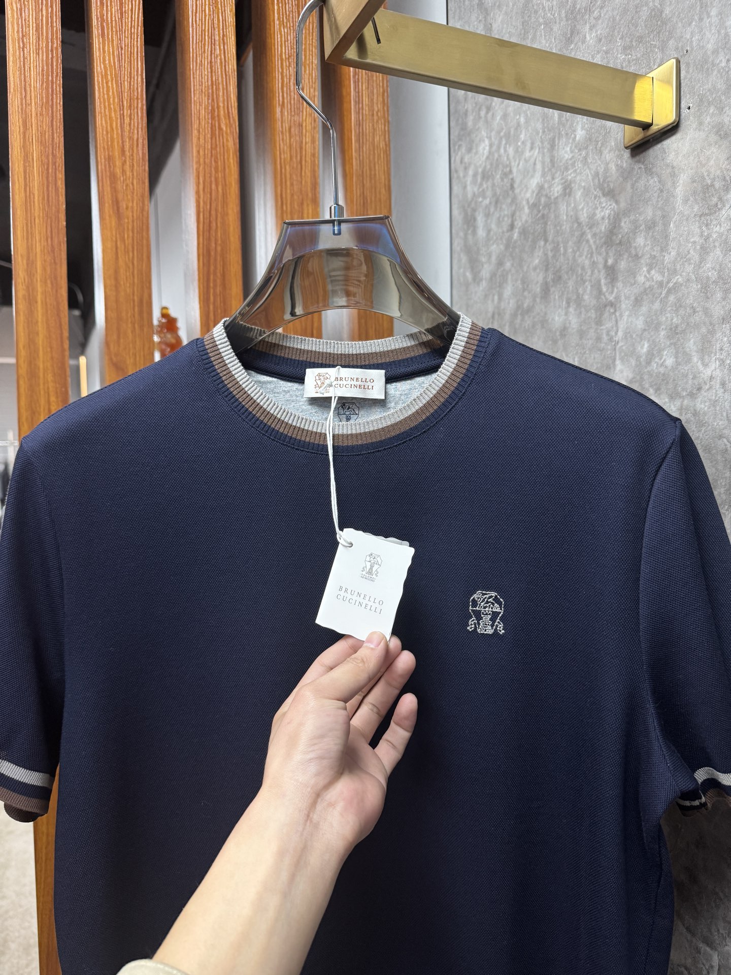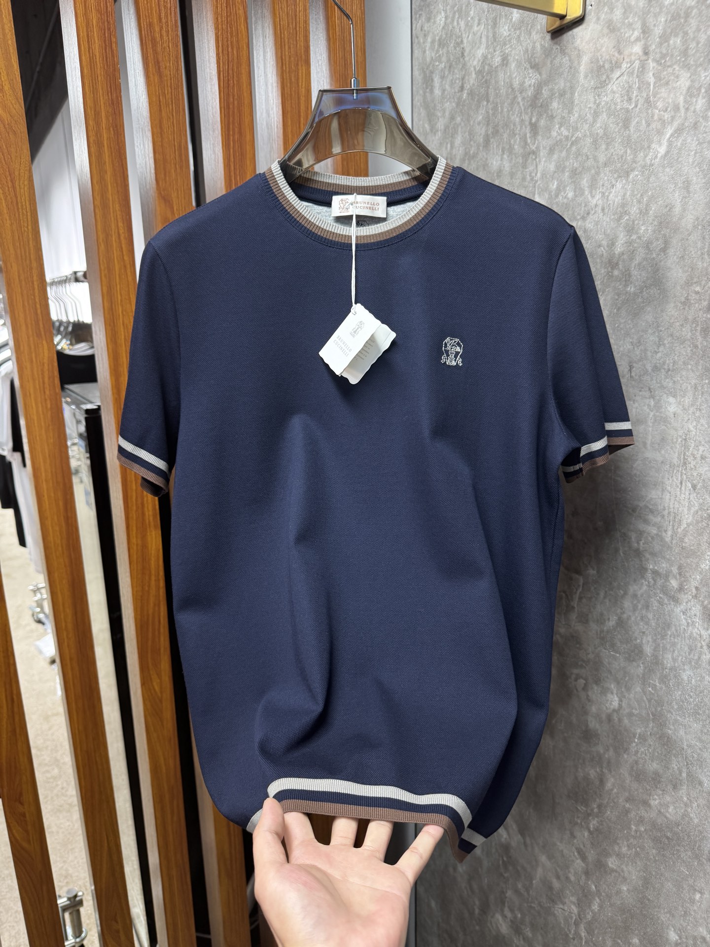 这款衣服是AAAAA 1:1 质量 (非常棒). 使用了和原版一模一样的材料. 商标部分也保持了和Brunello Cucinelli一样. 图片拍摄是实物衣服拍摄, 您所收到的实物保证和我们图片一模一样.