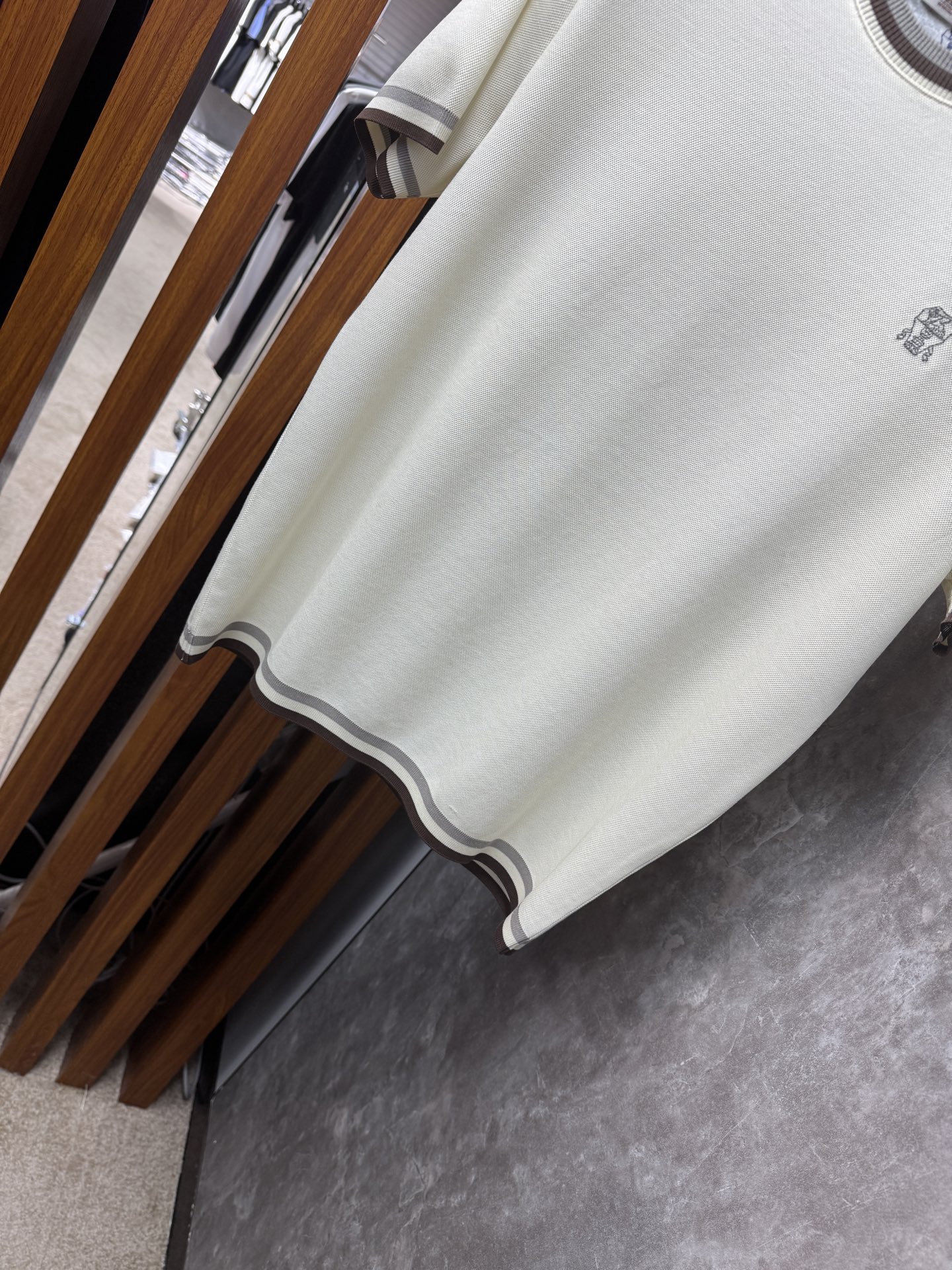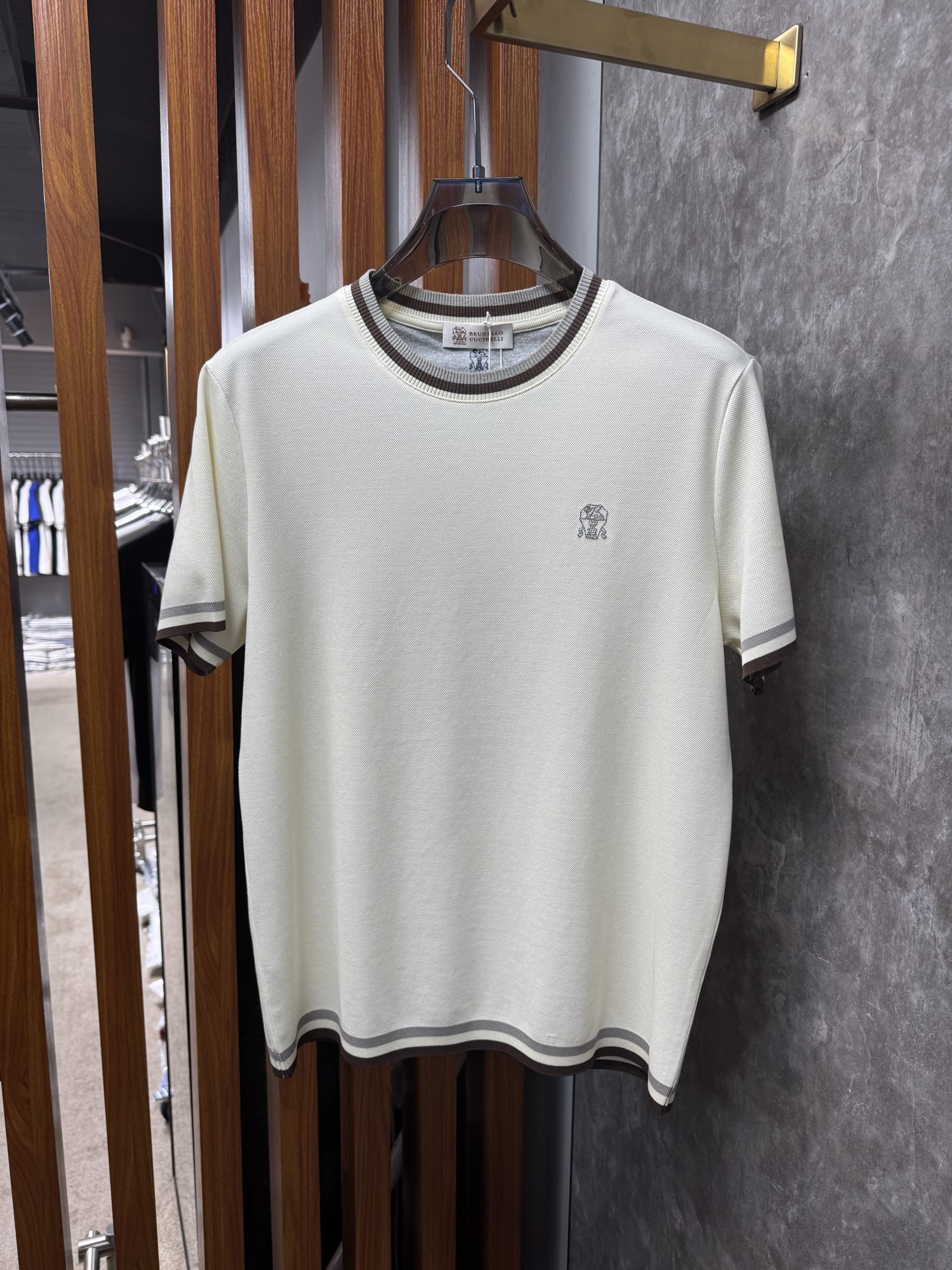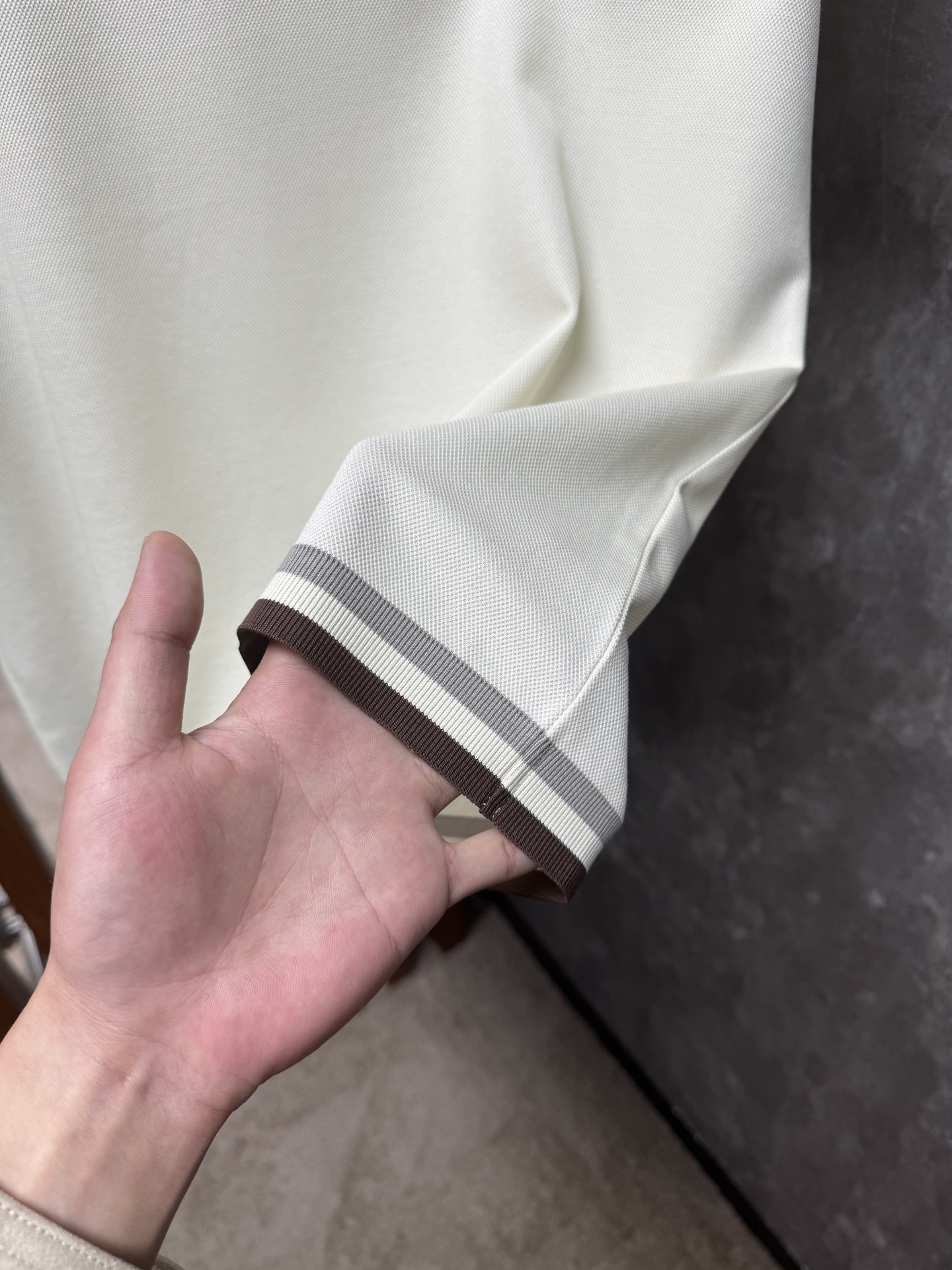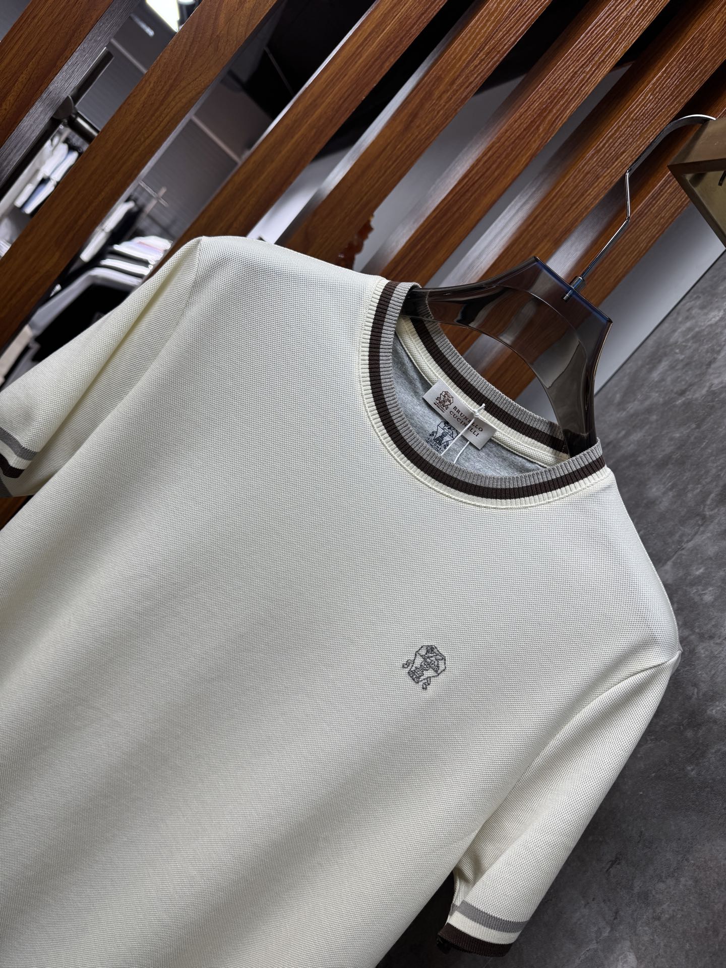 这款衣服是AAAAA 1:1 质量 (非常棒). 使用了和原版一模一样的材料. 商标部分也保持了和Brunello Cucinelli一样. 图片拍摄是实物衣服拍摄, 您所收到的实物保证和我们图片一模一样.