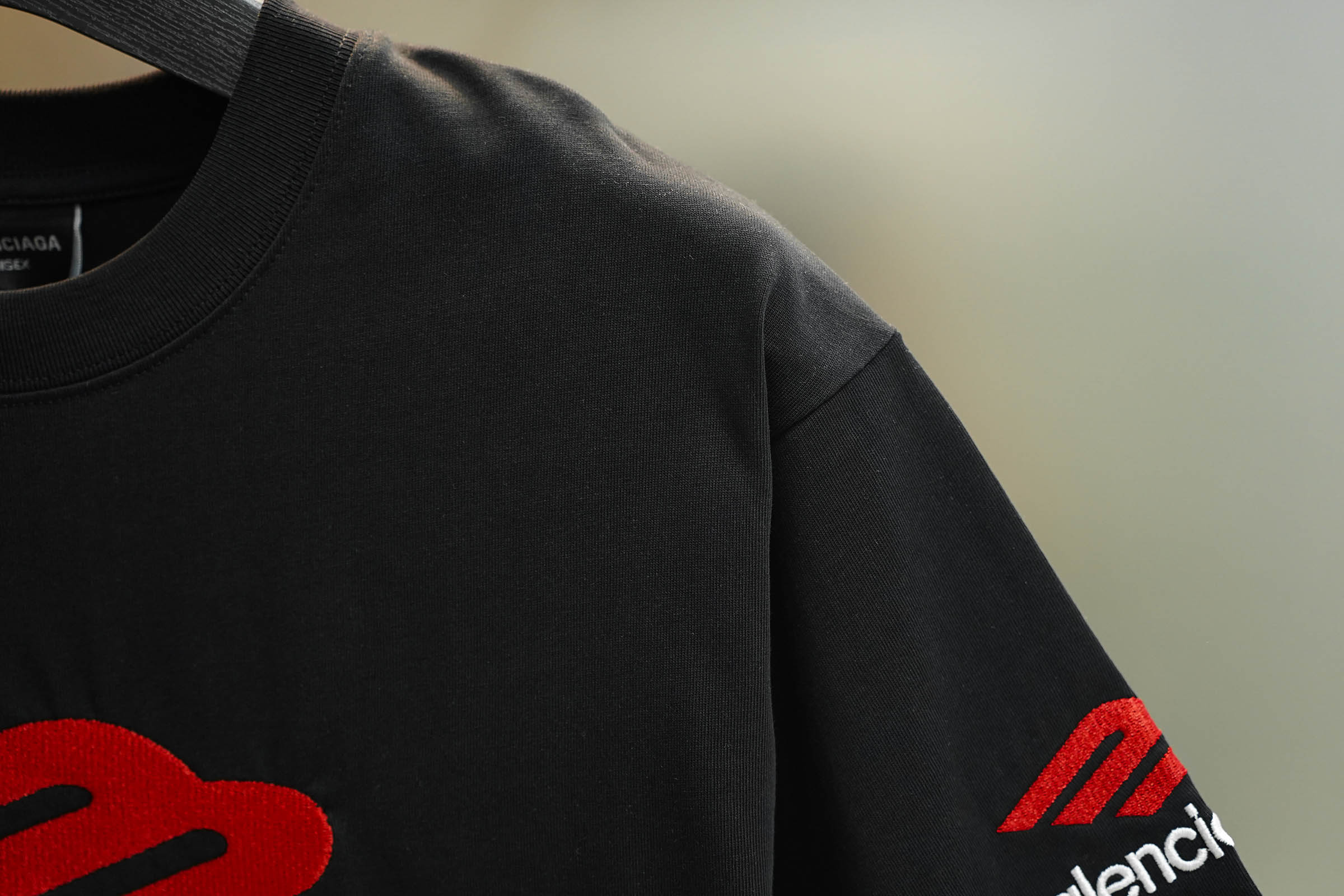 这款衣服是AAAAA 1:1 质量 (非常棒). 使用了和原版一模一样的材料. 商标部分也保持了和巴黎世家/Balenciaga一样. 图片拍摄是实物衣服拍摄, 您所收到的实物保证和我们图片一模一样.