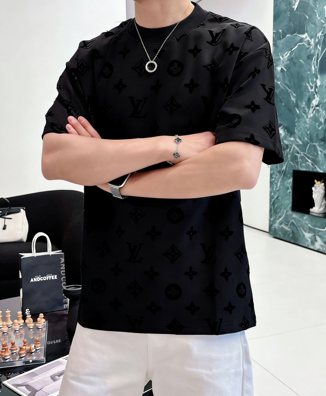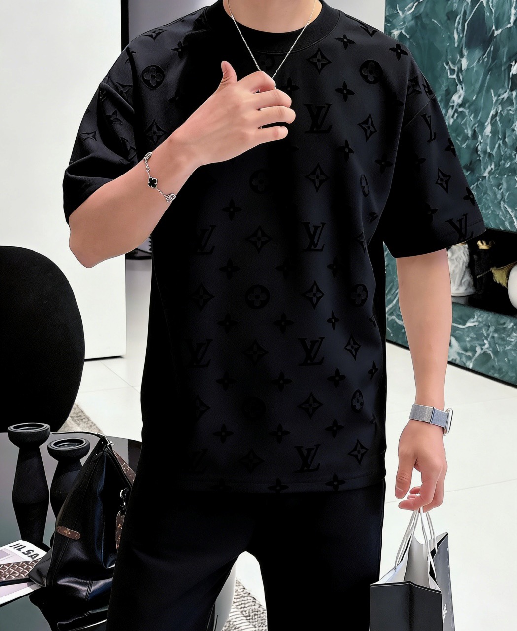 这款衣服是AAAAA 1:1 质量 (非常棒). 使用了和原版一模一样的材料. 商标部分也保持了和路易威登/Louis Vuitton一样. 图片拍摄是实物衣服拍摄, 您所收到的实物保证和我们图片一模一样.