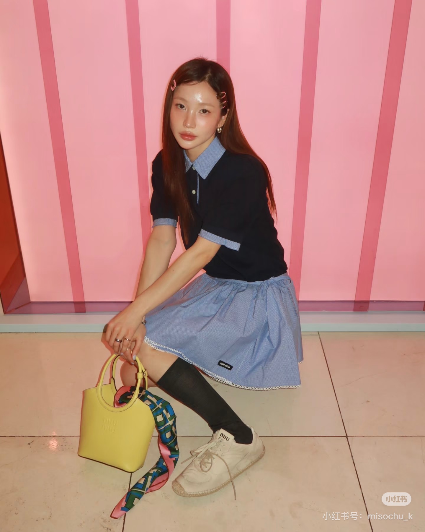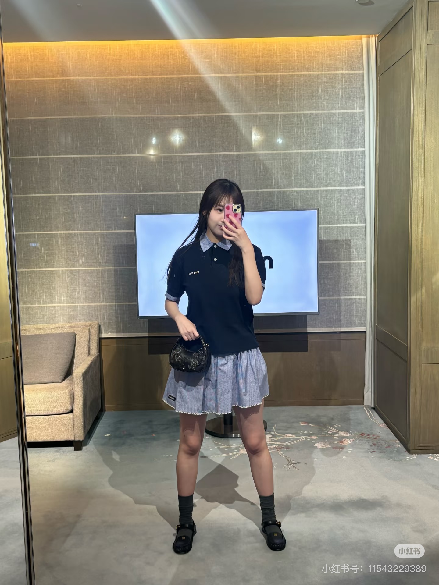 这款衣服是AAAAA 1:1 质量 (非常棒). 使用了和原版一模一样的材料. 商标部分也保持了和缪缪/Miu Miu一样. 图片拍摄是实物衣服拍摄, 您所收到的实物保证和我们图片一模一样.