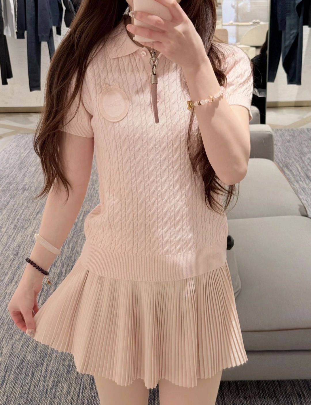这款衣服是AAAAA 1:1 质量 (非常棒). 使用了和原版一模一样的材料. 商标部分也保持了和缪缪/Miu Miu一样. 图片拍摄是实物衣服拍摄, 您所收到的实物保证和我们图片一模一样.