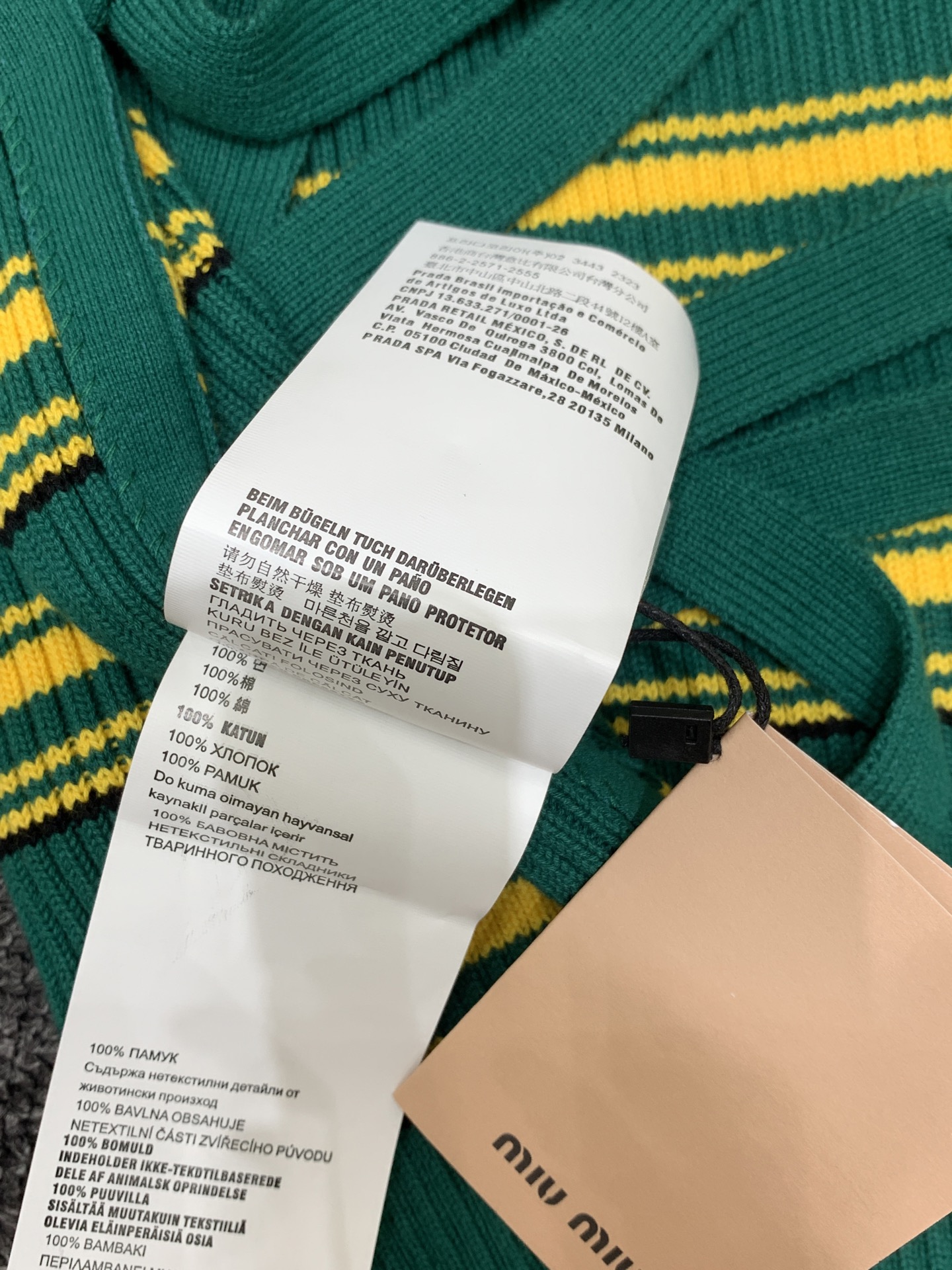 这款衣服是AAAAA 1:1 质量 (非常棒). 使用了和原版一模一样的材料. 商标部分也保持了和缪缪/Miu Miu一样. 图片拍摄是实物衣服拍摄, 您所收到的实物保证和我们图片一模一样.