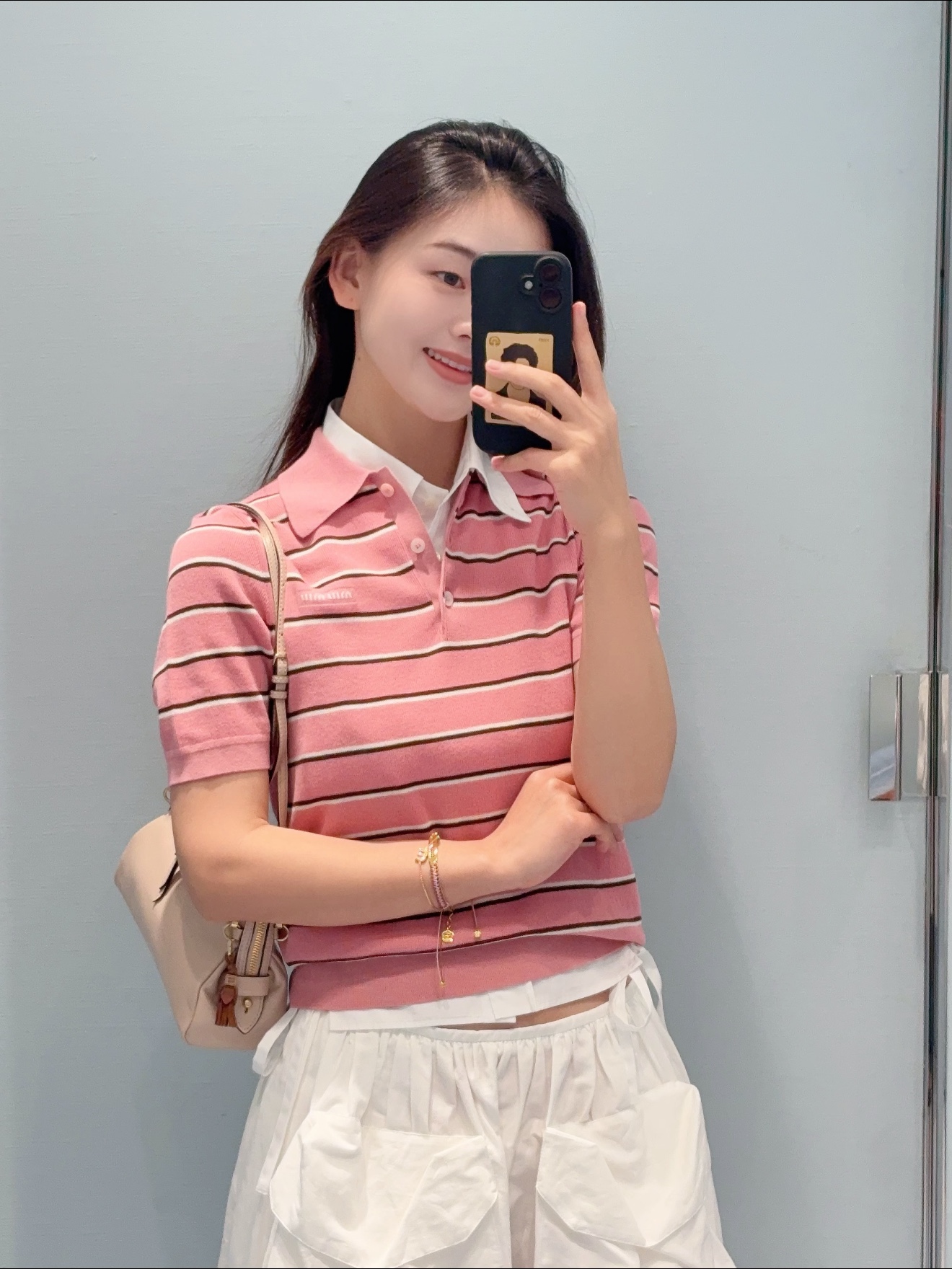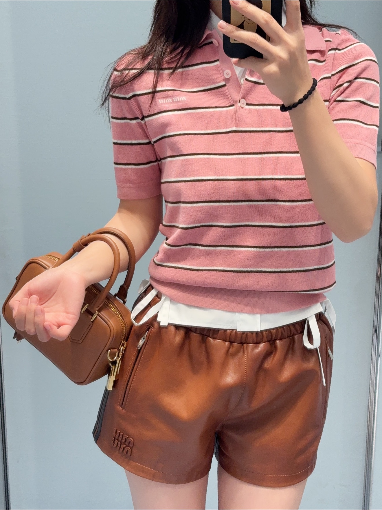 这款衣服是AAAAA 1:1 质量 (非常棒). 使用了和原版一模一样的材料. 商标部分也保持了和缪缪/Miu Miu一样. 图片拍摄是实物衣服拍摄, 您所收到的实物保证和我们图片一模一样.