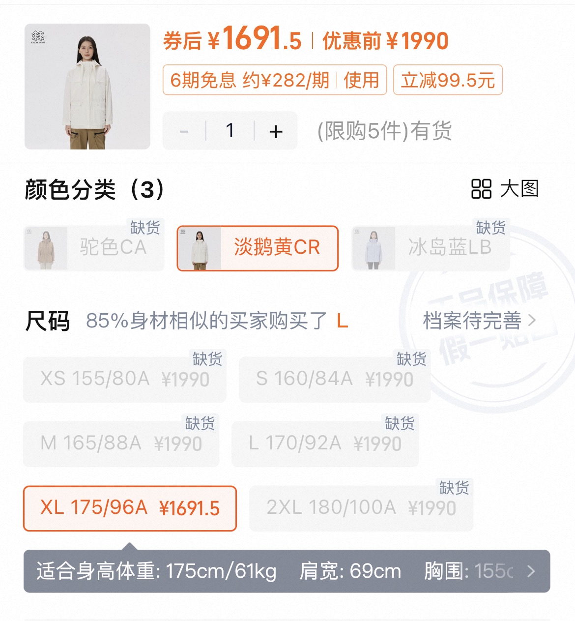 这款衣服是AAAAA 1:1 质量 (非常棒). 使用了和原版一模一样的材料. 商标部分也保持了和一样. 图片拍摄是实物衣服拍摄, 您所收到的实物保证和我们图片一模一样.
