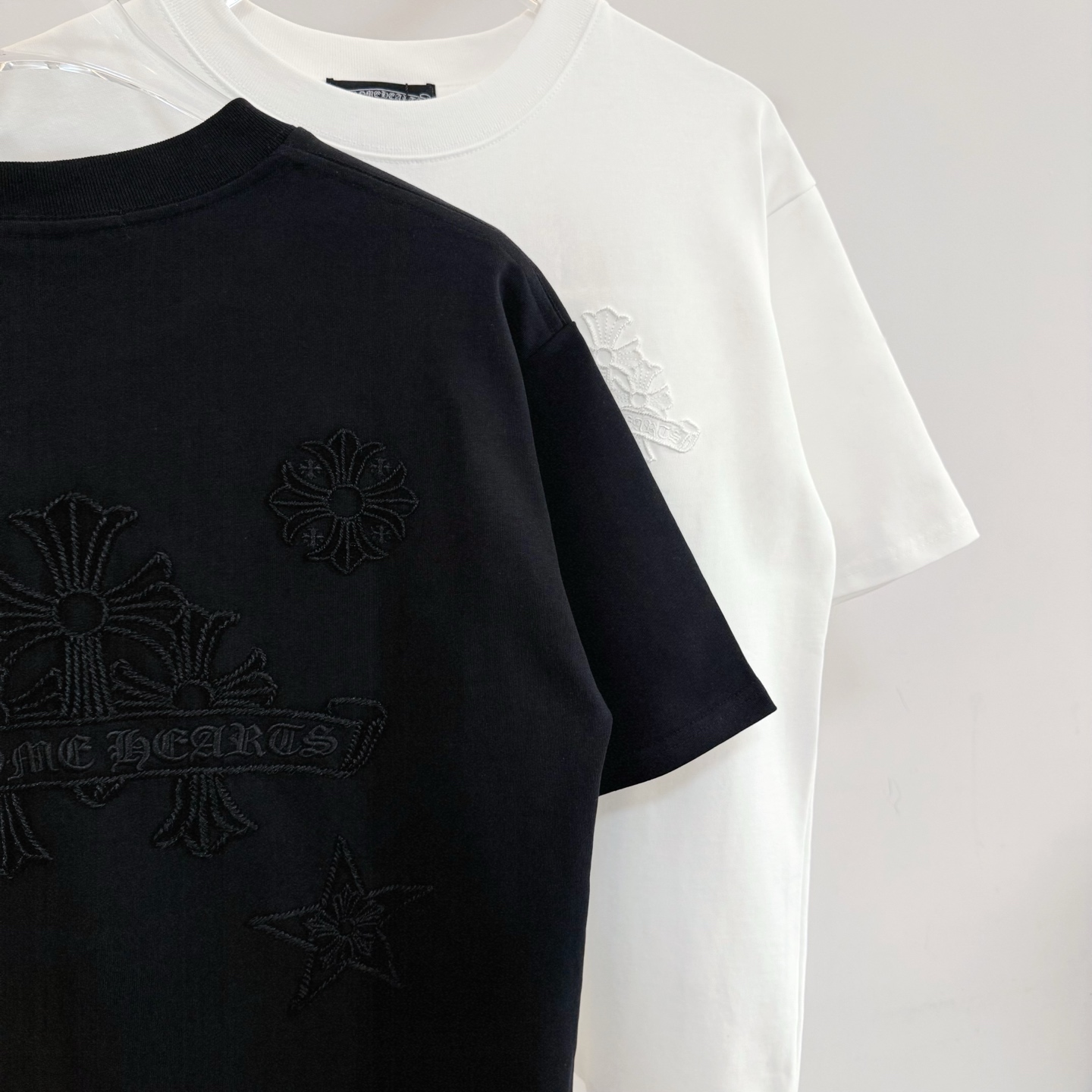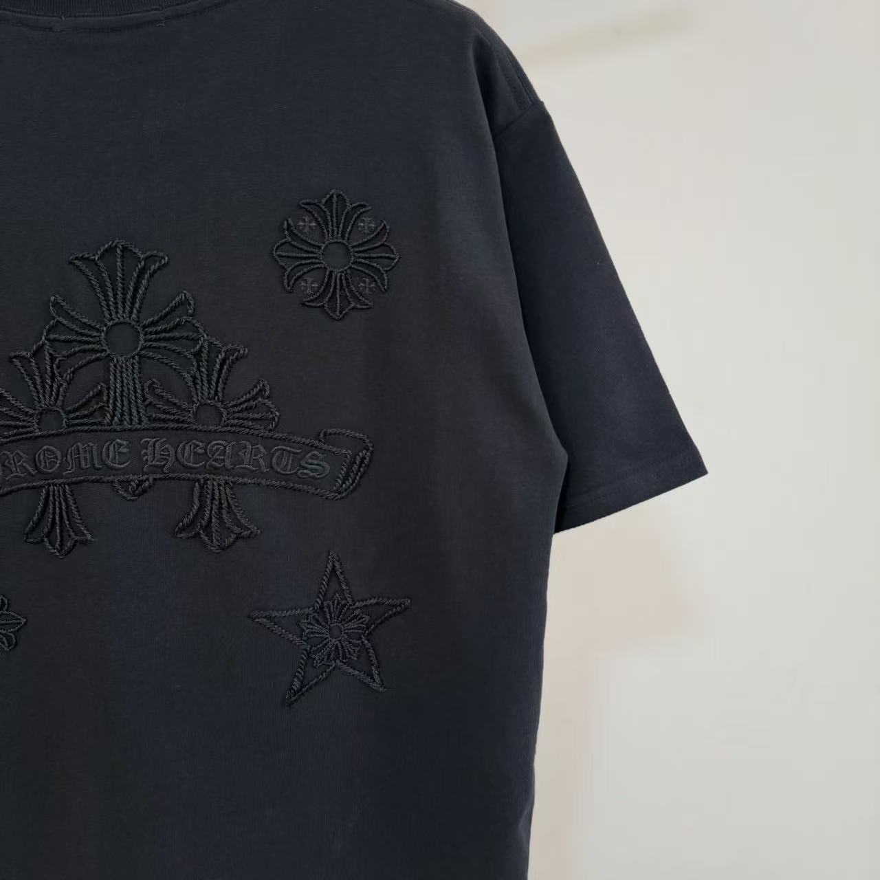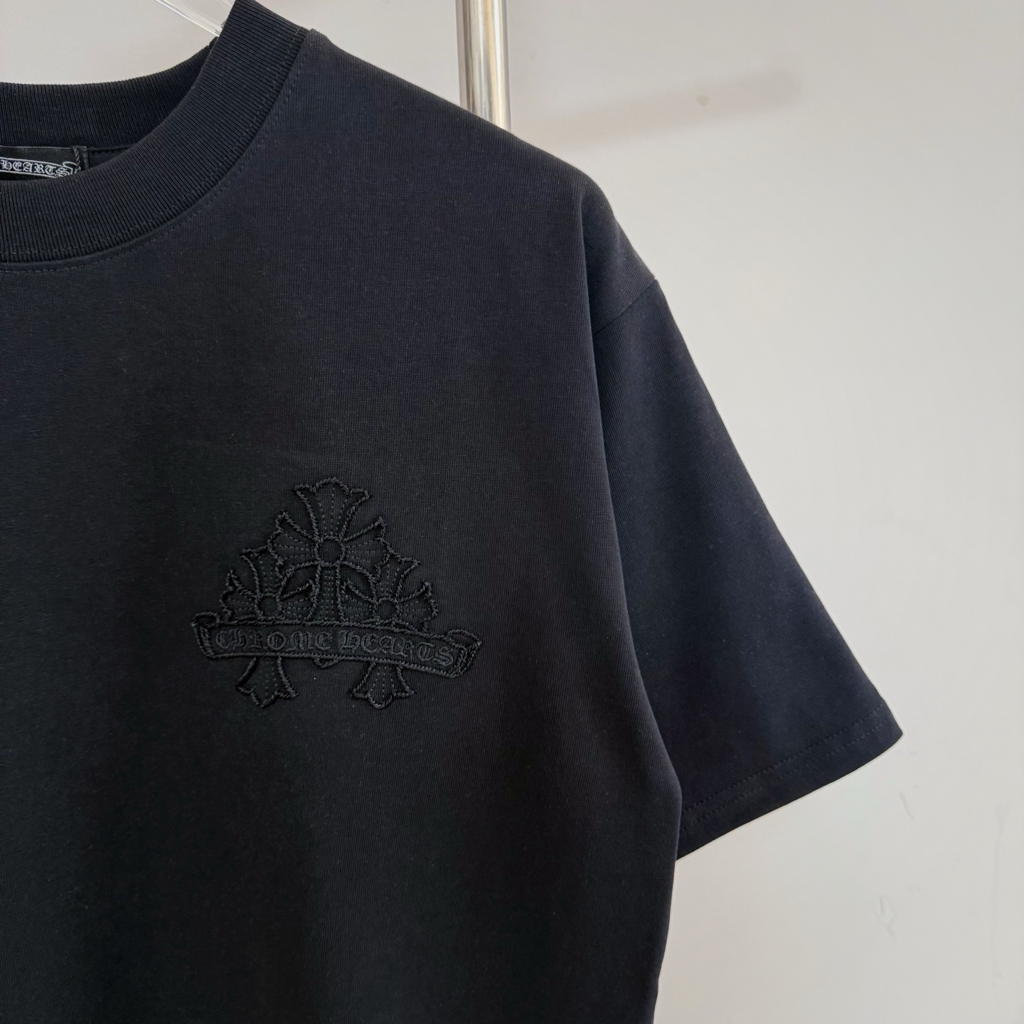 这款衣服是AAAAA 1:1 质量 (非常棒). 使用了和原版一模一样的材料. 商标部分也保持了和克罗心/Chrome Hearts一样. 图片拍摄是实物衣服拍摄, 您所收到的实物保证和我们图片一模一样.