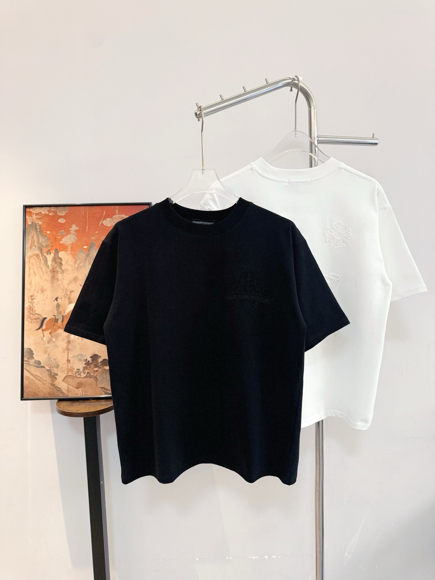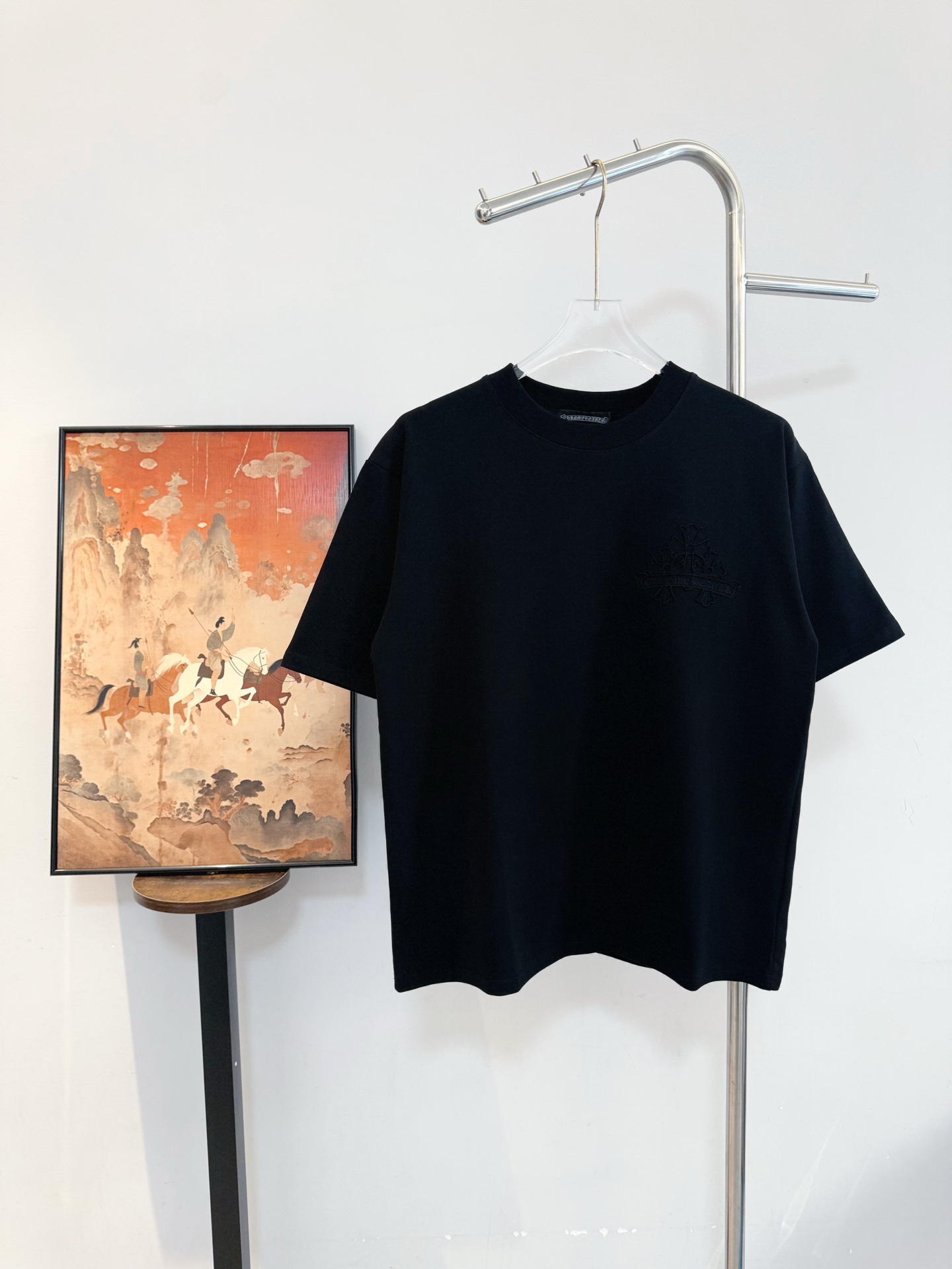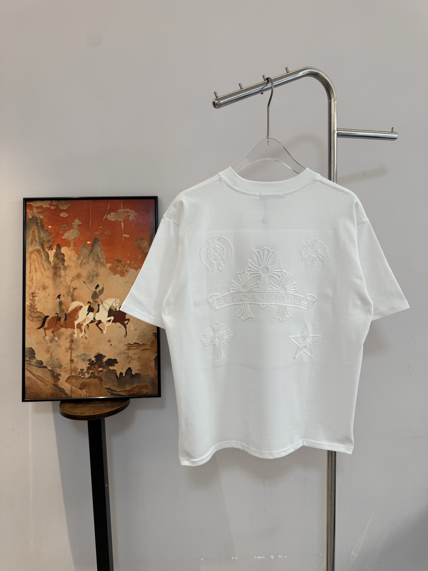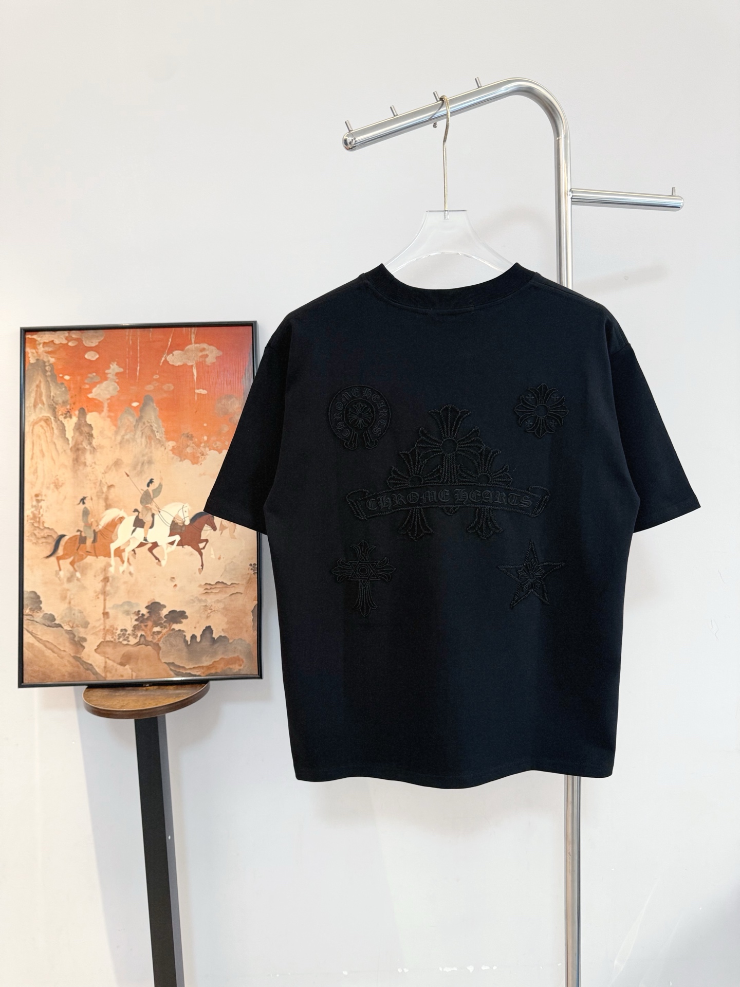 这款衣服是AAAAA 1:1 质量 (非常棒). 使用了和原版一模一样的材料. 商标部分也保持了和克罗心/Chrome Hearts一样. 图片拍摄是实物衣服拍摄, 您所收到的实物保证和我们图片一模一样.