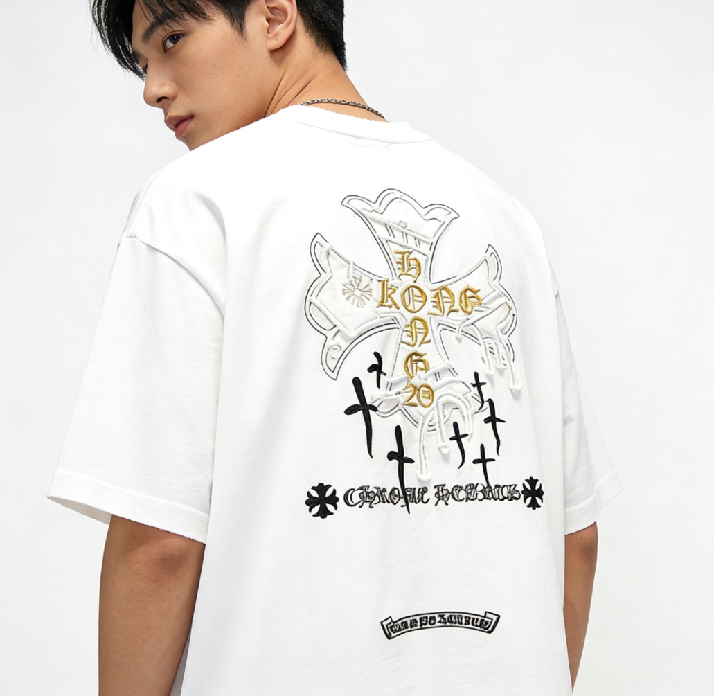 这款衣服是AAAAA 1:1 质量 (非常棒). 使用了和原版一模一样的材料. 商标部分也保持了和克罗心/Chrome Hearts一样. 图片拍摄是实物衣服拍摄, 您所收到的实物保证和我们图片一模一样.