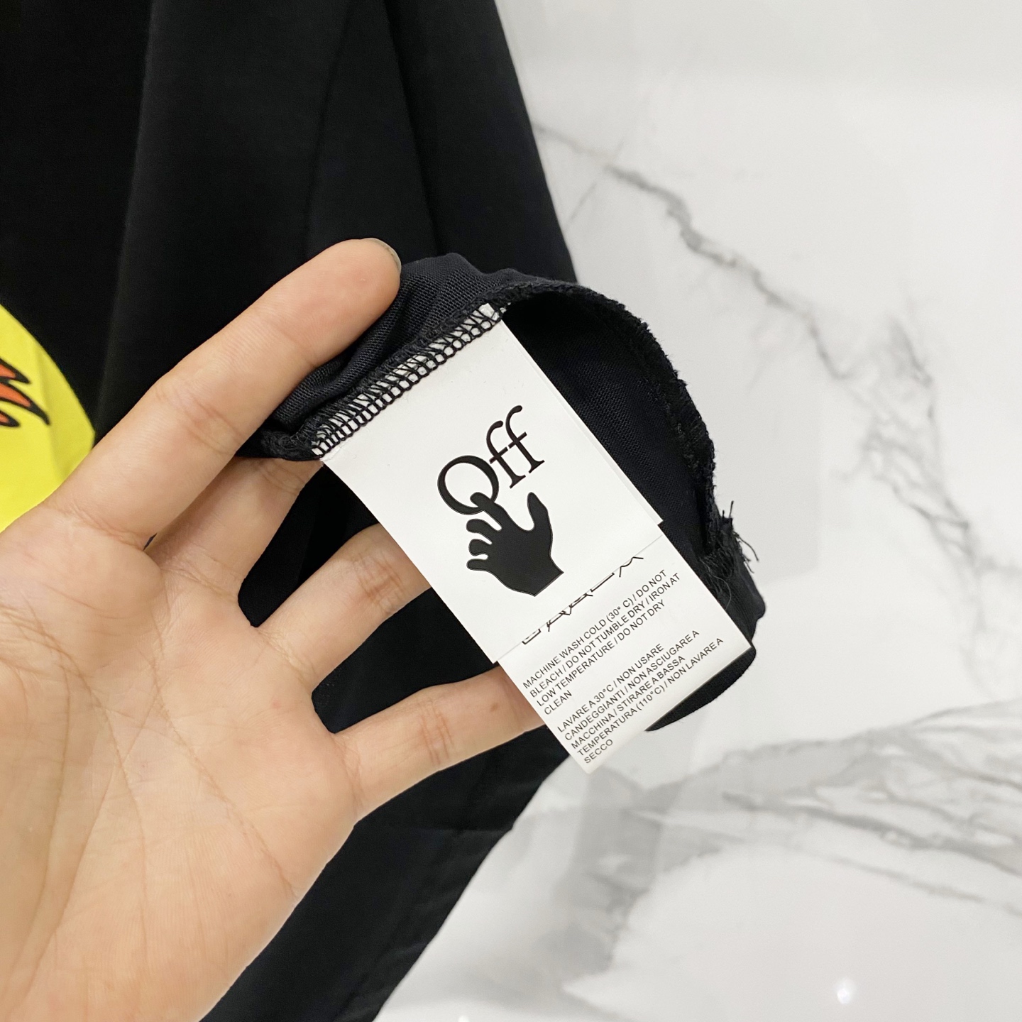 这款衣服是AAAAA 1:1 质量 (非常棒). 使用了和原版一模一样的材料. 商标部分也保持了和OFF WHITE一样. 图片拍摄是实物衣服拍摄, 您所收到的实物保证和我们图片一模一样.