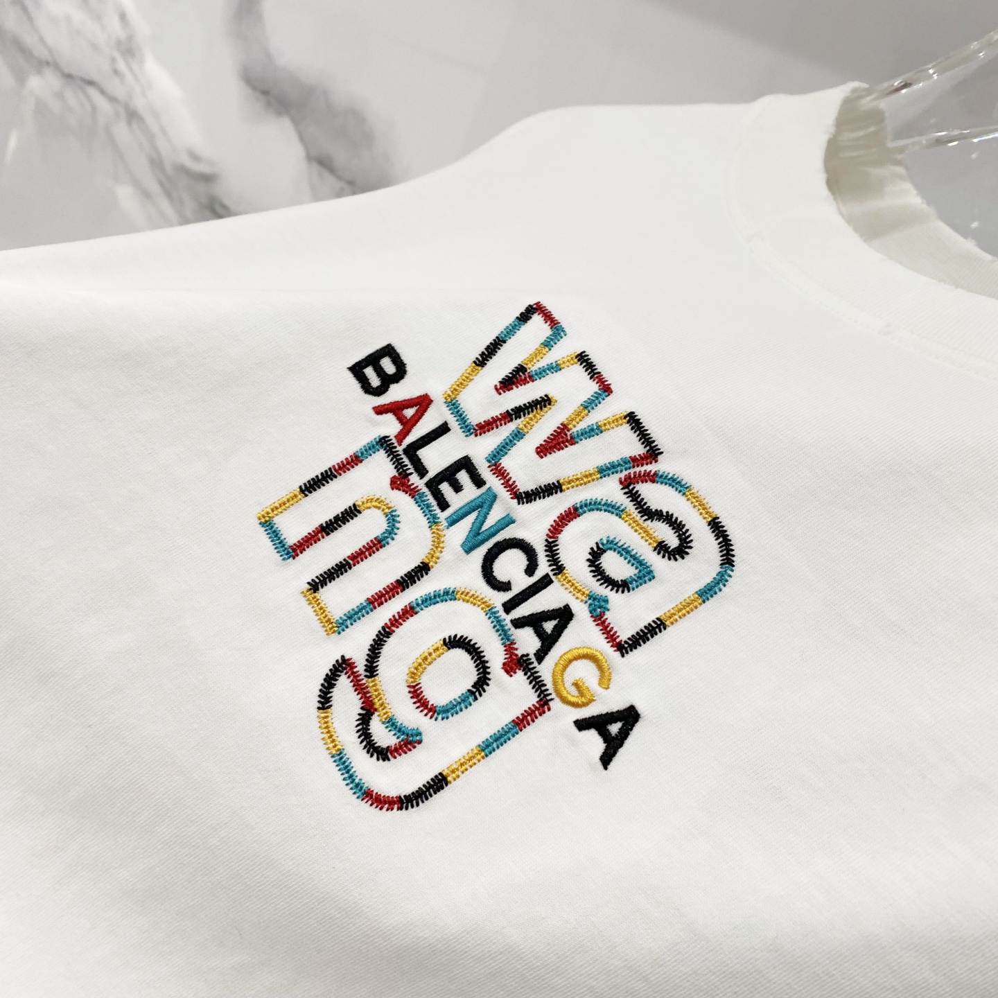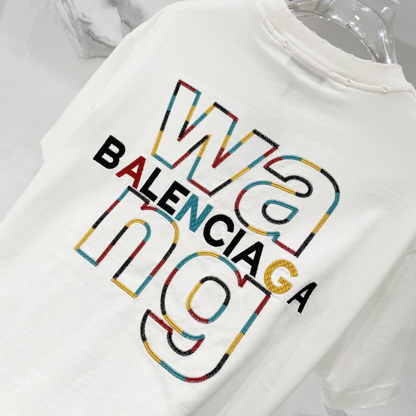 这款衣服是AAAAA 1:1 质量 (非常棒). 使用了和原版一模一样的材料. 商标部分也保持了和巴黎世家/Balenciaga一样. 图片拍摄是实物衣服拍摄, 您所收到的实物保证和我们图片一模一样.