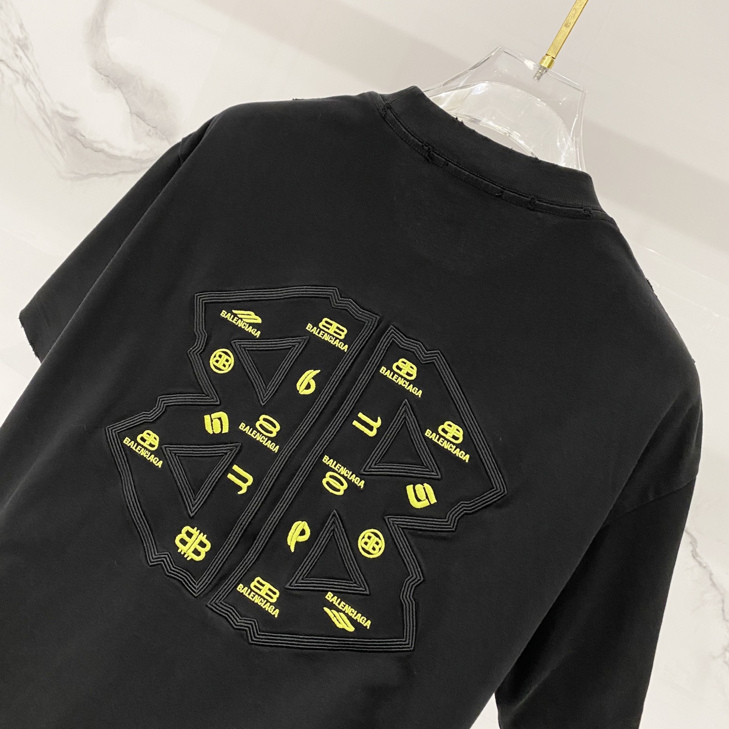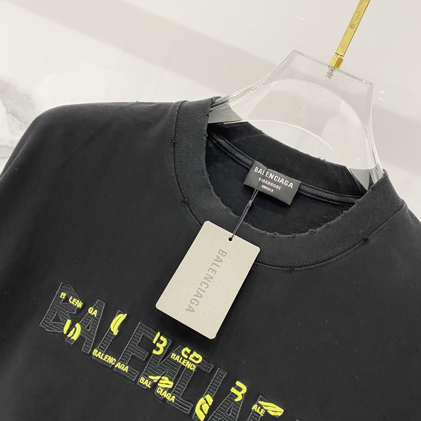 这款衣服是AAAAA 1:1 质量 (非常棒). 使用了和原版一模一样的材料. 商标部分也保持了和巴黎世家/Balenciaga一样. 图片拍摄是实物衣服拍摄, 您所收到的实物保证和我们图片一模一样.