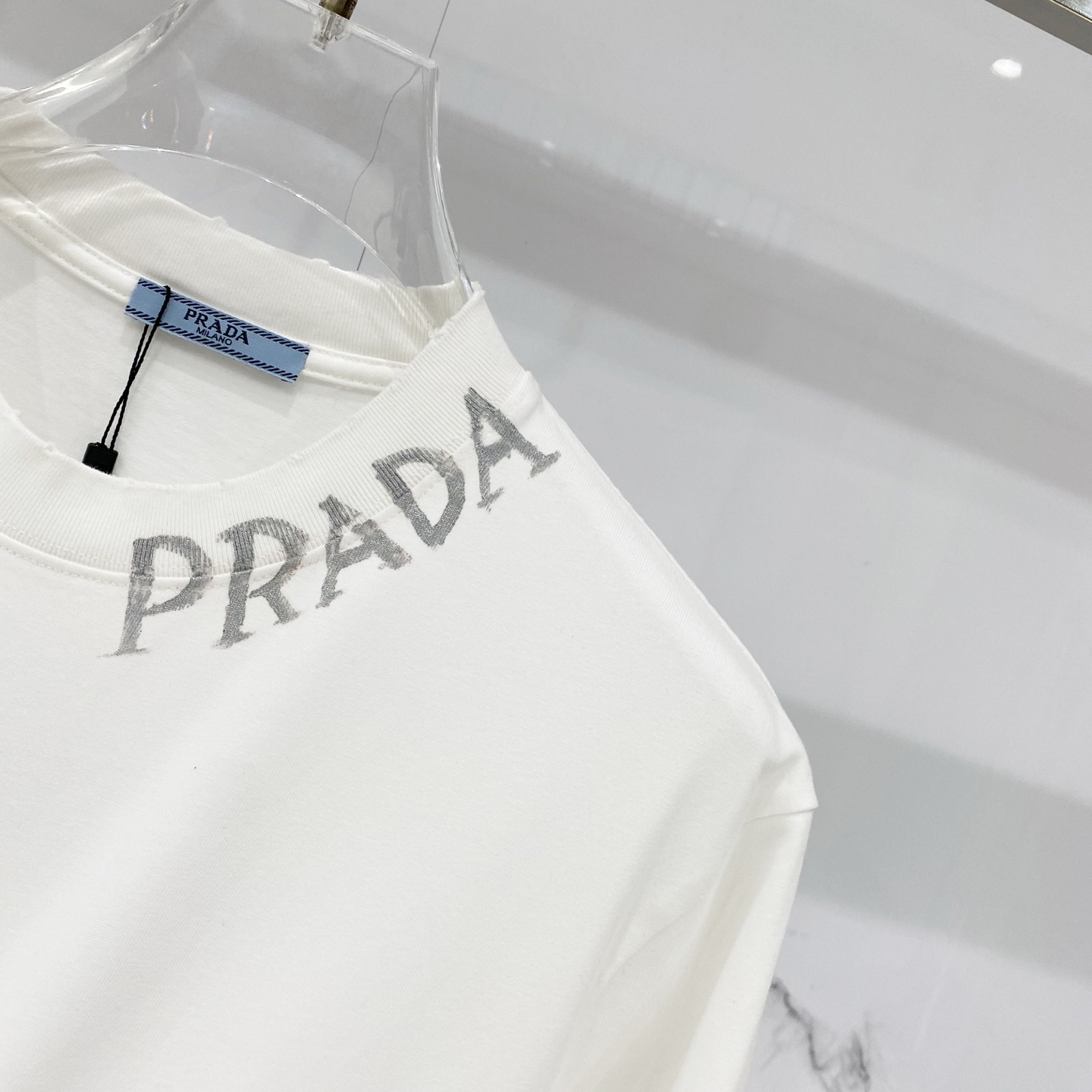 这款衣服是AAAAA 1:1 质量 (非常棒). 使用了和原版一模一样的材料. 商标部分也保持了和普拉达/Prada一样. 图片拍摄是实物衣服拍摄, 您所收到的实物保证和我们图片一模一样.