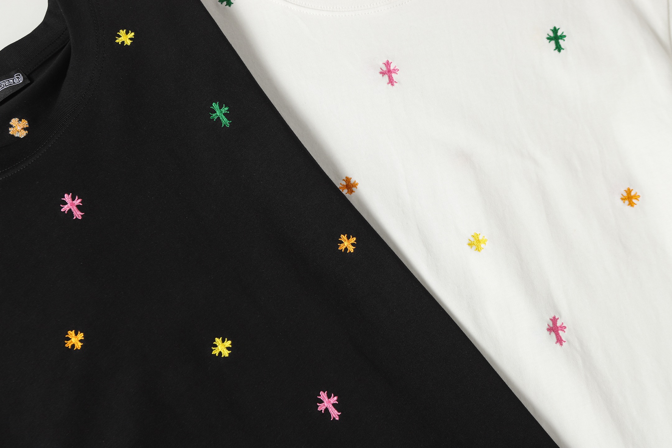这款衣服是AAAAA 1:1 质量 (非常棒). 使用了和原版一模一样的材料. 商标部分也保持了和克罗心/Chrome Hearts一样. 图片拍摄是实物衣服拍摄, 您所收到的实物保证和我们图片一模一样.