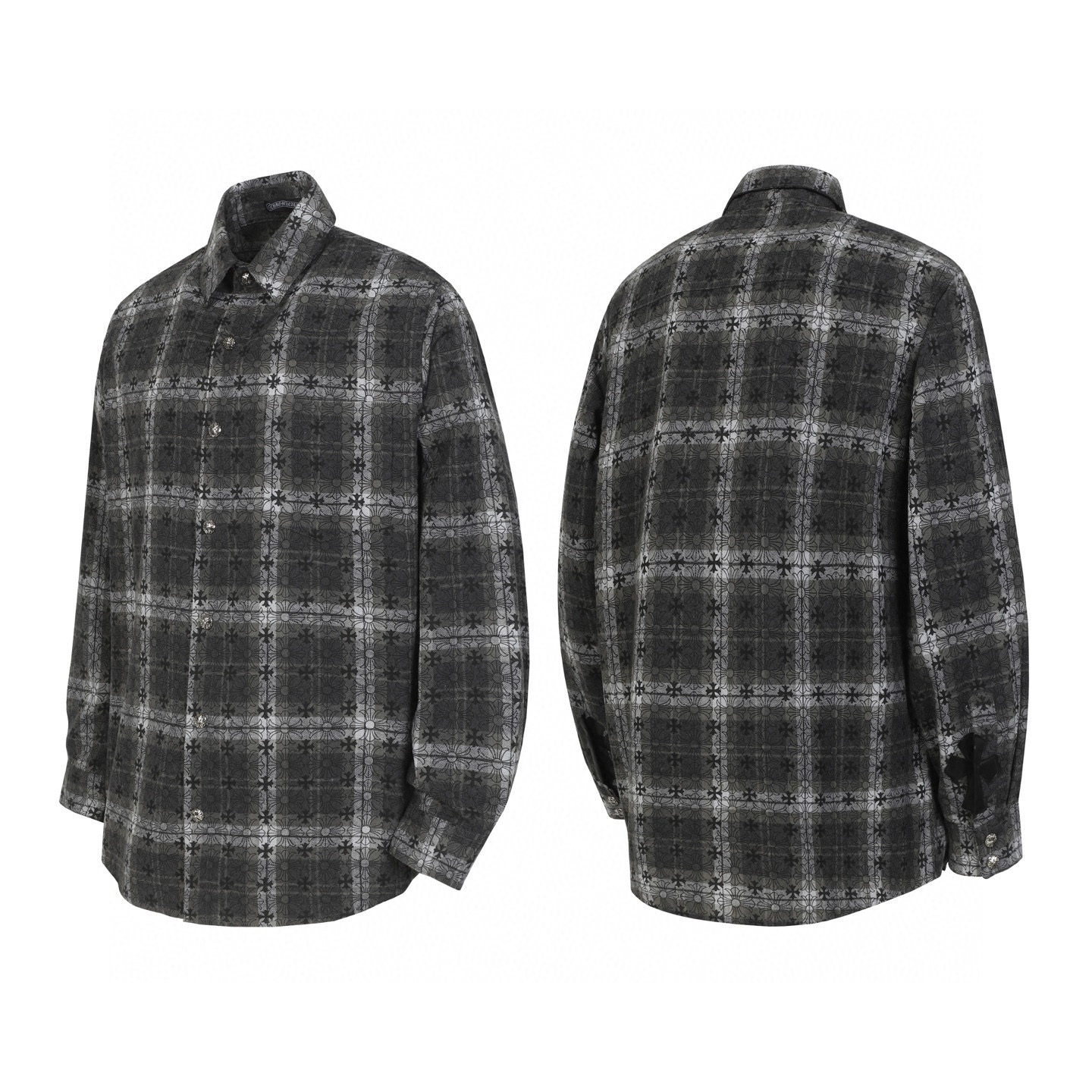 这款衣服是AAAAA 1:1 质量 (非常棒). 使用了和原版一模一样的材料. 商标部分也保持了和克罗心/Chrome Hearts一样. 图片拍摄是实物衣服拍摄, 您所收到的实物保证和我们图片一模一样.