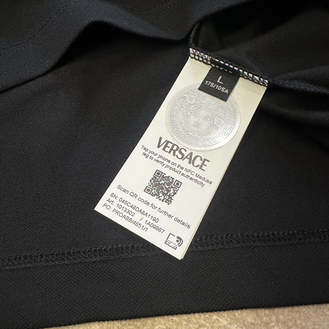 这款衣服是AAAAA 1:1 质量 (非常棒). 使用了和原版一模一样的材料. 商标部分也保持了和范思哲/Versace一样. 图片拍摄是实物衣服拍摄, 您所收到的实物保证和我们图片一模一样.