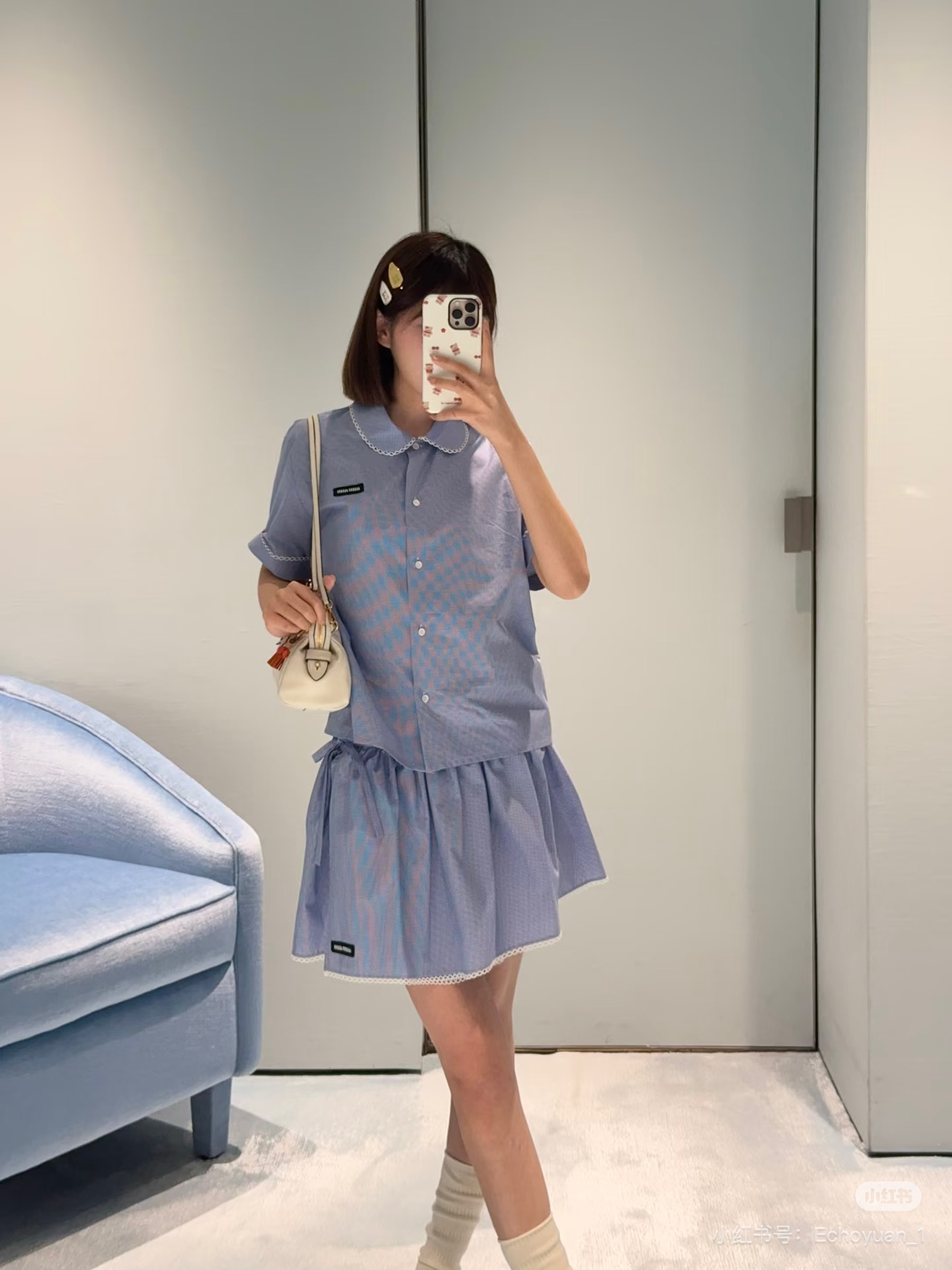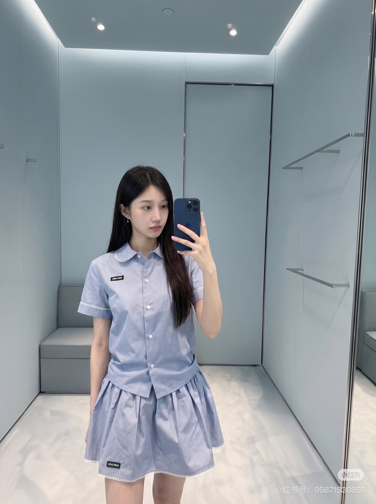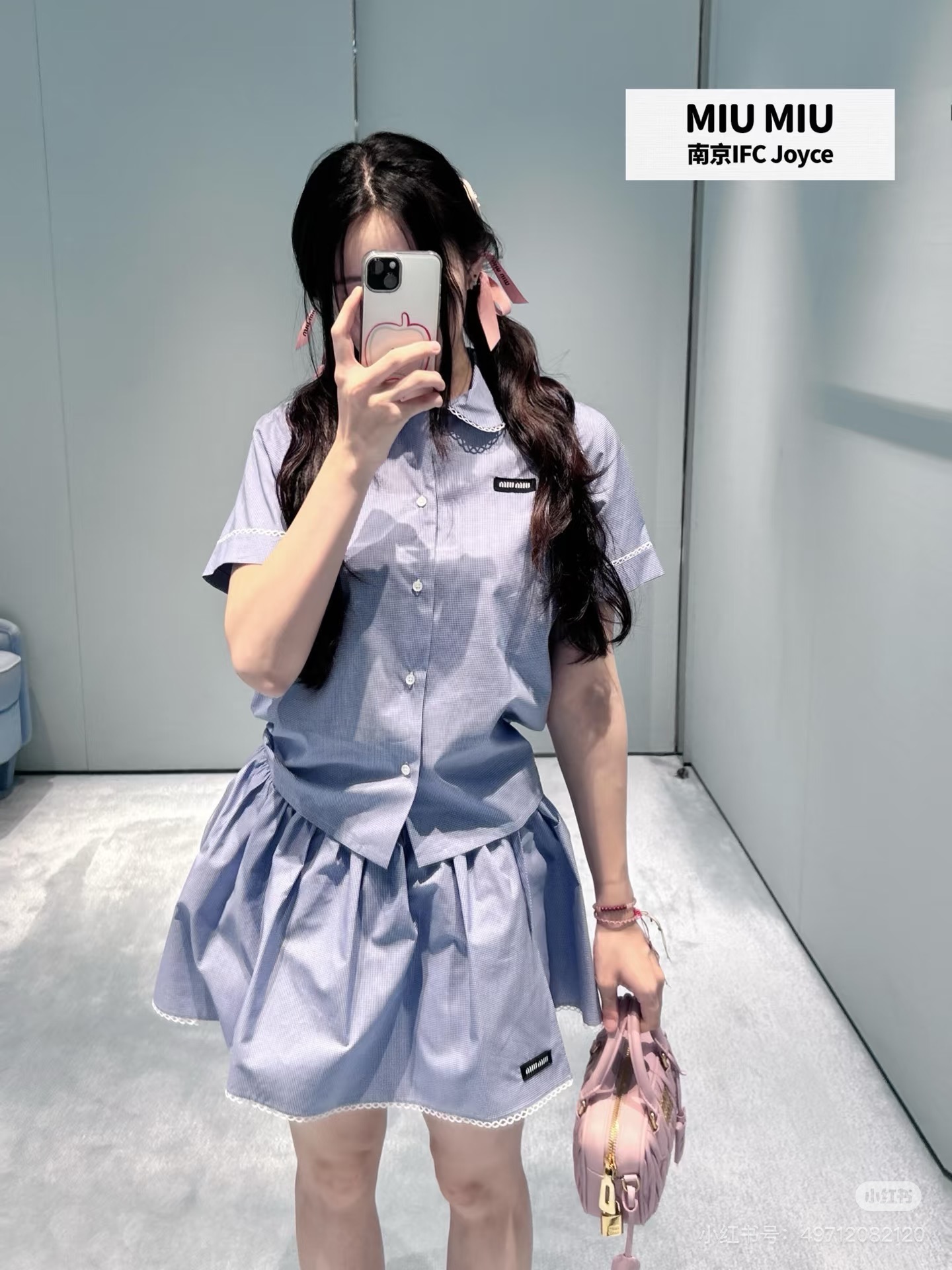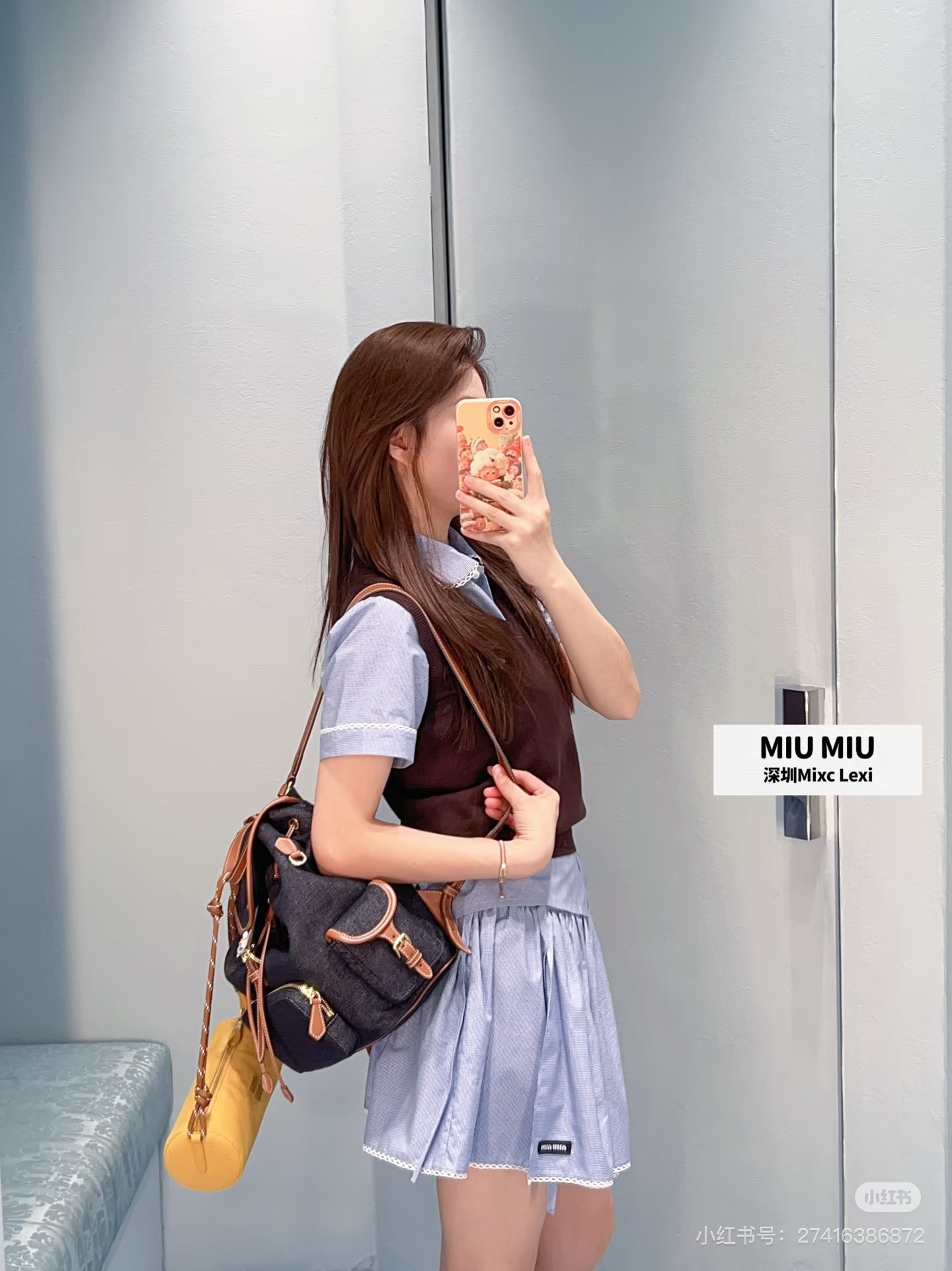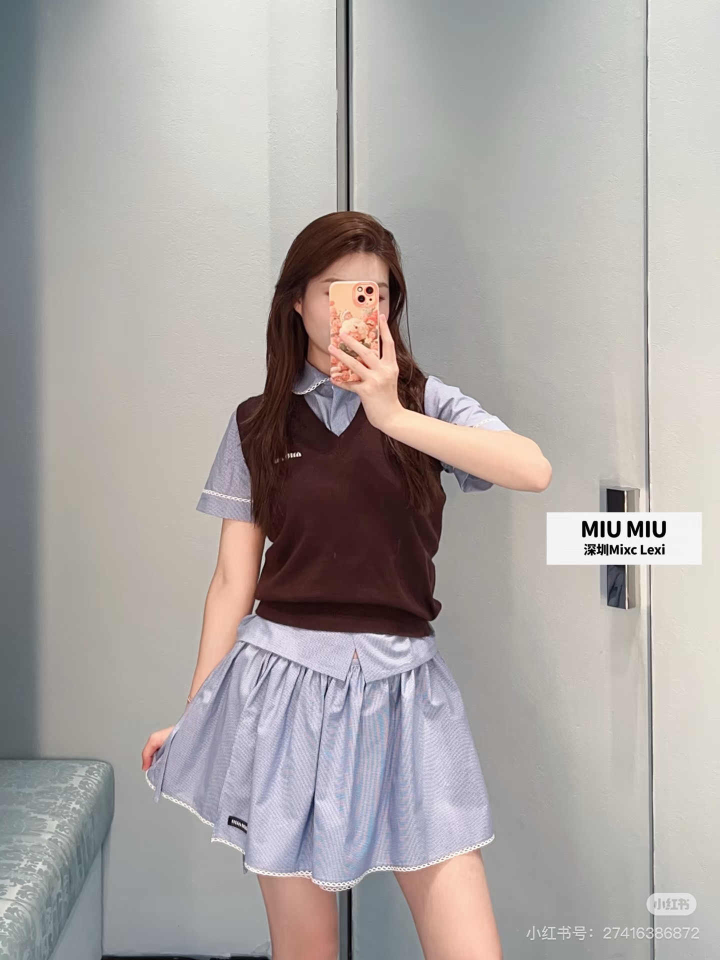 这款衣服是AAAAA 1:1 质量 (非常棒). 使用了和原版一模一样的材料. 商标部分也保持了和缪缪/Miu Miu一样. 图片拍摄是实物衣服拍摄, 您所收到的实物保证和我们图片一模一样.
