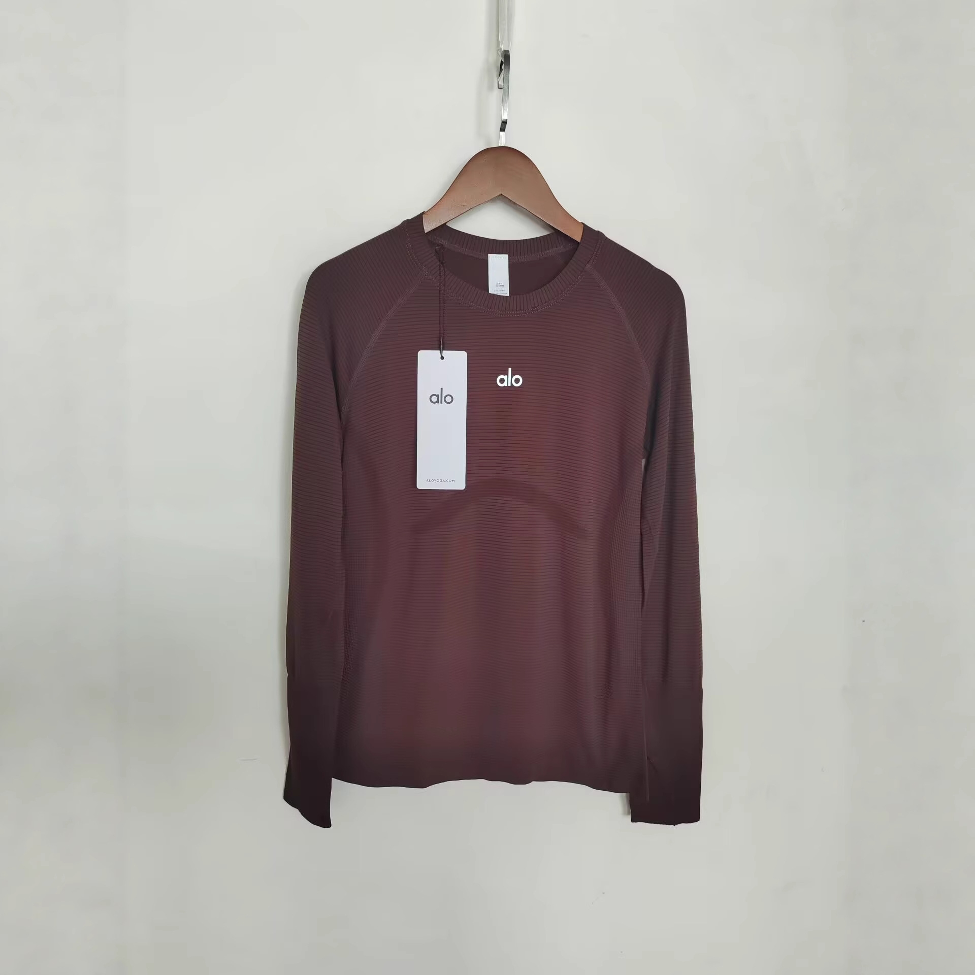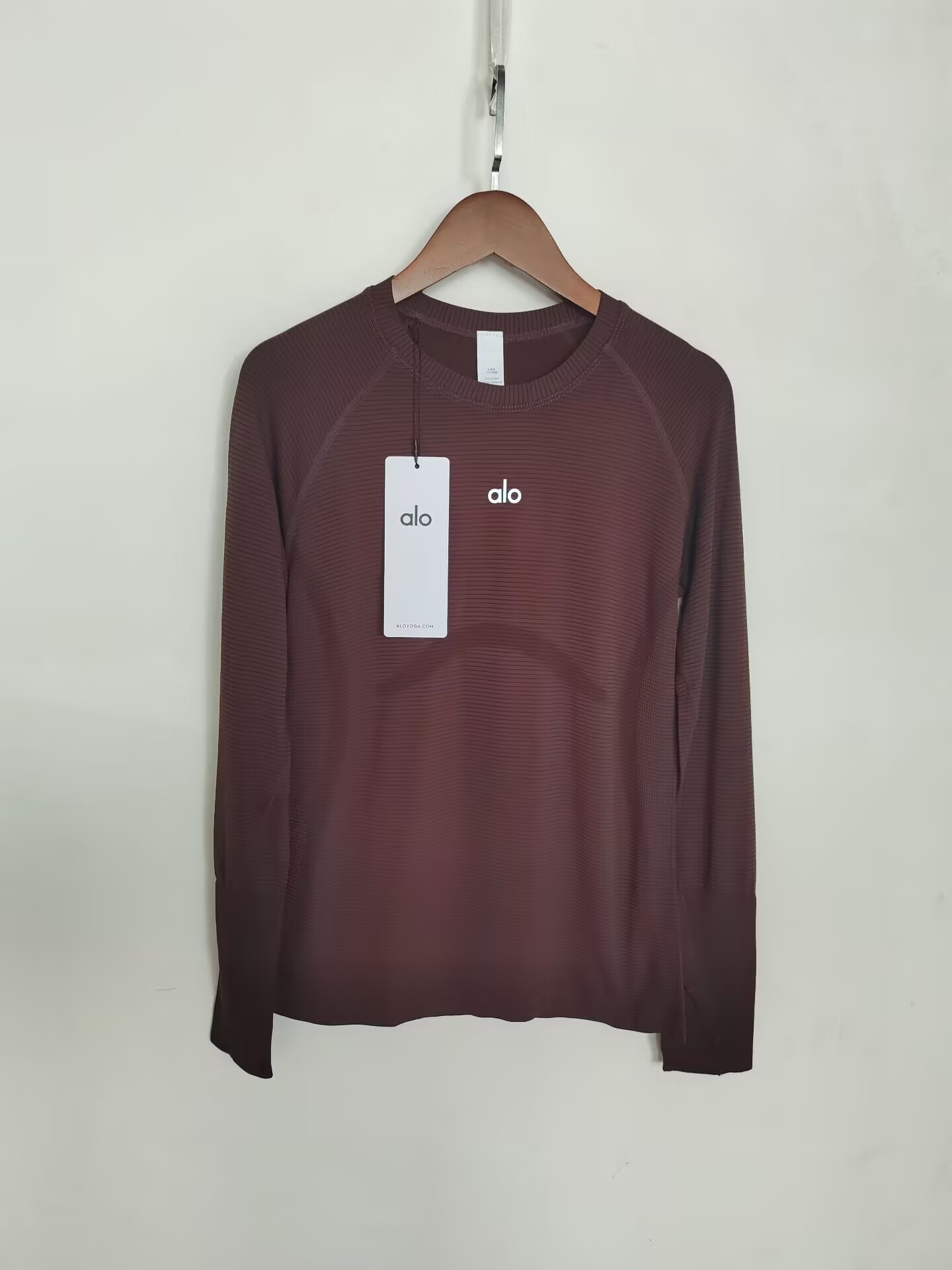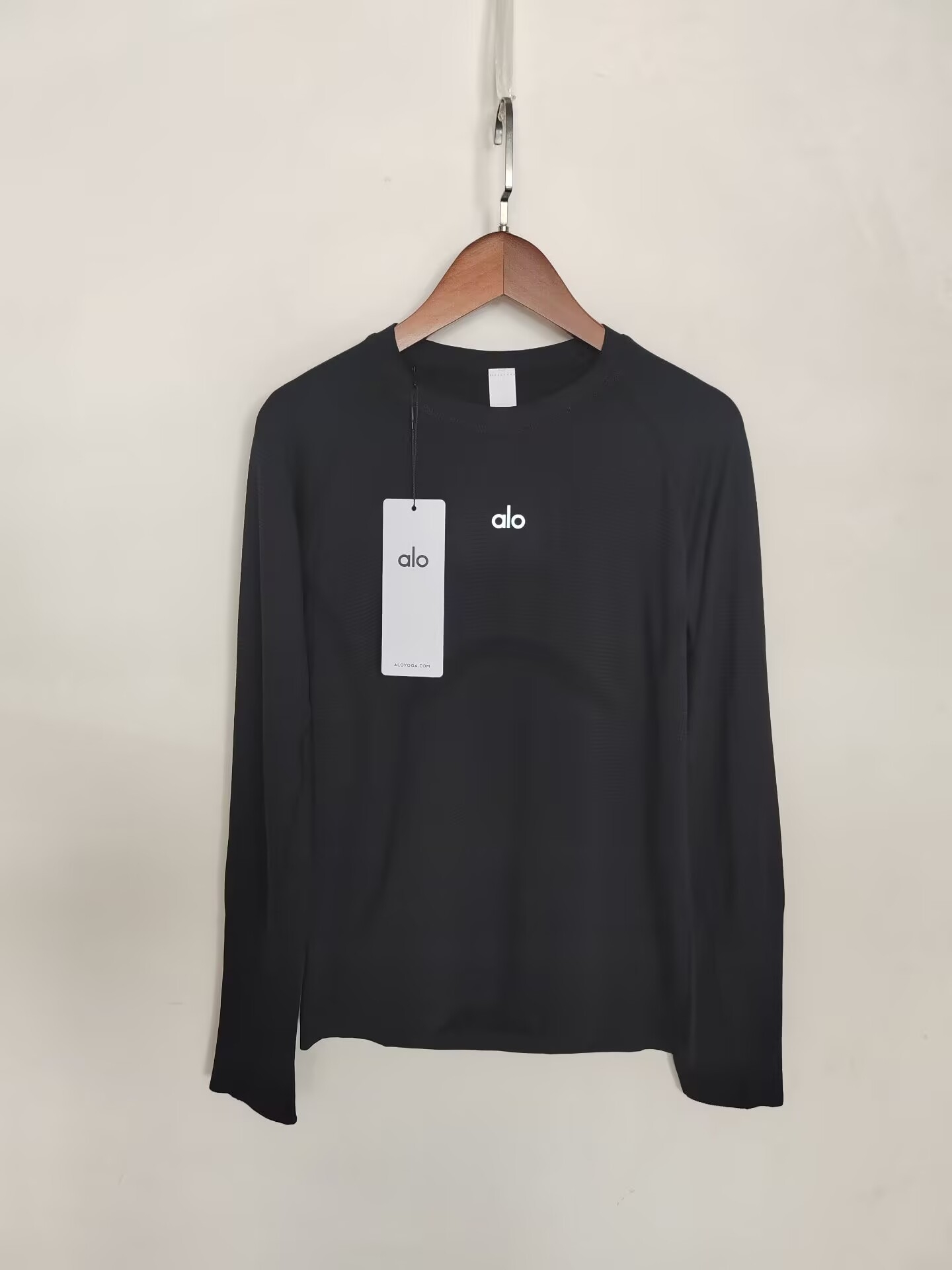 这款衣服是AAAAA 1:1 质量 (非常棒). 使用了和原版一模一样的材料. 商标部分也保持了和Alo Yoga一样. 图片拍摄是实物衣服拍摄, 您所收到的实物保证和我们图片一模一样.