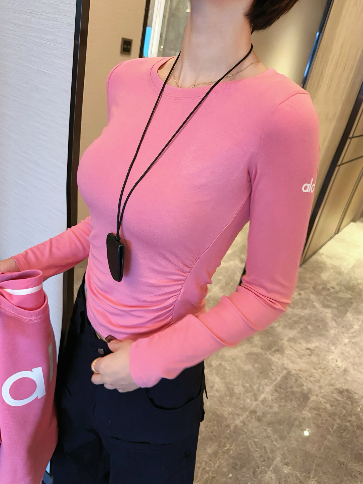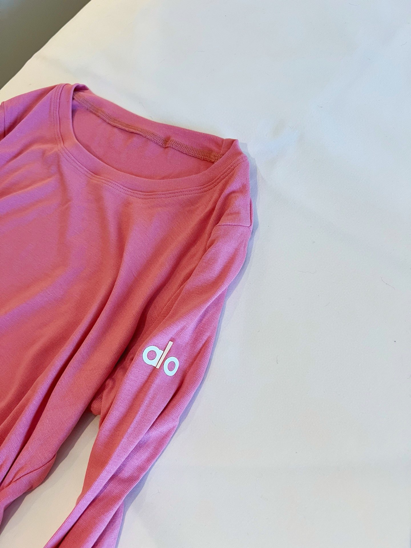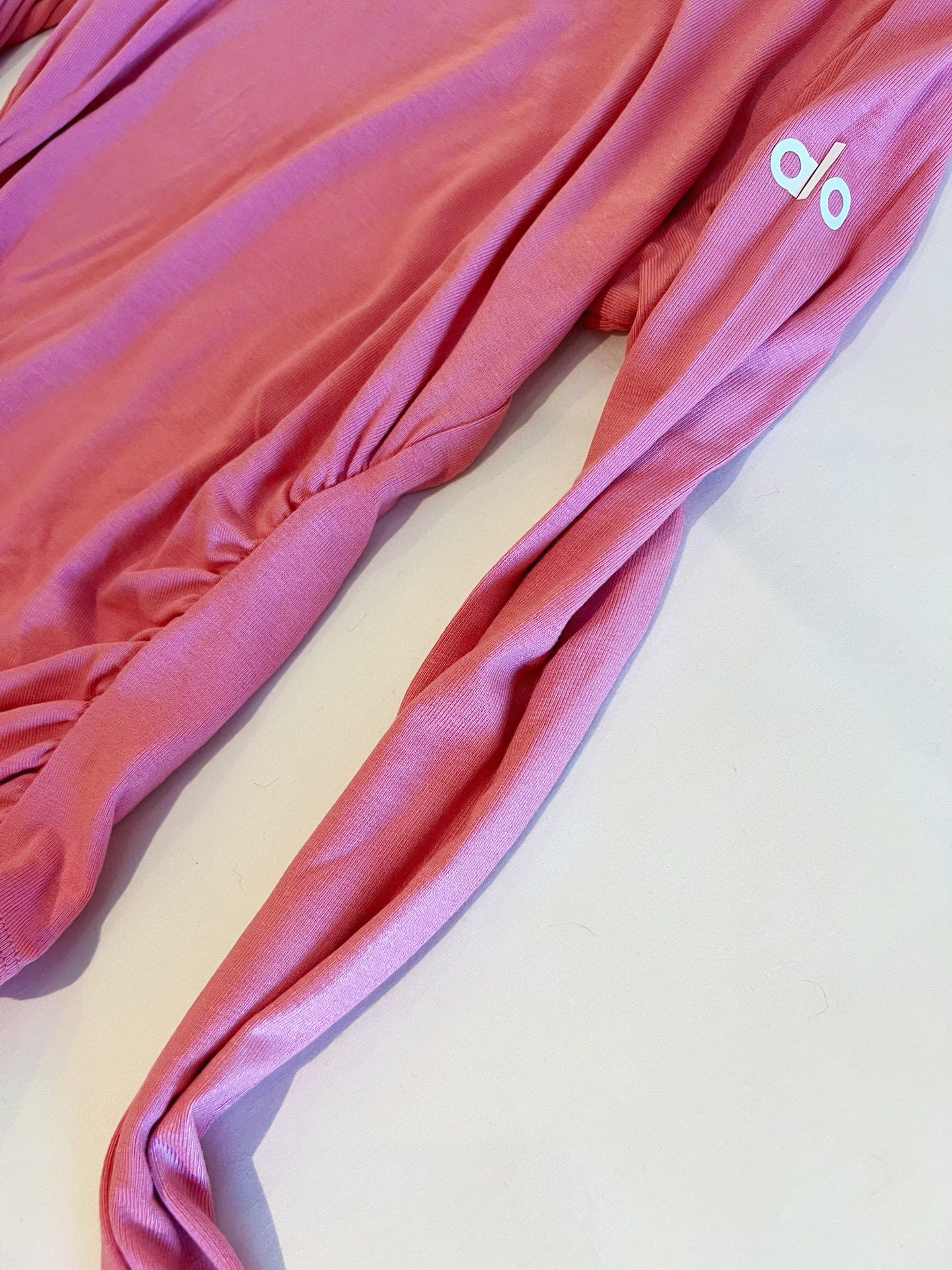 这款衣服是AAAAA 1:1 质量 (非常棒). 使用了和原版一模一样的材料. 商标部分也保持了和Alo Yoga一样. 图片拍摄是实物衣服拍摄, 您所收到的实物保证和我们图片一模一样.