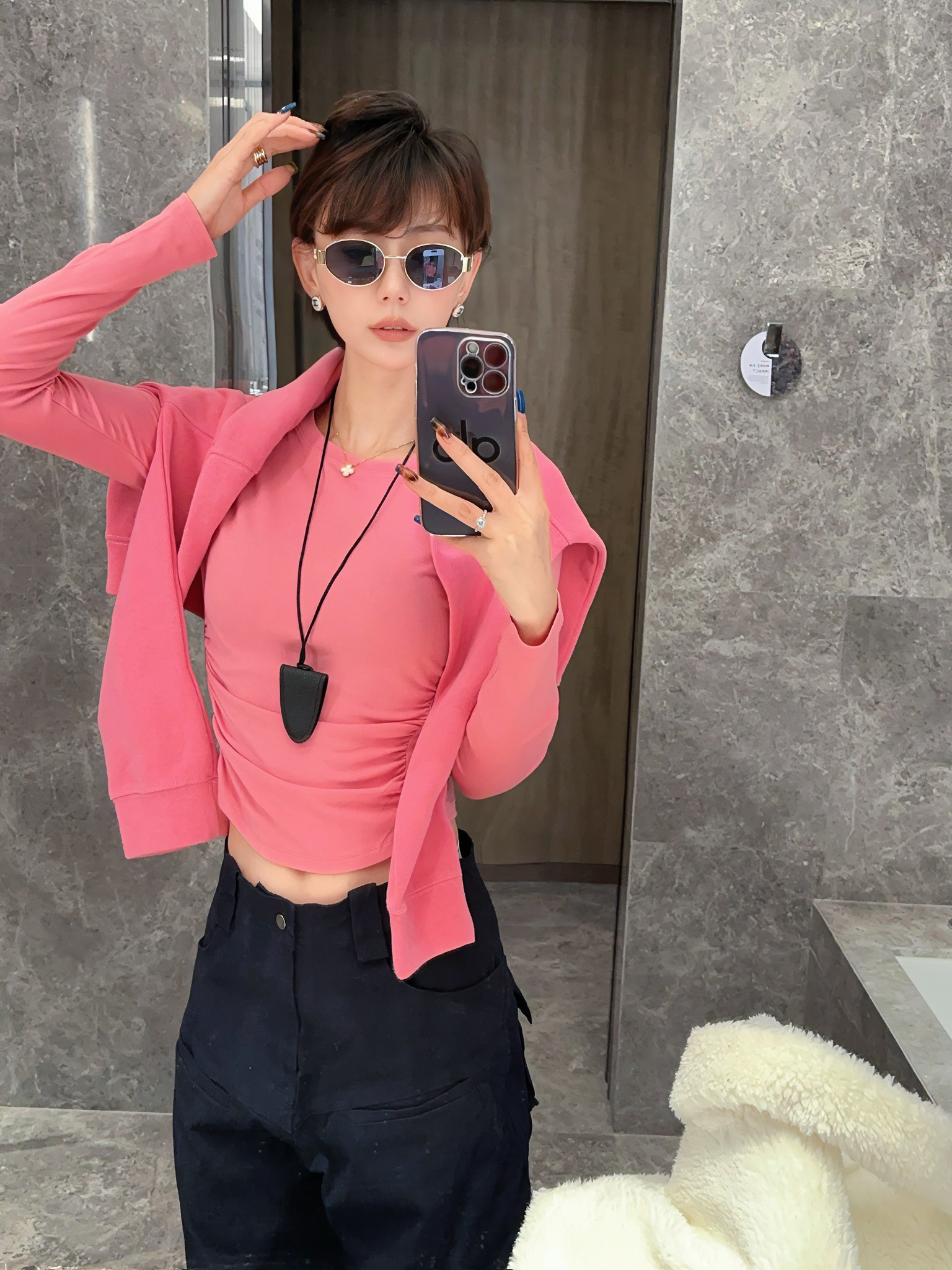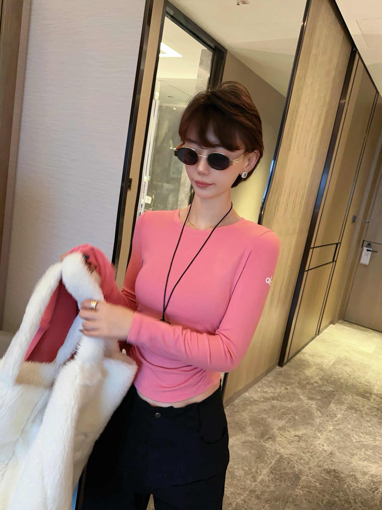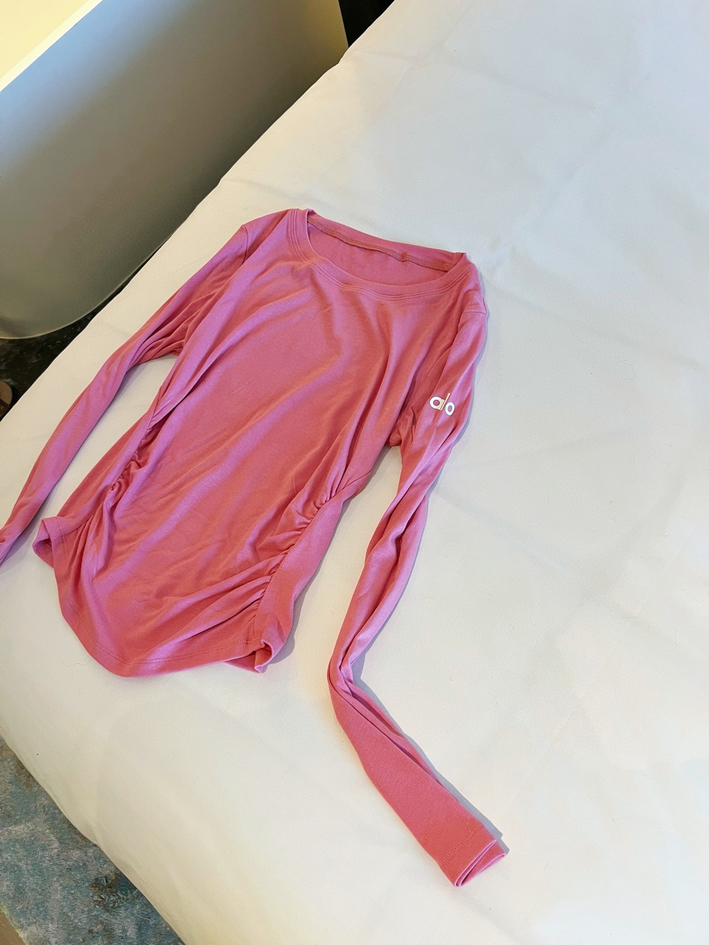 这款衣服是AAAAA 1:1 质量 (非常棒). 使用了和原版一模一样的材料. 商标部分也保持了和Alo Yoga一样. 图片拍摄是实物衣服拍摄, 您所收到的实物保证和我们图片一模一样.