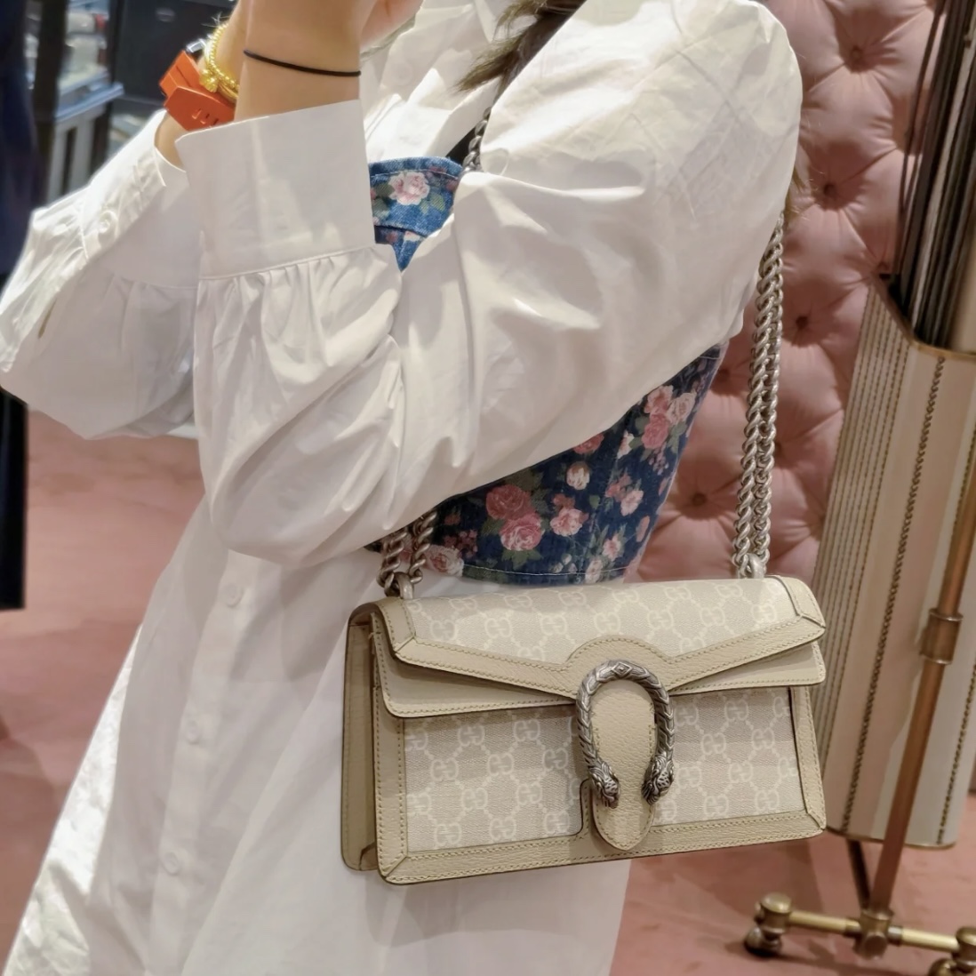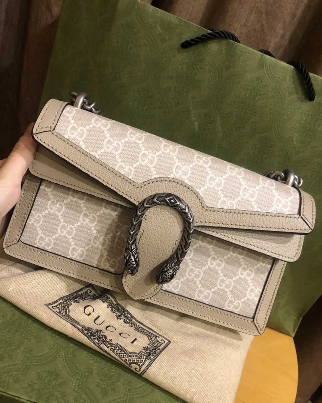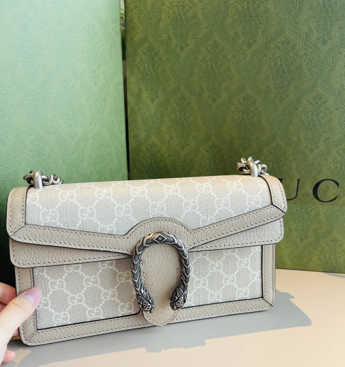 这款包包是AAAAA 1:1 质量 (非常棒). 使用了和原版一模一样的材料. 商标部分也保持了和古奇/Gucci一样. 图片拍摄是实物包包拍摄, 您所收到的实物保证和我们图片一模一样.