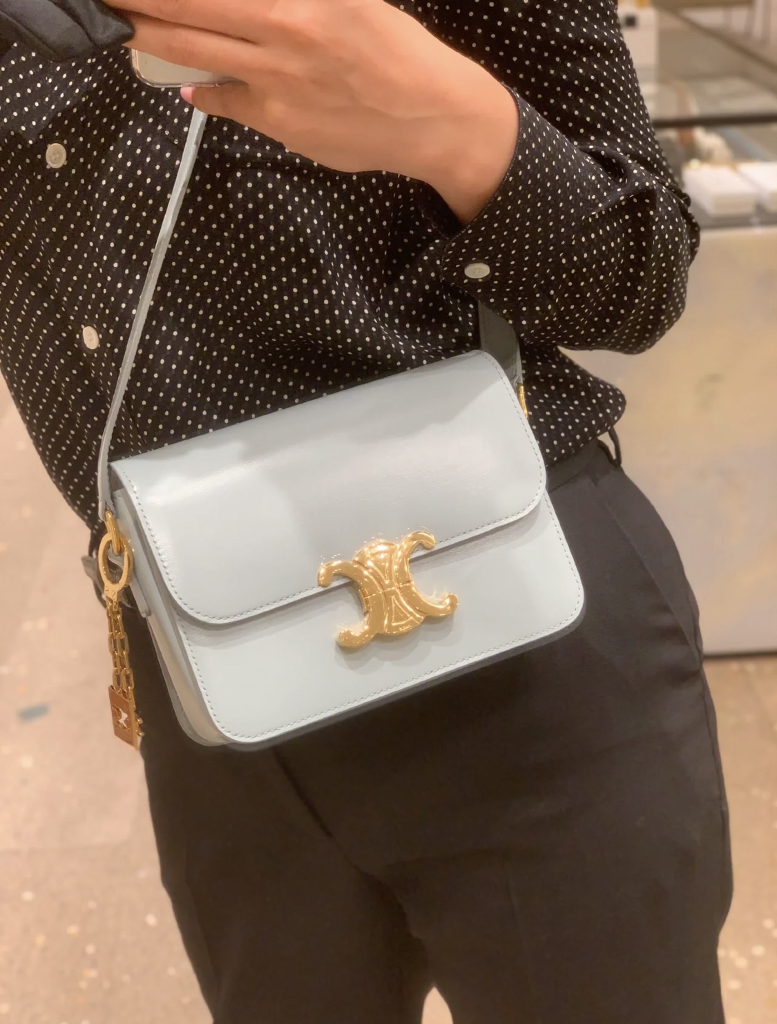 这款包包是AAAAA 1:1 质量 (非常棒). 使用了和原版一模一样的材料. 商标部分也保持了和思琳/Celine一样. 图片拍摄是实物包包拍摄, 您所收到的实物保证和我们图片一模一样.