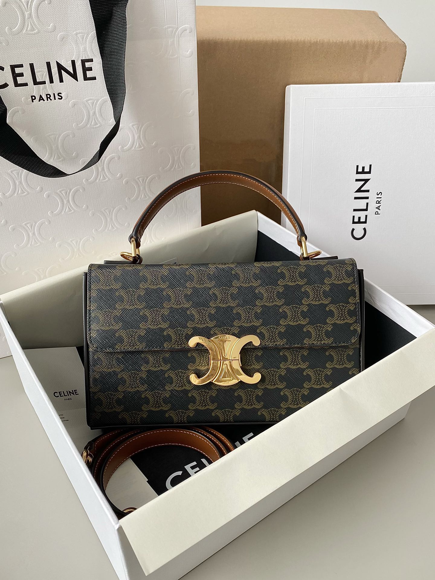 这款包包是AAAAA 1:1 质量 (非常棒). 使用了和原版一模一样的材料. 商标部分也保持了和思琳/Celine一样. 图片拍摄是实物包包拍摄, 您所收到的实物保证和我们图片一模一样.
