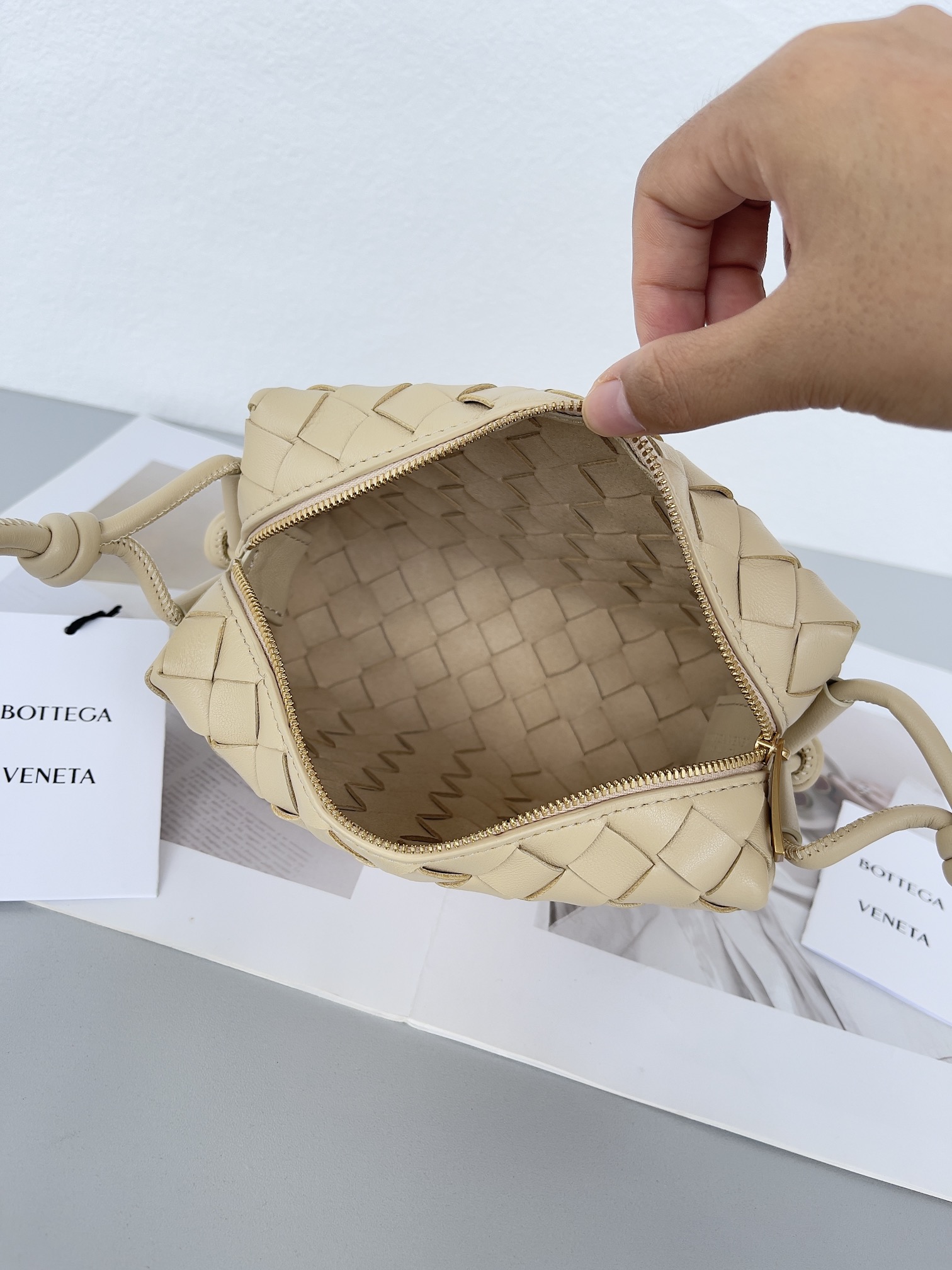 这款包包是AAAAA 1:1 质量 (非常棒). 使用了和原版一模一样的材料. 商标部分也保持了和葆蝶家/Bottega Veneta一样. 图片拍摄是实物包包拍摄, 您所收到的实物保证和我们图片一模一样.