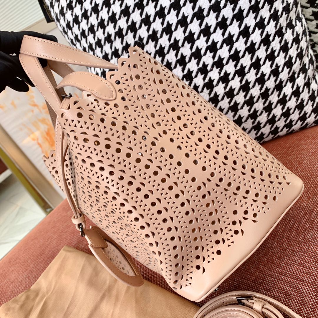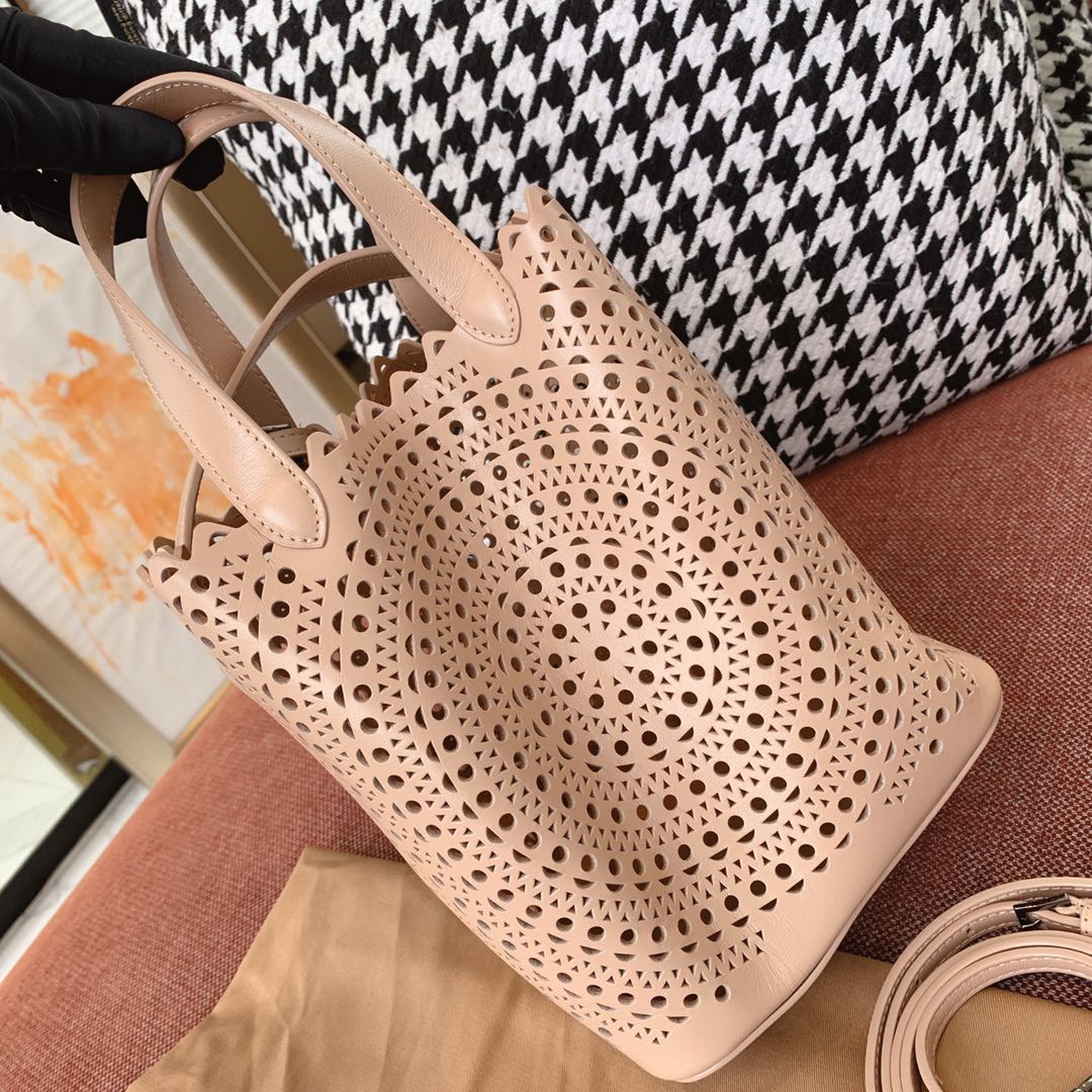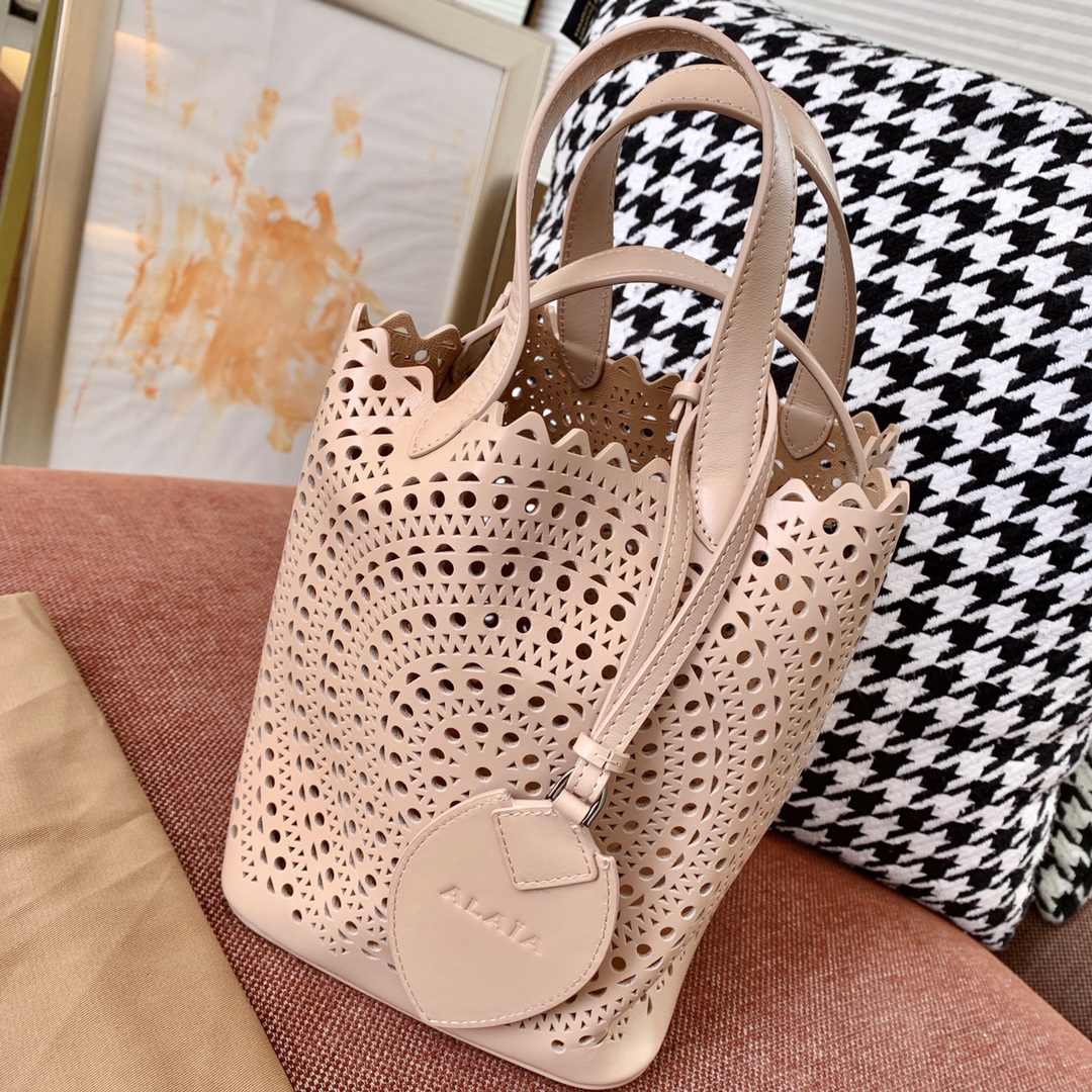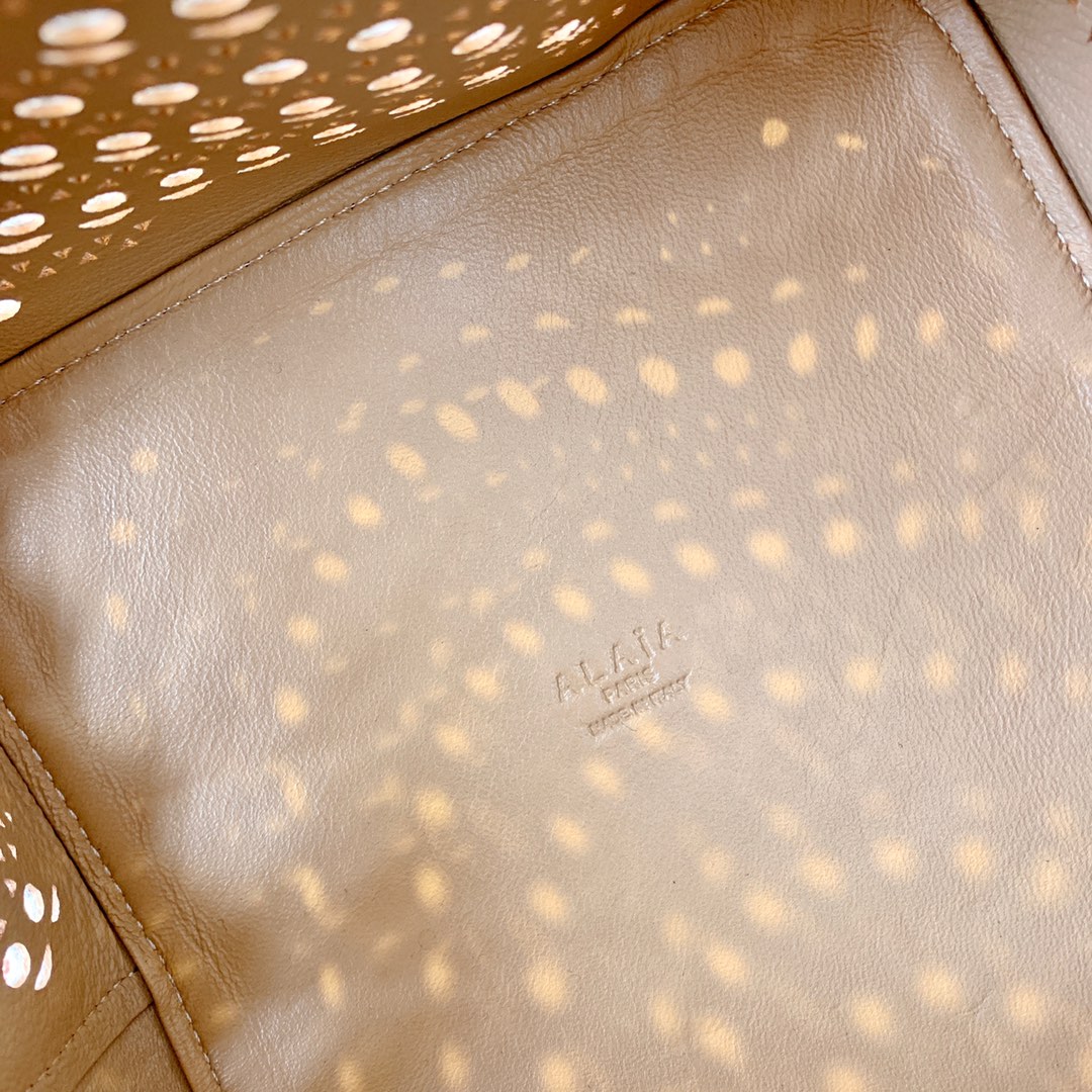 这款包包是AAAAA 1:1 质量 (非常棒). 使用了和原版一模一样的材料. 商标部分也保持了和Alaia一样. 图片拍摄是实物包包拍摄, 您所收到的实物保证和我们图片一模一样.