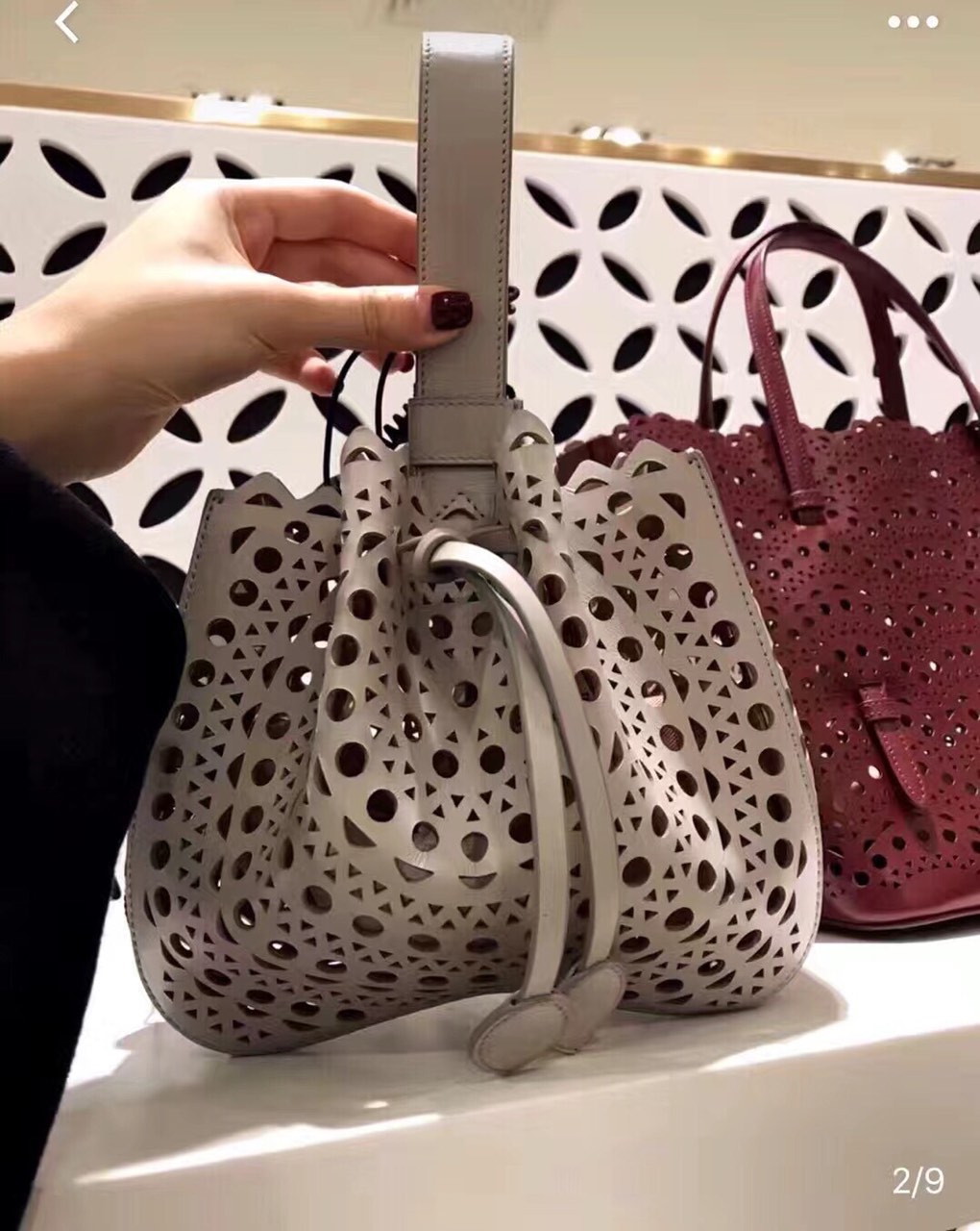 这款包包是AAAAA 1:1 质量 (非常棒). 使用了和原版一模一样的材料. 商标部分也保持了和Alaia一样. 图片拍摄是实物包包拍摄, 您所收到的实物保证和我们图片一模一样.