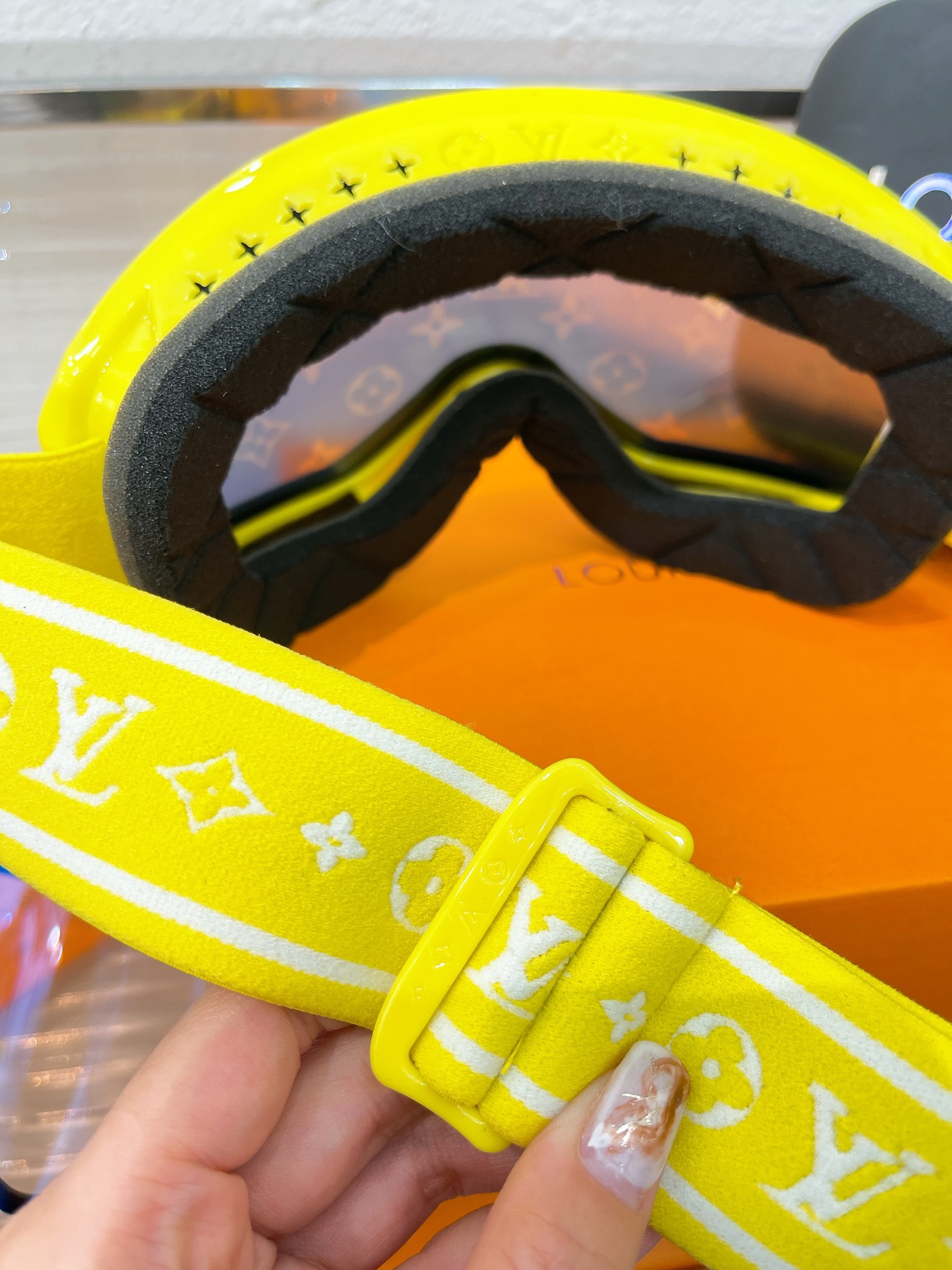 这款ski goggles是AAAAA 1:1 质量 (非常棒). 使用了和原版一模一样的材料. 商标部分也保持了和路易威登/Louis Vuitton一样. 图片拍摄是实物ski goggles拍摄, 您所收到的实物保证和我们图片一模一样.