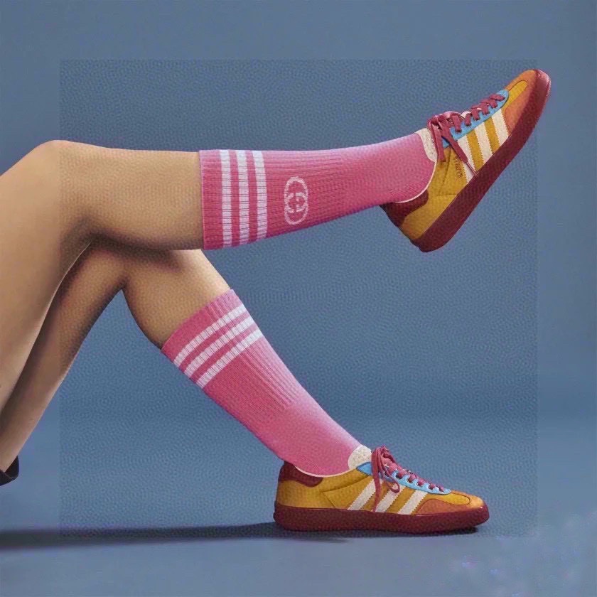 这款sock是AAAAA 1:1 质量 (非常棒). 使用了和原版一模一样的材料. 商标部分也保持了和Gucci & Adidas一样. 图片拍摄是实物sock拍摄, 您所收到的实物保证和我们图片一模一样.