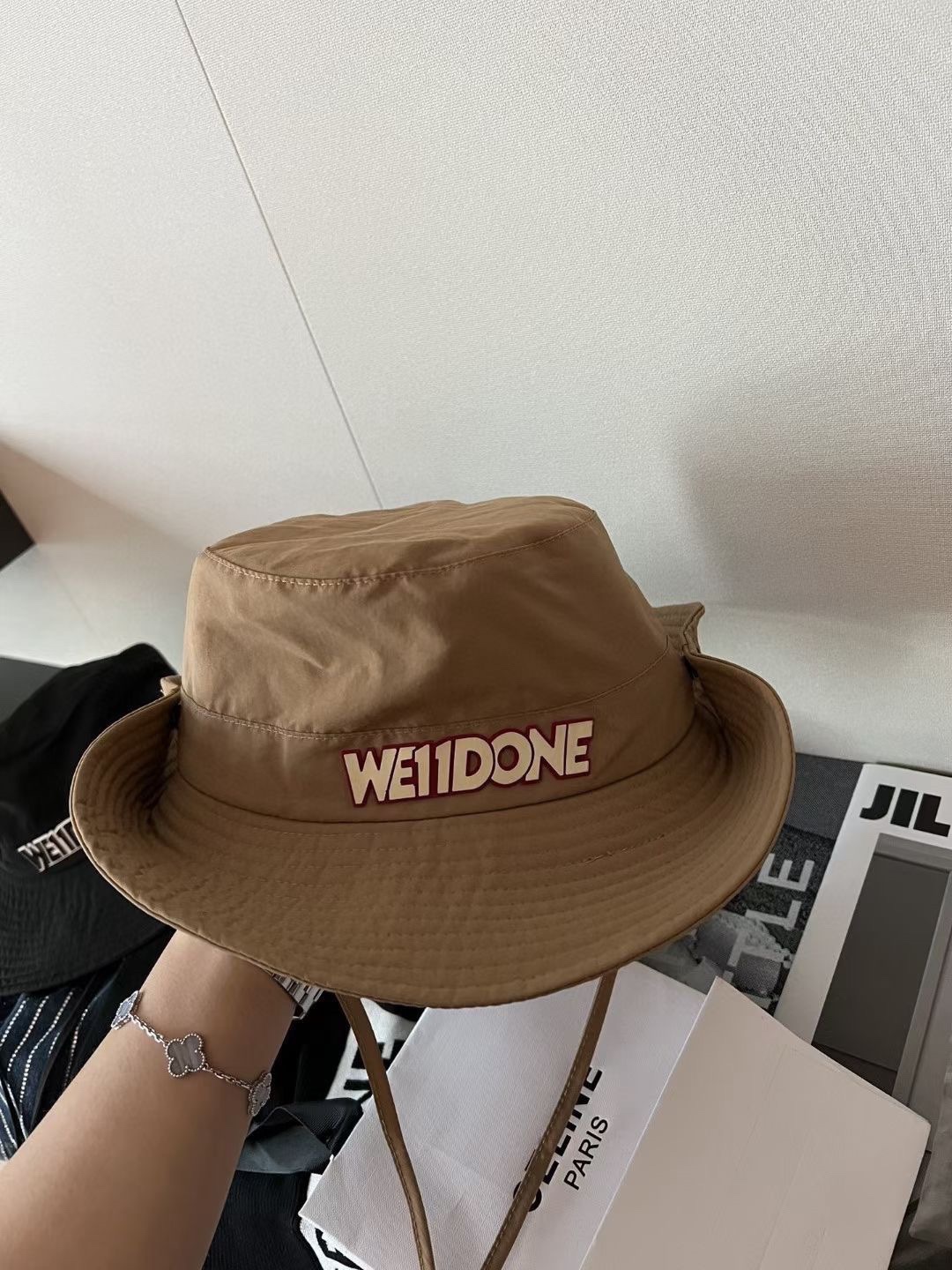 这款帽子是AAAAA 1:1 质量 (非常棒). 使用了和原版一模一样的材料. 商标部分也保持了和We11done一样. 图片拍摄是实物帽子拍摄, 您所收到的实物保证和我们图片一模一样.