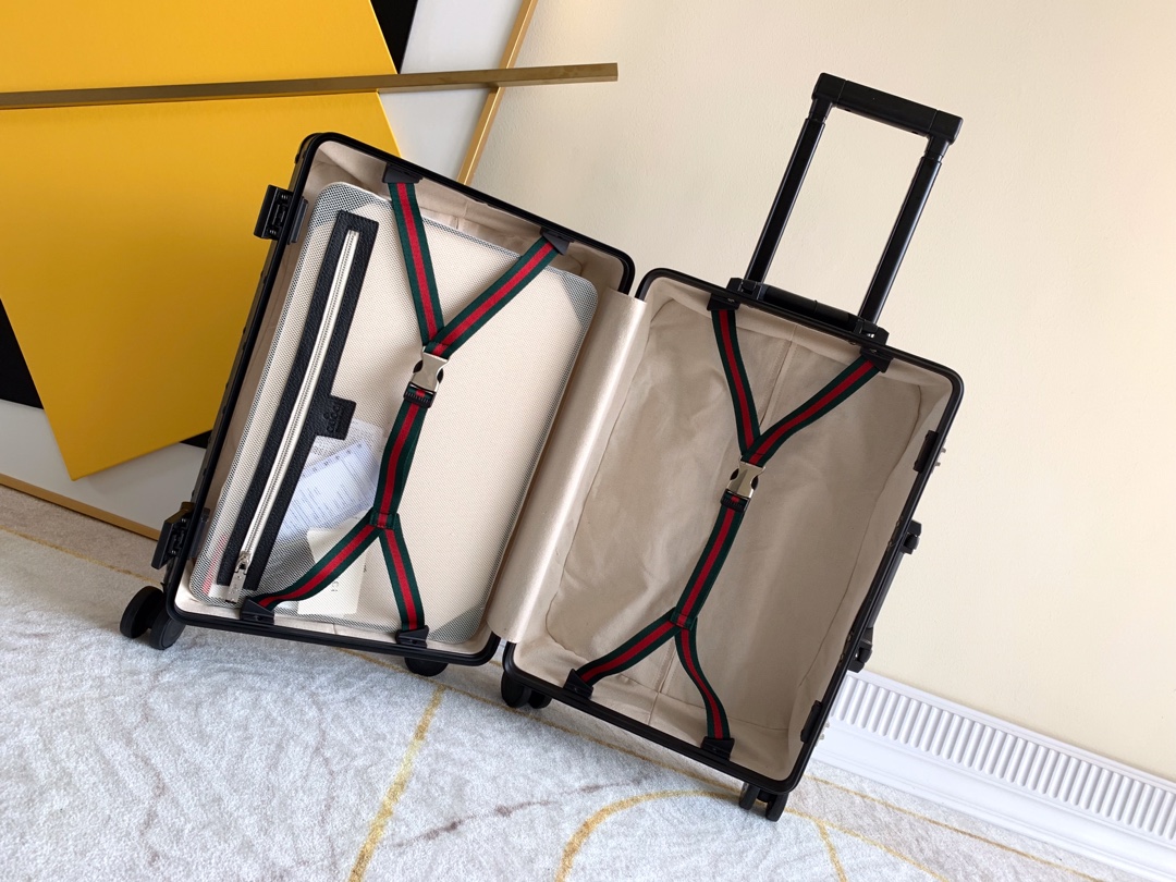 这款拉杆箱是AAAAA 1:1 质量 (非常棒). 使用了和原版一模一样的材料. 商标部分也保持了和古奇/Gucci一样. 图片拍摄是实物拉杆箱拍摄, 您所收到的实物保证和我们图片一模一样.