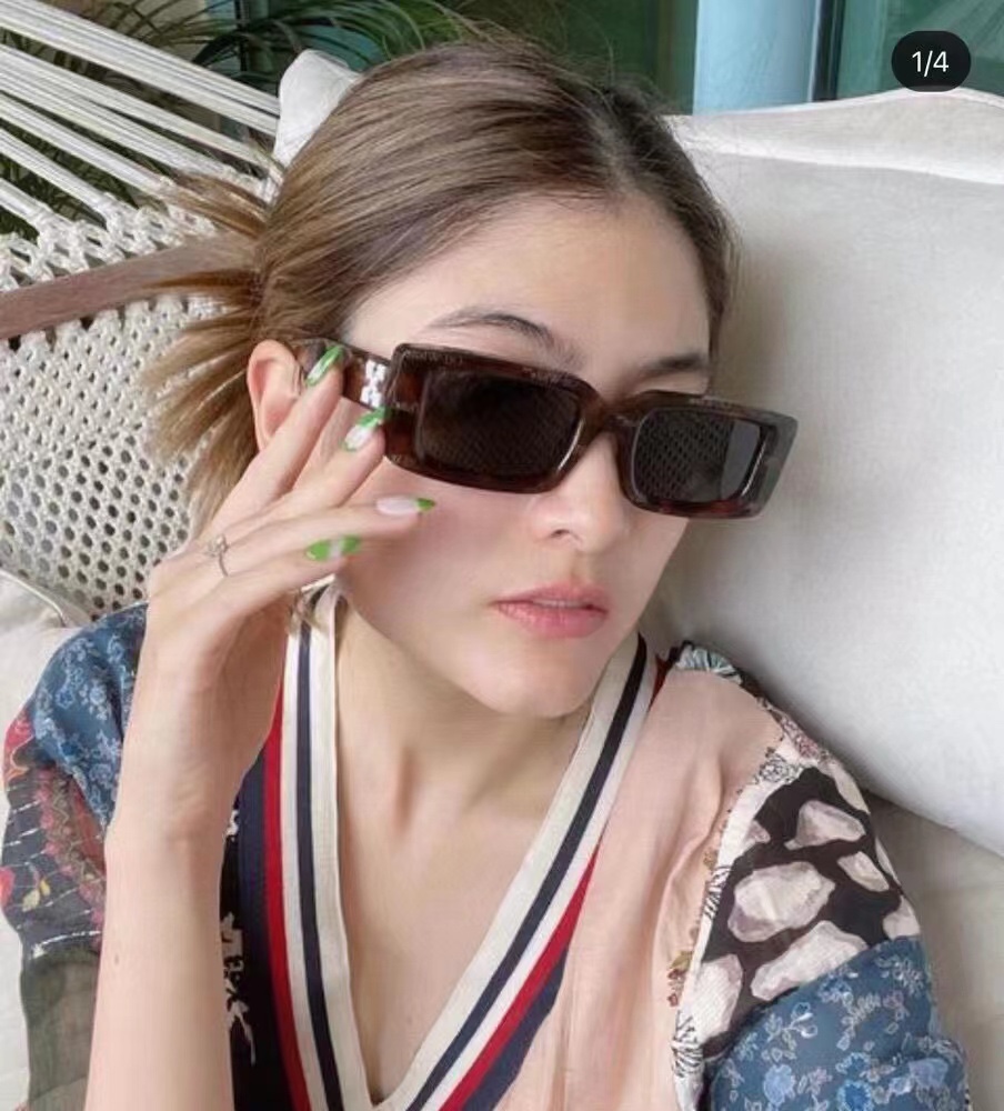 这款太阳眼镜是AAAAA 1:1 质量 (非常棒). 使用了和原版一模一样的材料. 商标部分也保持了和OFF WHITE一样. 图片拍摄是实物太阳眼镜拍摄, 您所收到的实物保证和我们图片一模一样.