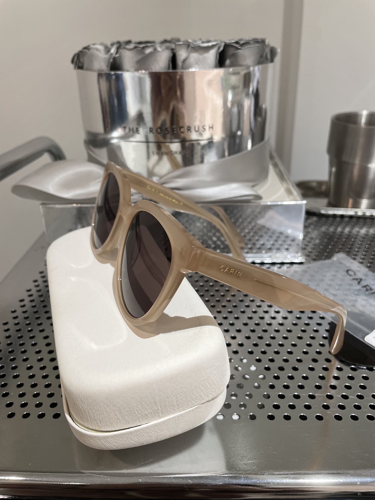 这款太阳眼镜是AAAAA 1:1 质量 (非常棒). 使用了和原版一模一样的材料. 商标部分也保持了和CARIN一样. 图片拍摄是实物太阳眼镜拍摄, 您所收到的实物保证和我们图片一模一样.