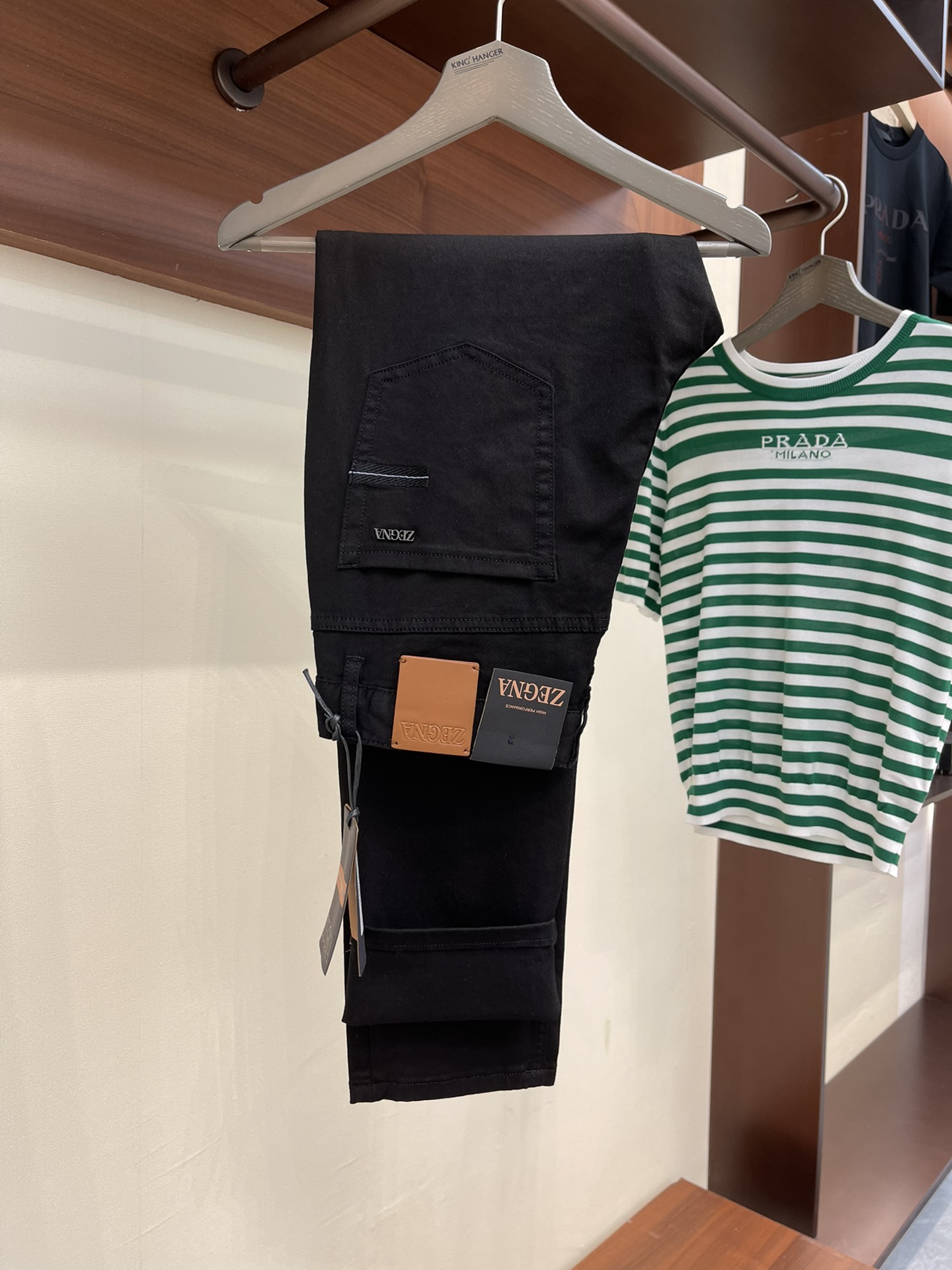 这款衣服是AAAAA 1:1 质量 (非常棒). 使用了和原版一模一样的材料. 商标部分也保持了和杰尼亚/Zegna一样. 图片拍摄是实物衣服拍摄, 您所收到的实物保证和我们图片一模一样.