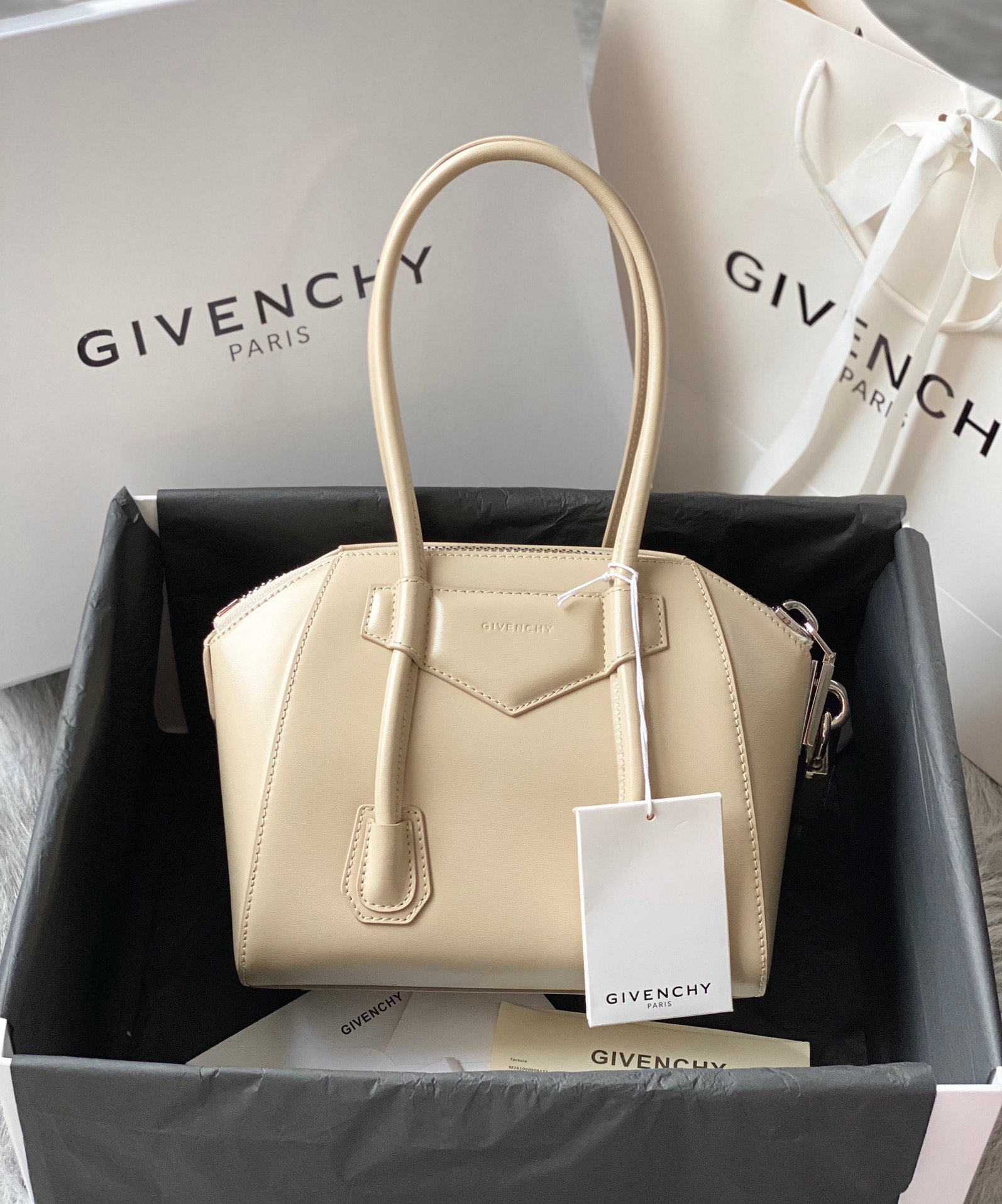 这款包包是AAAAA 1:1 质量 (非常棒). 使用了和原版一模一样的材料. 商标部分也保持了和纪梵希/Givenchy一样. 图片拍摄是实物包包拍摄, 您所收到的实物保证和我们图片一模一样.