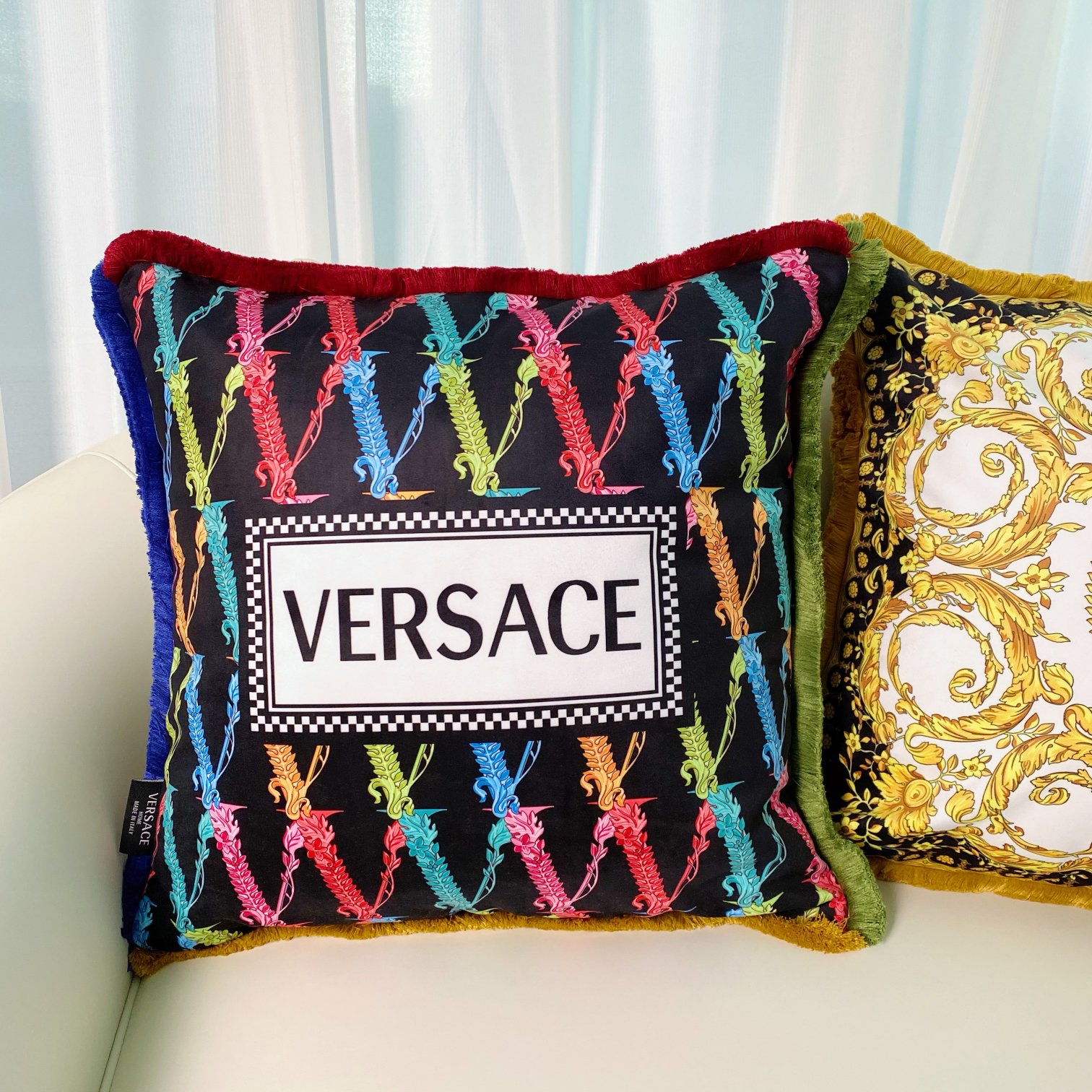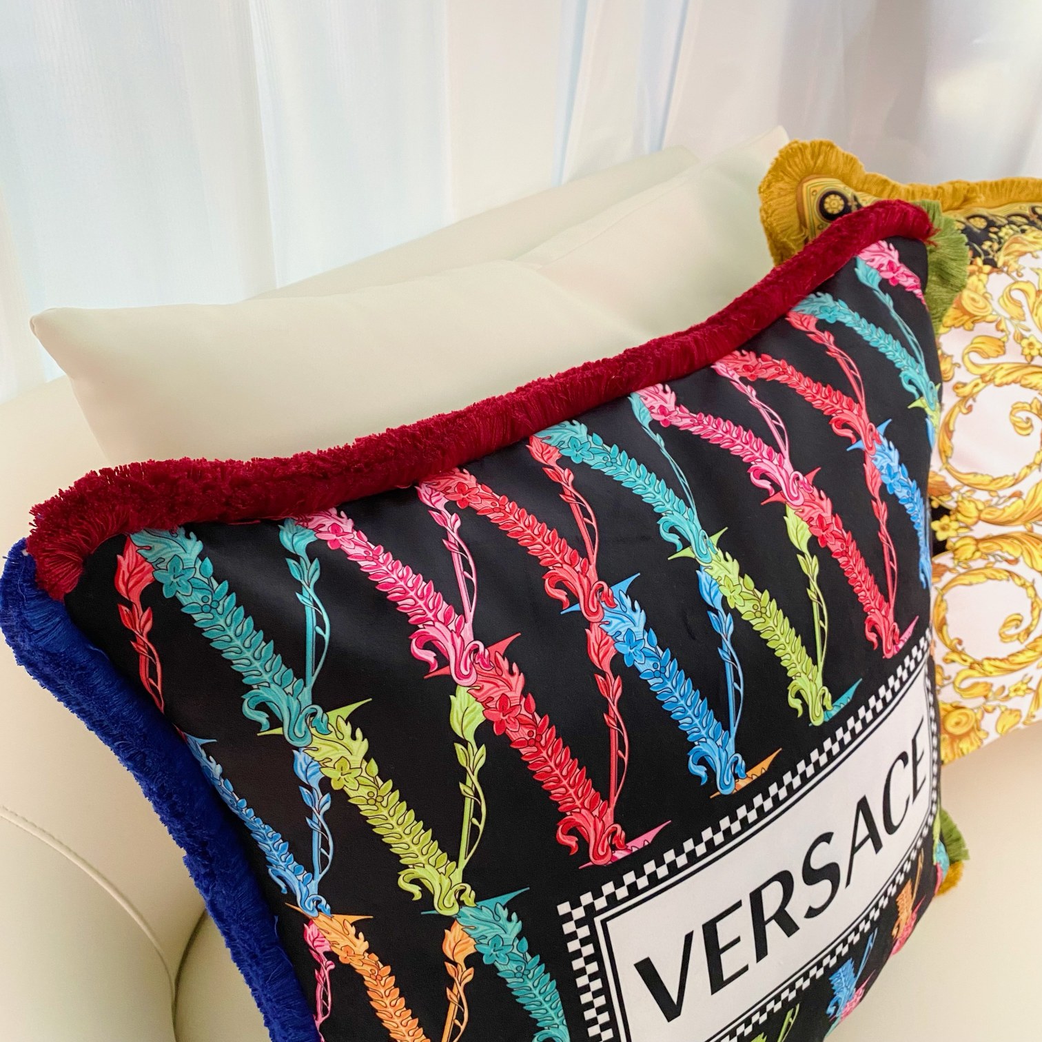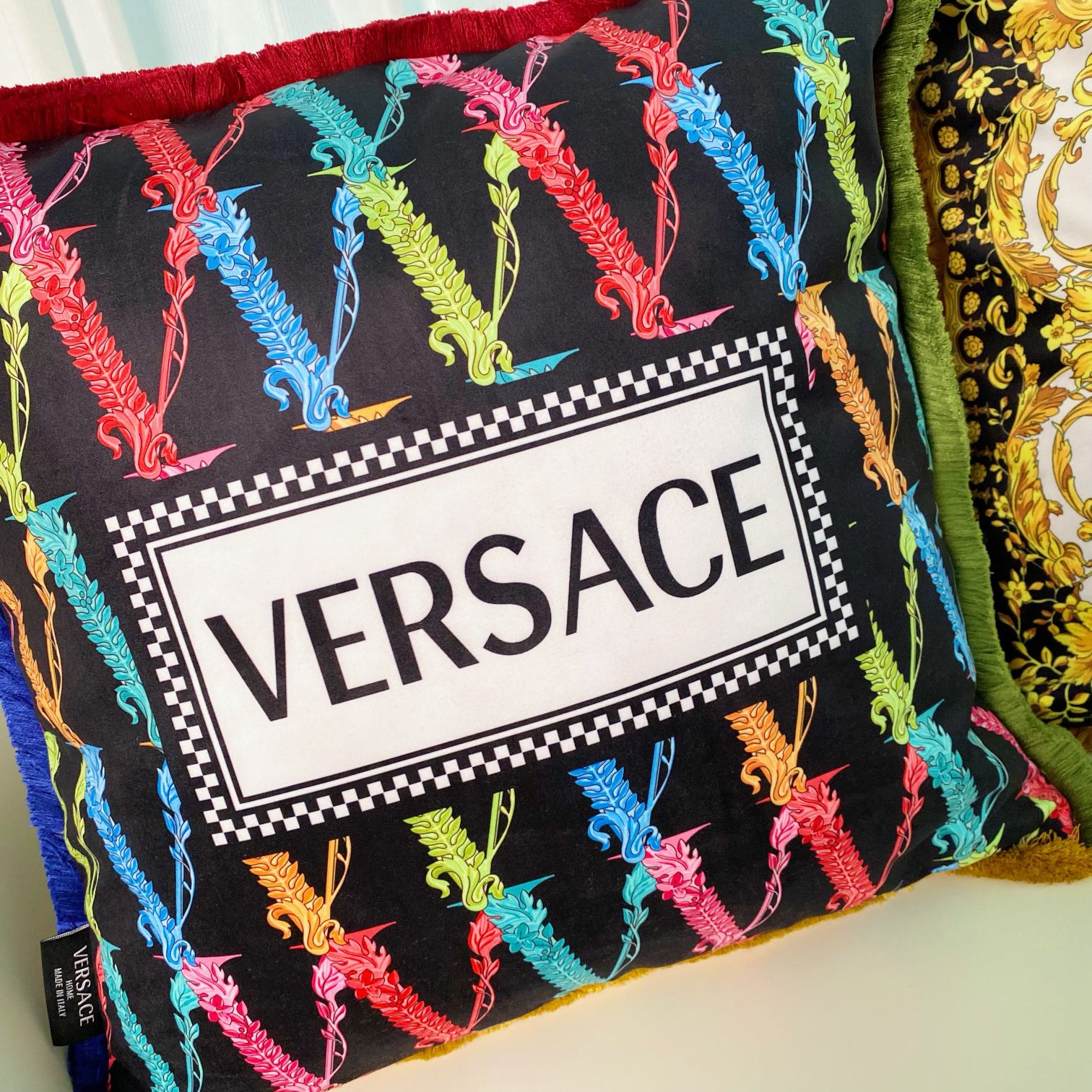 这款pillow是AAAAA 1:1 质量 (非常棒). 使用了和原版一模一样的材料. 商标部分也保持了和范思哲/Versace一样. 图片拍摄是实物pillow拍摄, 您所收到的实物保证和我们图片一模一样.