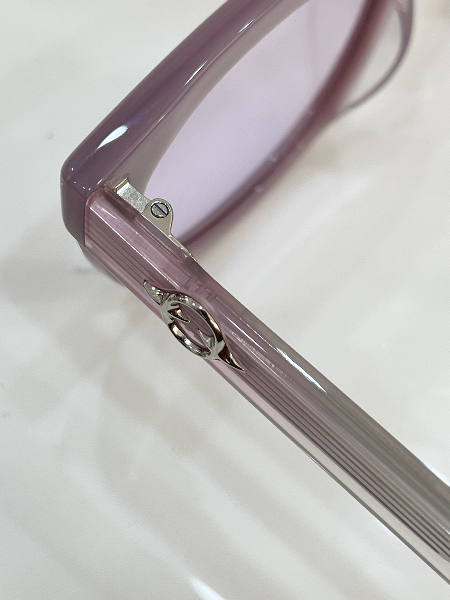 这款太阳眼镜是AAAAA 1:1 质量 (非常棒). 使用了和原版一模一样的材料. 商标部分也保持了和克罗心/Chrome Hearts一样. 图片拍摄是实物太阳眼镜拍摄, 您所收到的实物保证和我们图片一模一样.