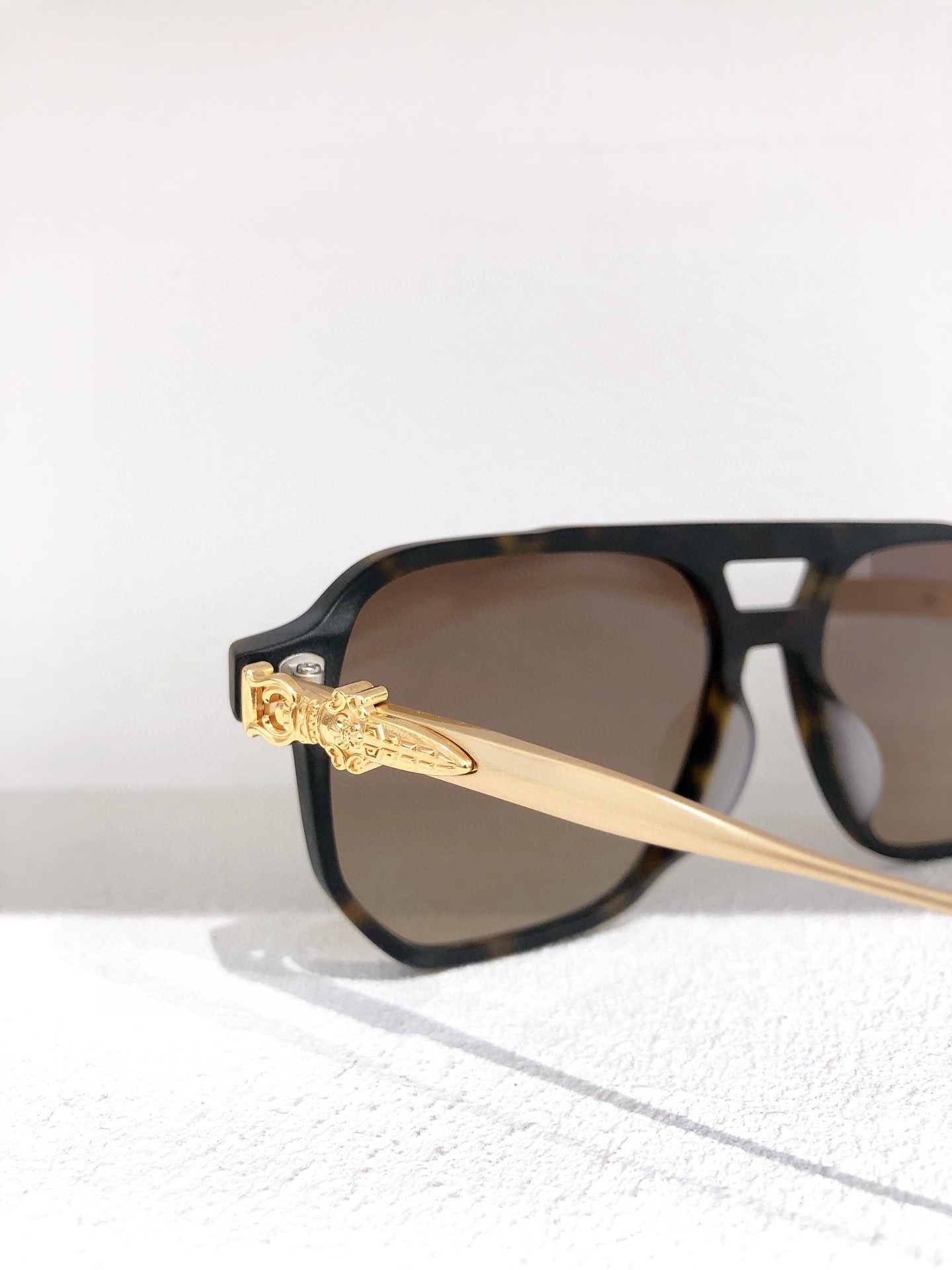 这款太阳眼镜是AAAAA 1:1 质量 (非常棒). 使用了和原版一模一样的材料. 商标部分也保持了和克罗心/Chrome Hearts一样. 图片拍摄是实物太阳眼镜拍摄, 您所收到的实物保证和我们图片一模一样.