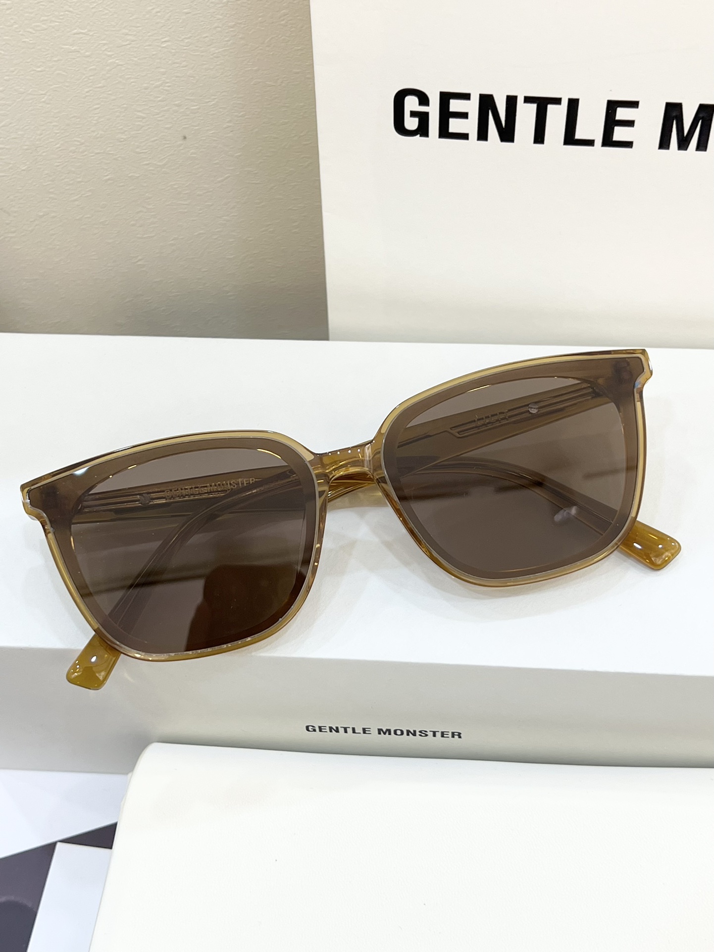 这款太阳眼镜是AAAAA 1:1 质量 (非常棒). 使用了和原版一模一样的材料. 商标部分也保持了和Gentle Monster一样. 图片拍摄是实物太阳眼镜拍摄, 您所收到的实物保证和我们图片一模一样.