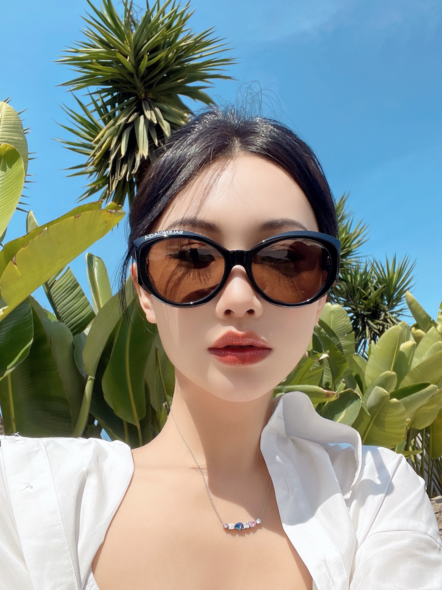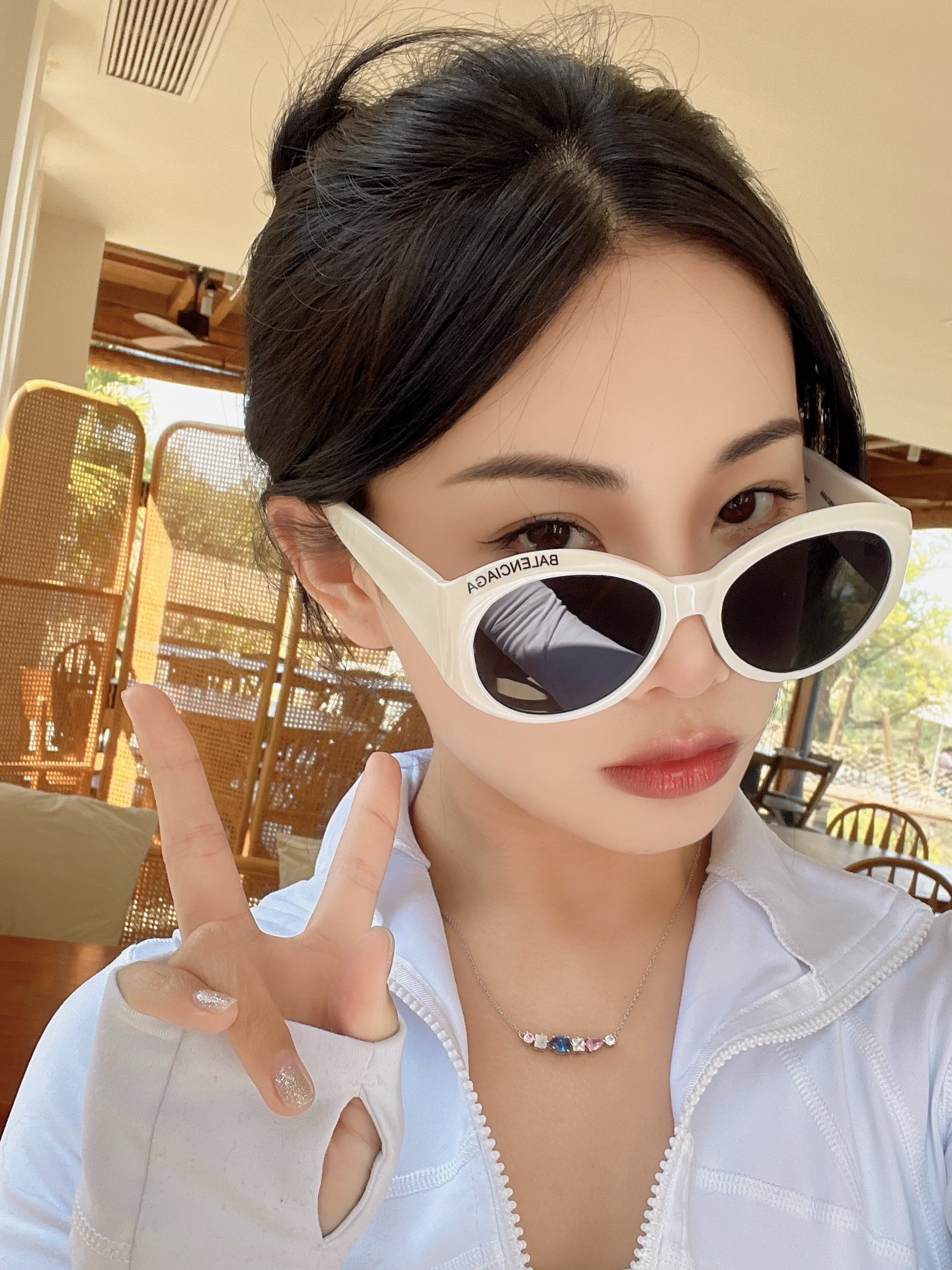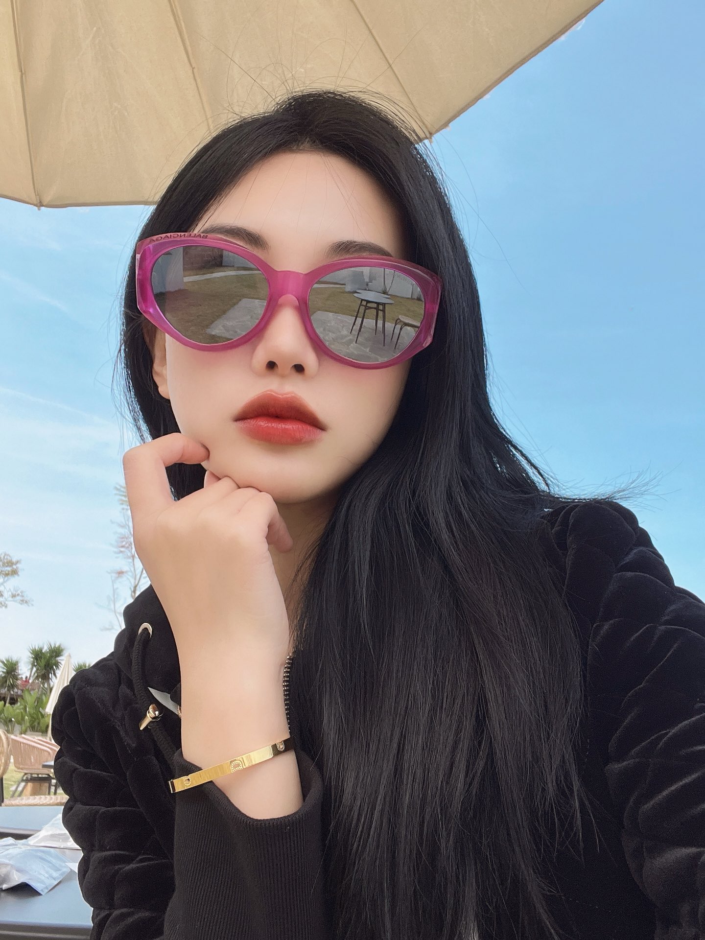 这款太阳眼镜是AAAAA 1:1 质量 (非常棒). 使用了和原版一模一样的材料. 商标部分也保持了和巴黎世家/Balenciaga一样. 图片拍摄是实物太阳眼镜拍摄, 您所收到的实物保证和我们图片一模一样.