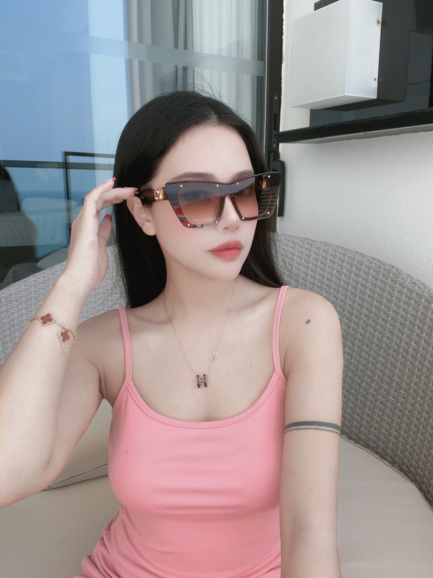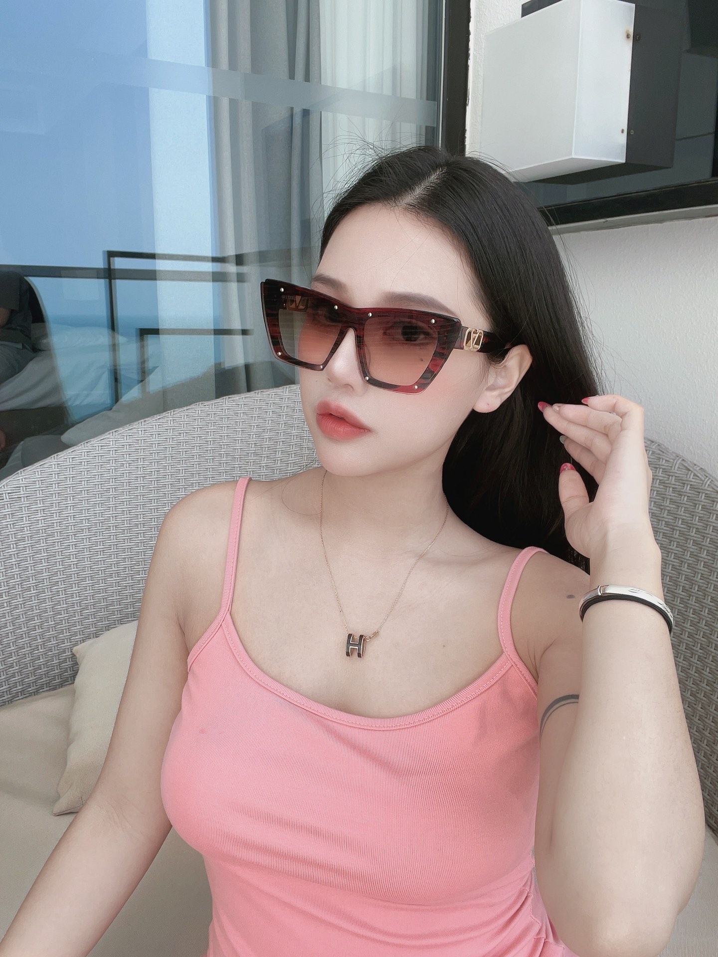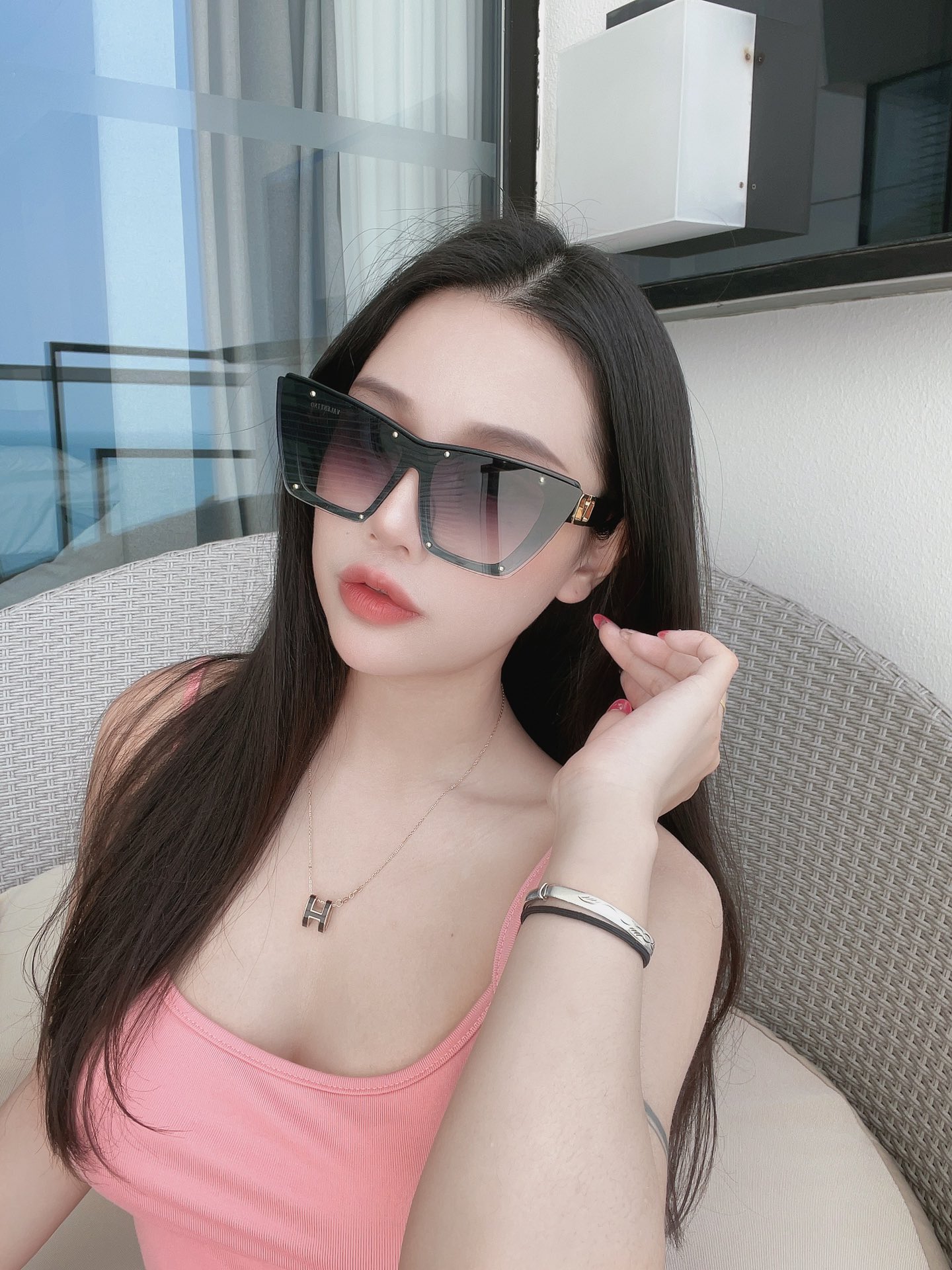 这款太阳眼镜是AAAAA 1:1 质量 (非常棒). 使用了和原版一模一样的材料. 商标部分也保持了和华伦天奴/Valentino一样. 图片拍摄是实物太阳眼镜拍摄, 您所收到的实物保证和我们图片一模一样.