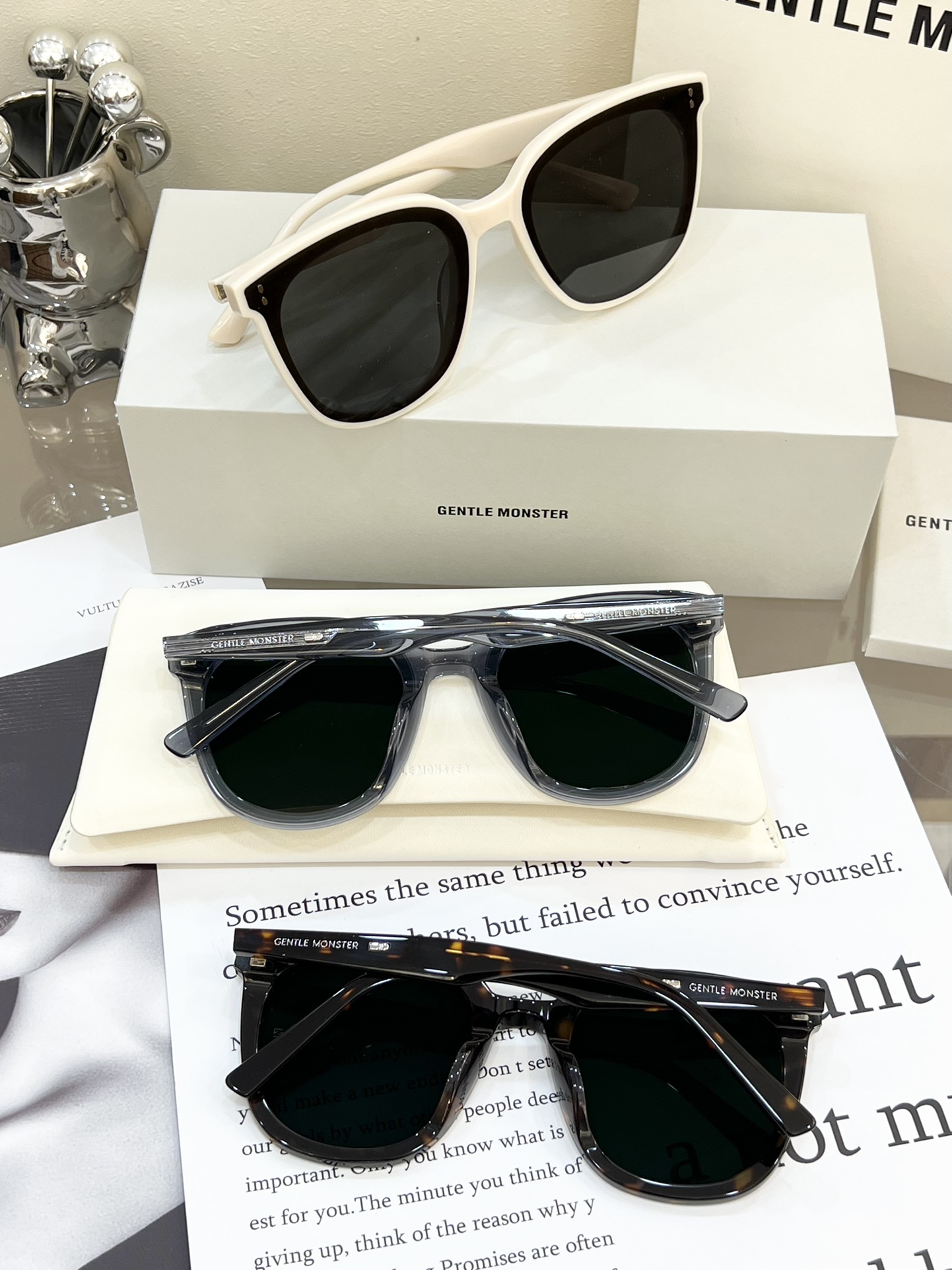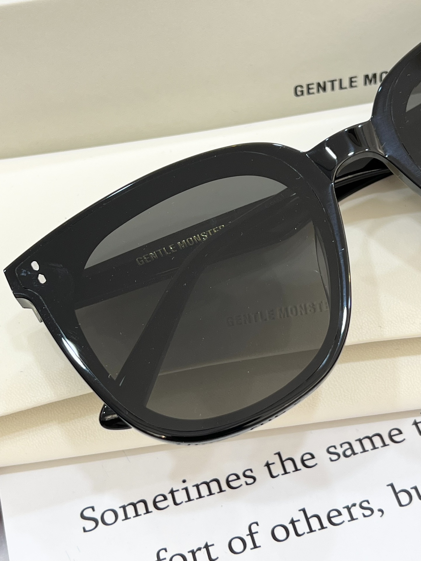 这款太阳眼镜是AAAAA 1:1 质量 (非常棒). 使用了和原版一模一样的材料. 商标部分也保持了和Gentle Monster一样. 图片拍摄是实物太阳眼镜拍摄, 您所收到的实物保证和我们图片一模一样.